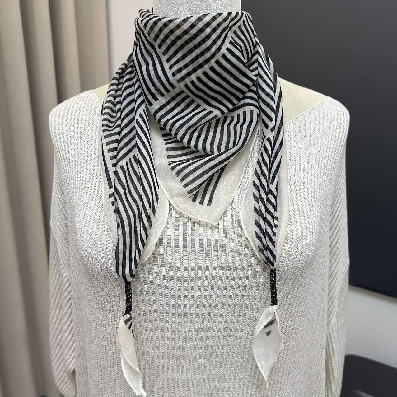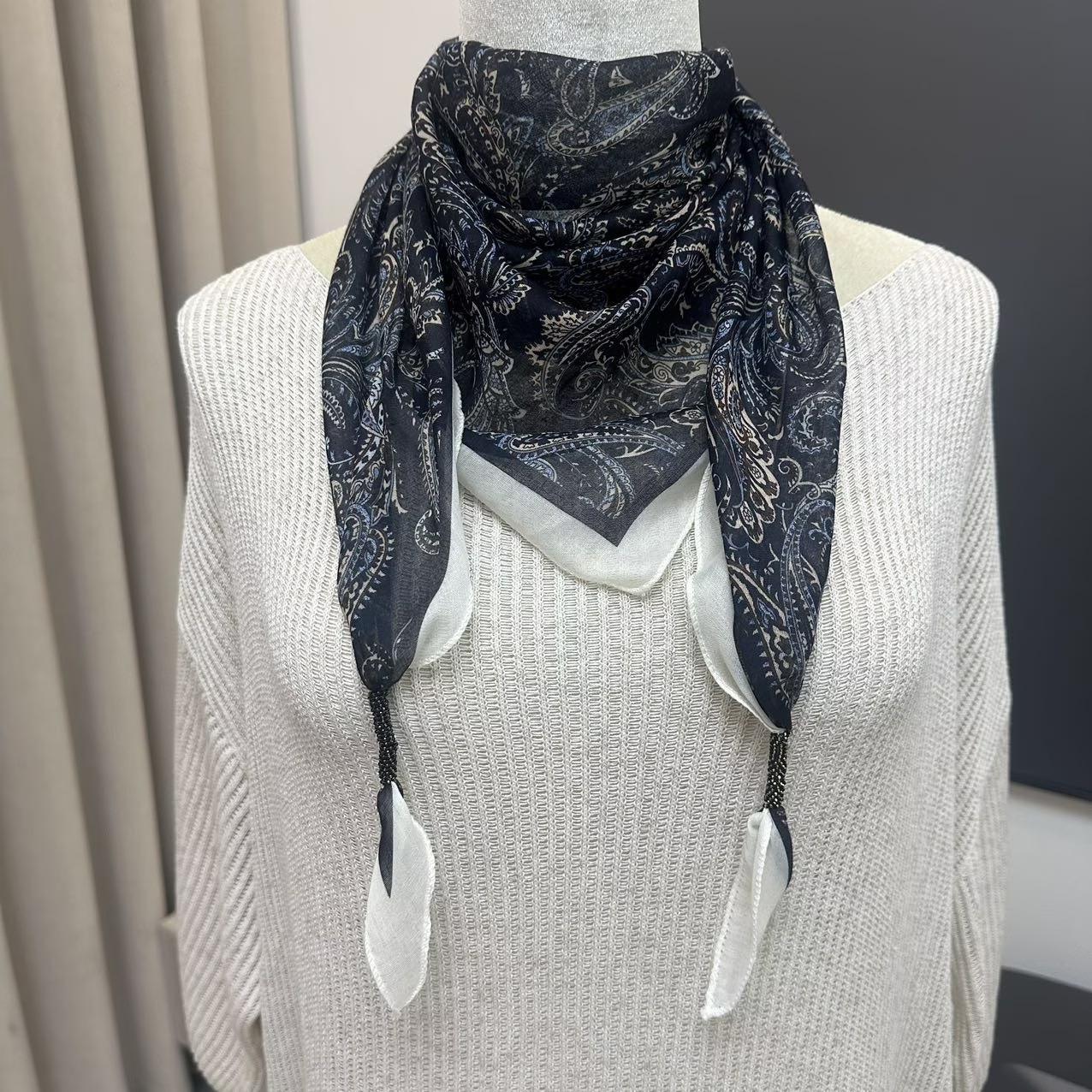 Dark blue cashew triangle scarf, Black striped bandana, Black Cashew Bandana, Blue and white cashew triangle s...