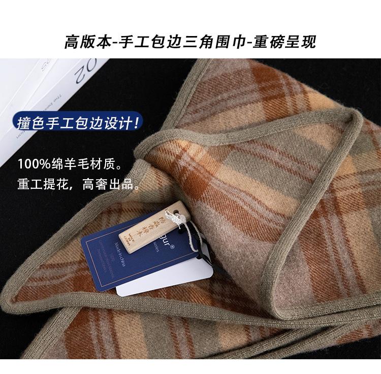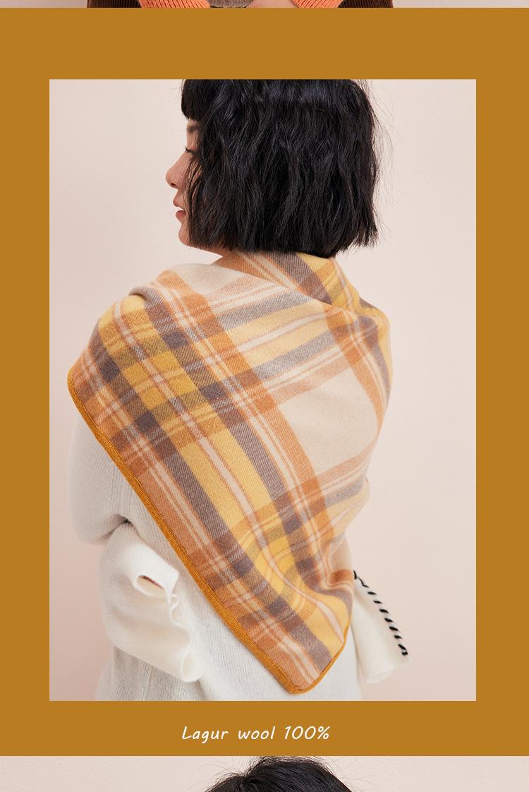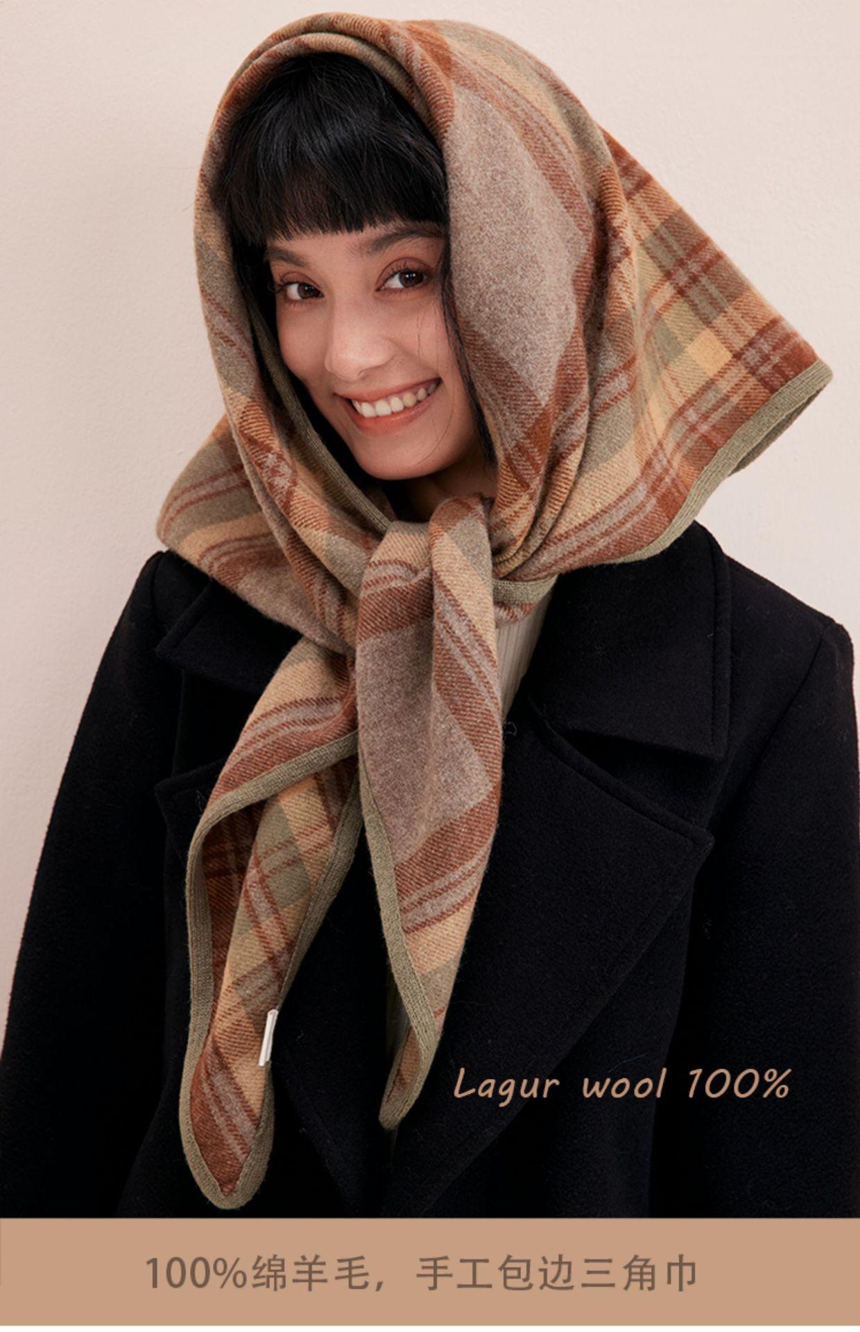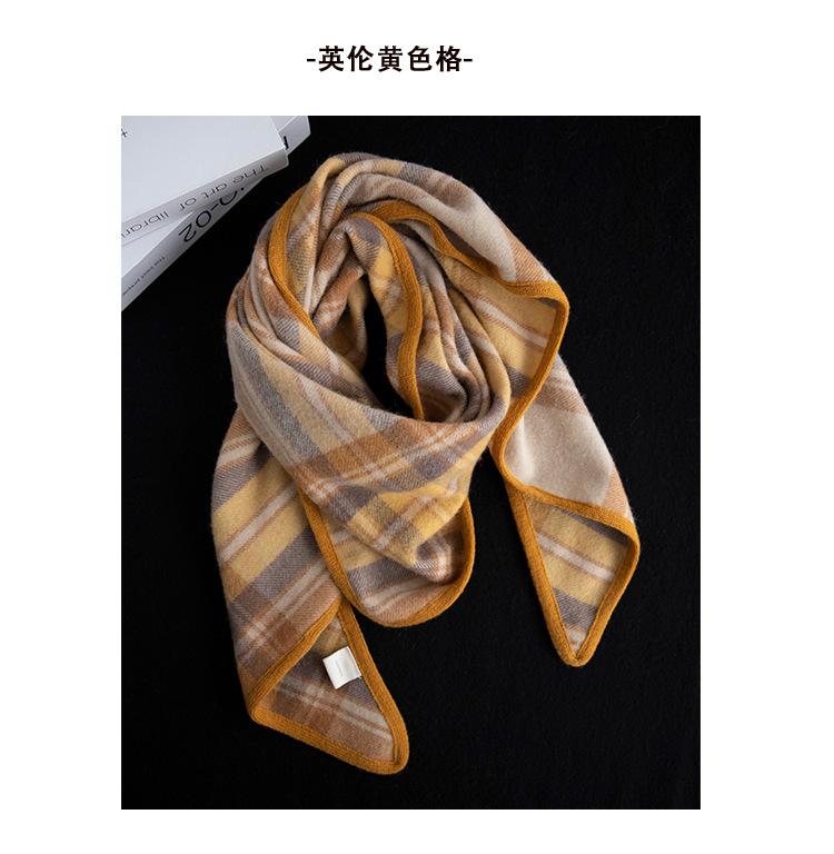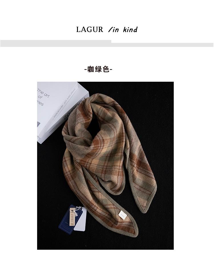 Bufanda de Lana 100% a Cuadros de Doble Cara Otoño/Invierno para Mujer Estilo Británico Bufanda Triangular a Cuadros Calentador de Cuello Chal Cálido Engrosado
