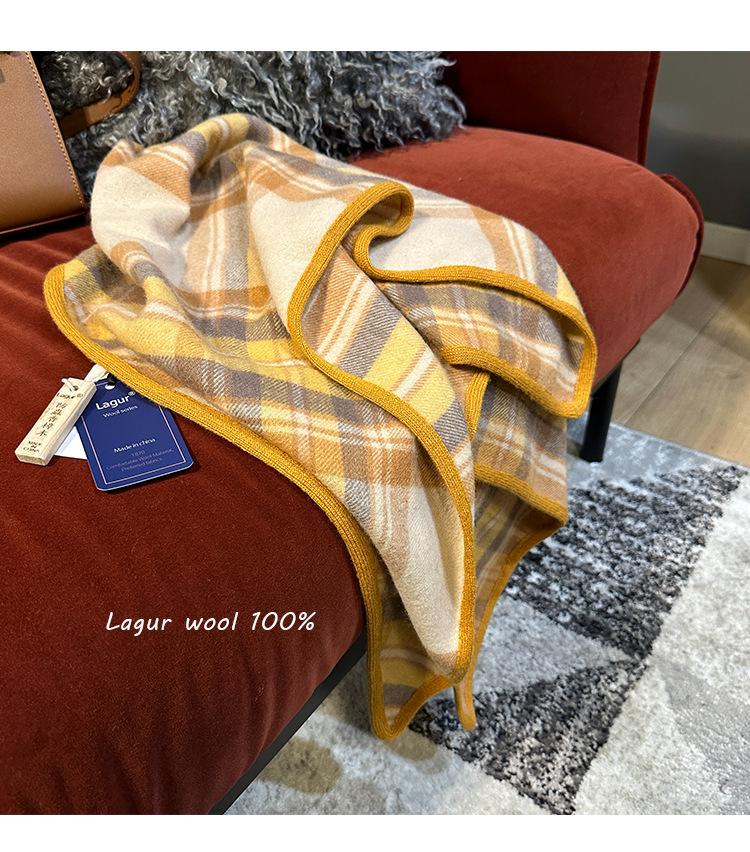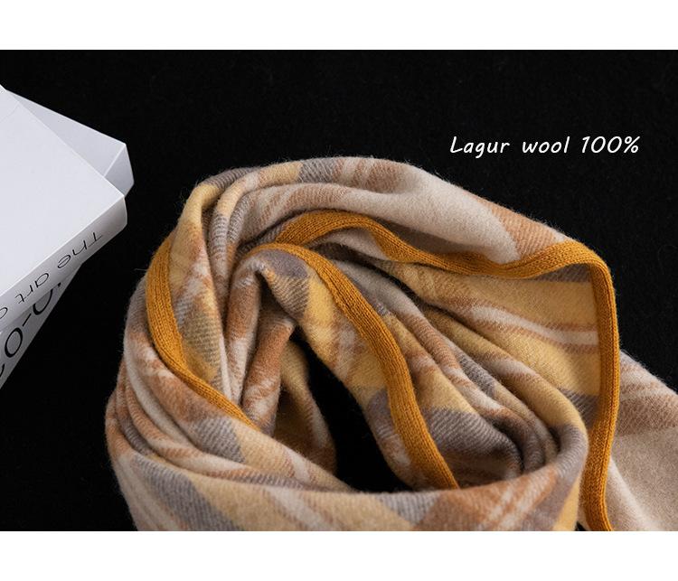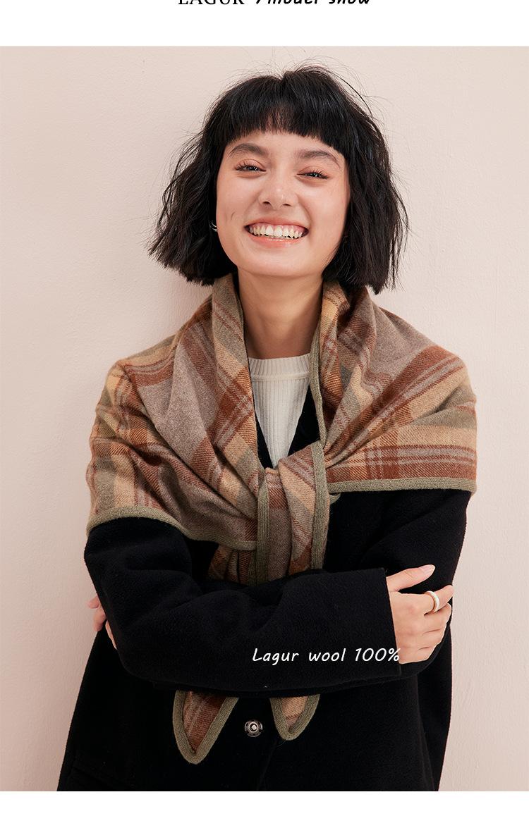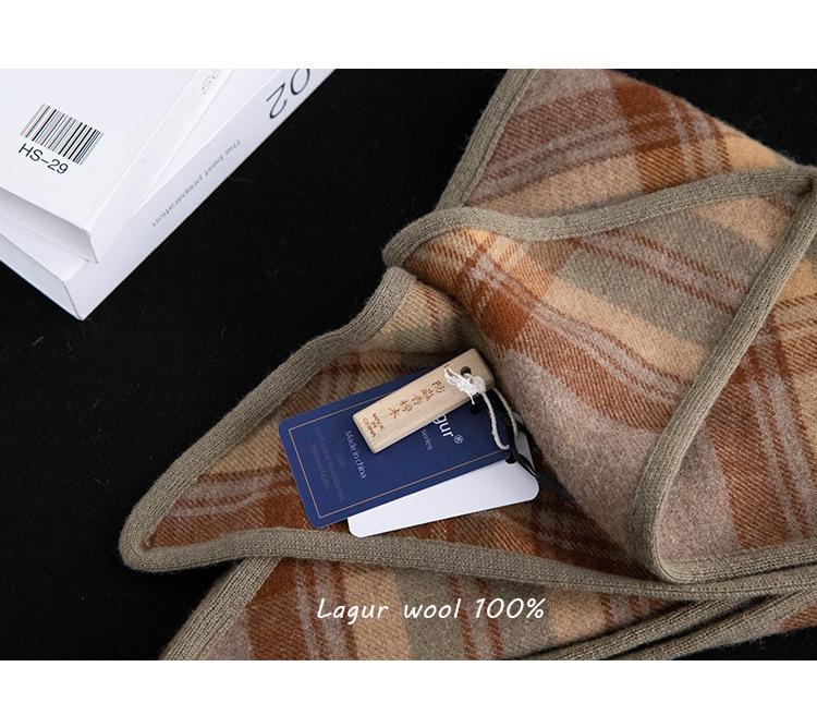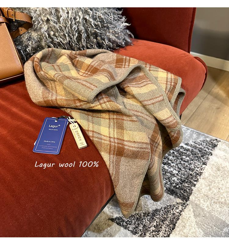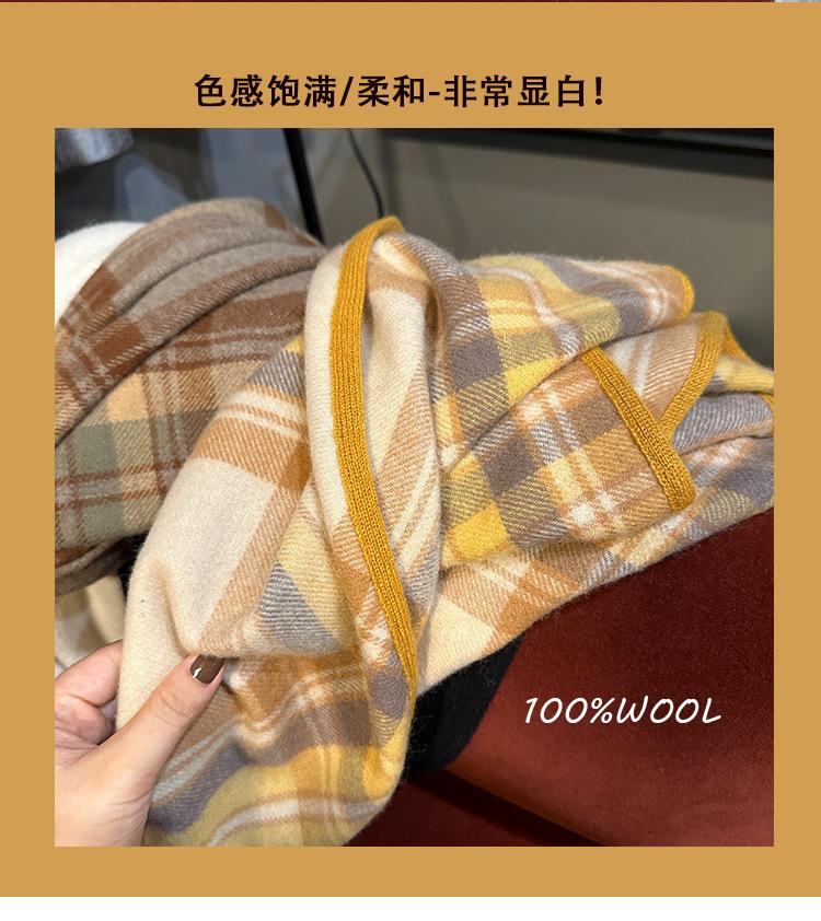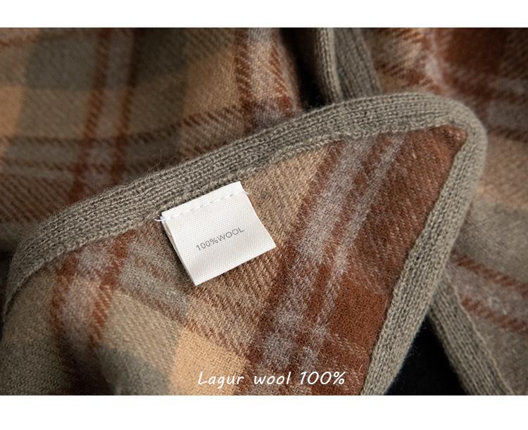 Bufanda de Lana 100% a Cuadros de Doble Cara Otoño/Invierno para Mujer Estilo Británico Bufanda Triangular a Cuadros Calentador de Cuello Chal Cálido Engrosado