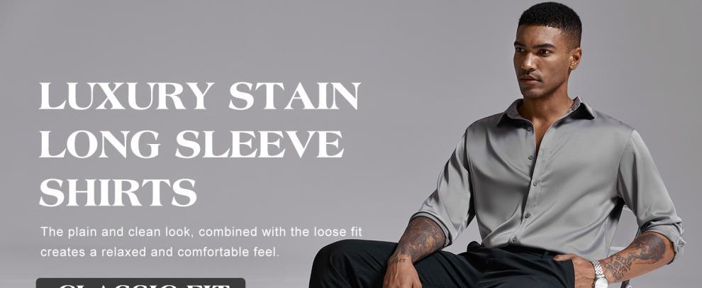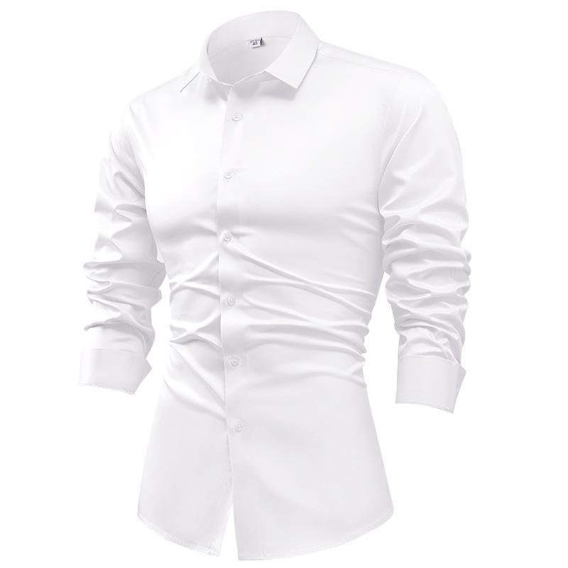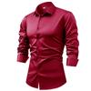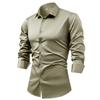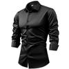 Camisa de Vestir de Manga Larga de Satén de Seda para Hombre Transfronteriza Negocios Casual Camisa Abotonada Comercio Exterior Ropa de Hombre