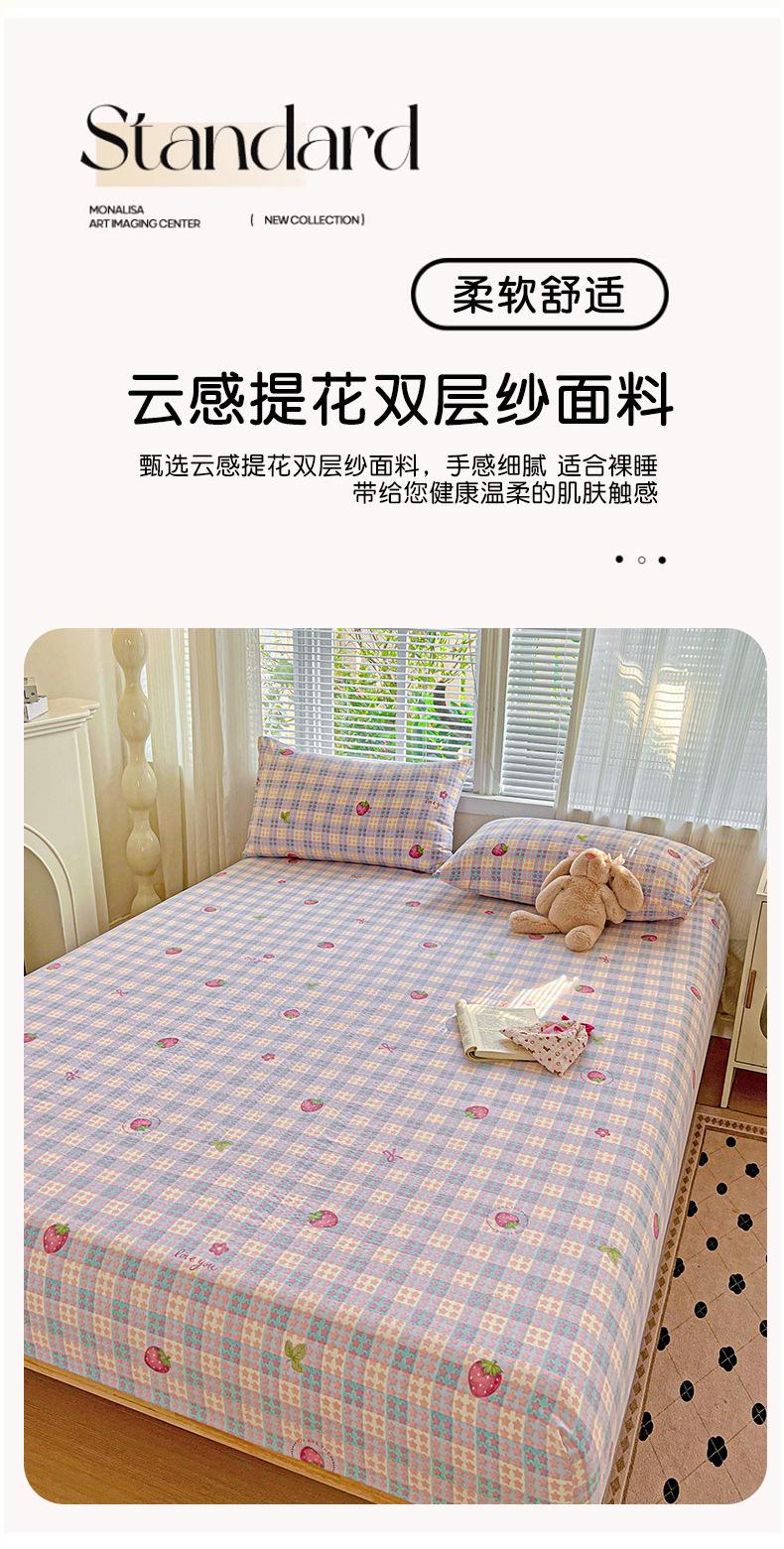 Sábanas Ajustables de Gasa de Doble Capa de Una Pieza No Algodón Algodón Puro Cubrecama Cubre Cama Verano Antideslizante Sábanas Cubrecolchón Individual Estilo Nuevo 2025