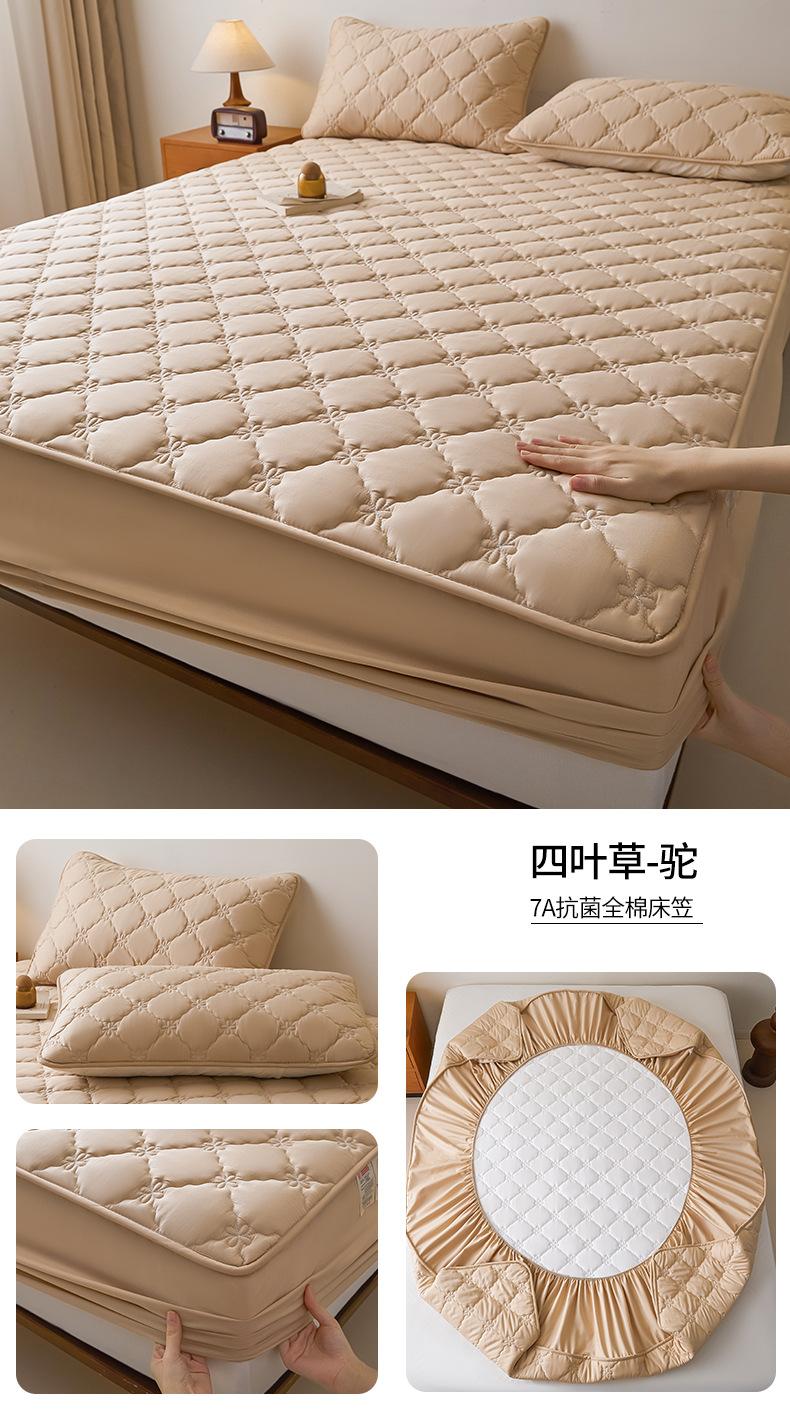 Clase A Algodón 100% Algodón Puro Impermeable Sábana Ajustable de Una Pieza Edredón Acolchado de Fibra de Soya Protector de Colchón Antideslizante a Prueba de Polvo