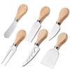 Cuchillo para Queso de Acero Inoxidable Cuchillo para Queso Mango de Madera Juego Cuchillo de Cocina Cuchillo para Crema Herramienta para Queso Juego de Cuchillo y Tenedor