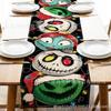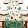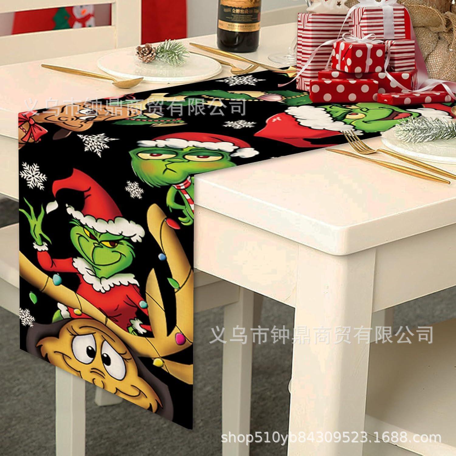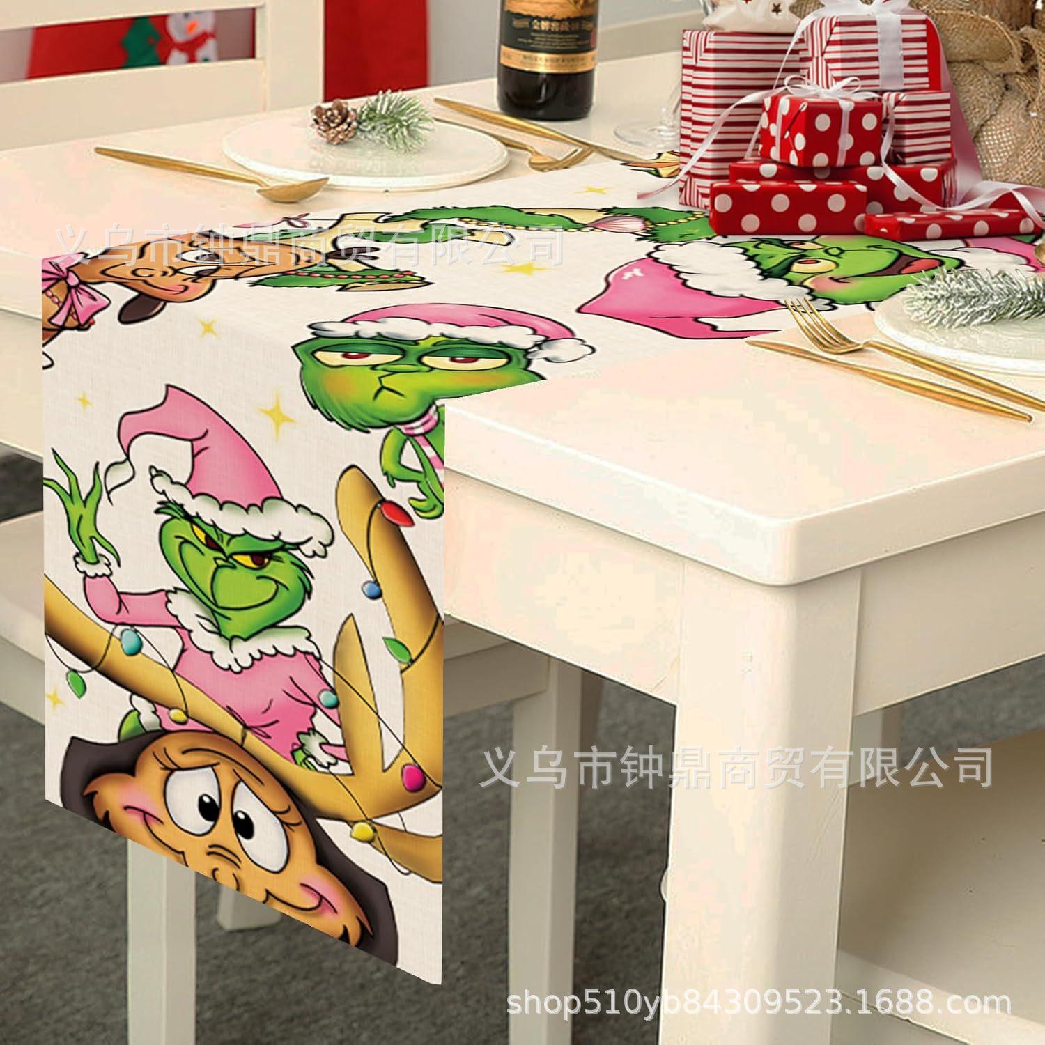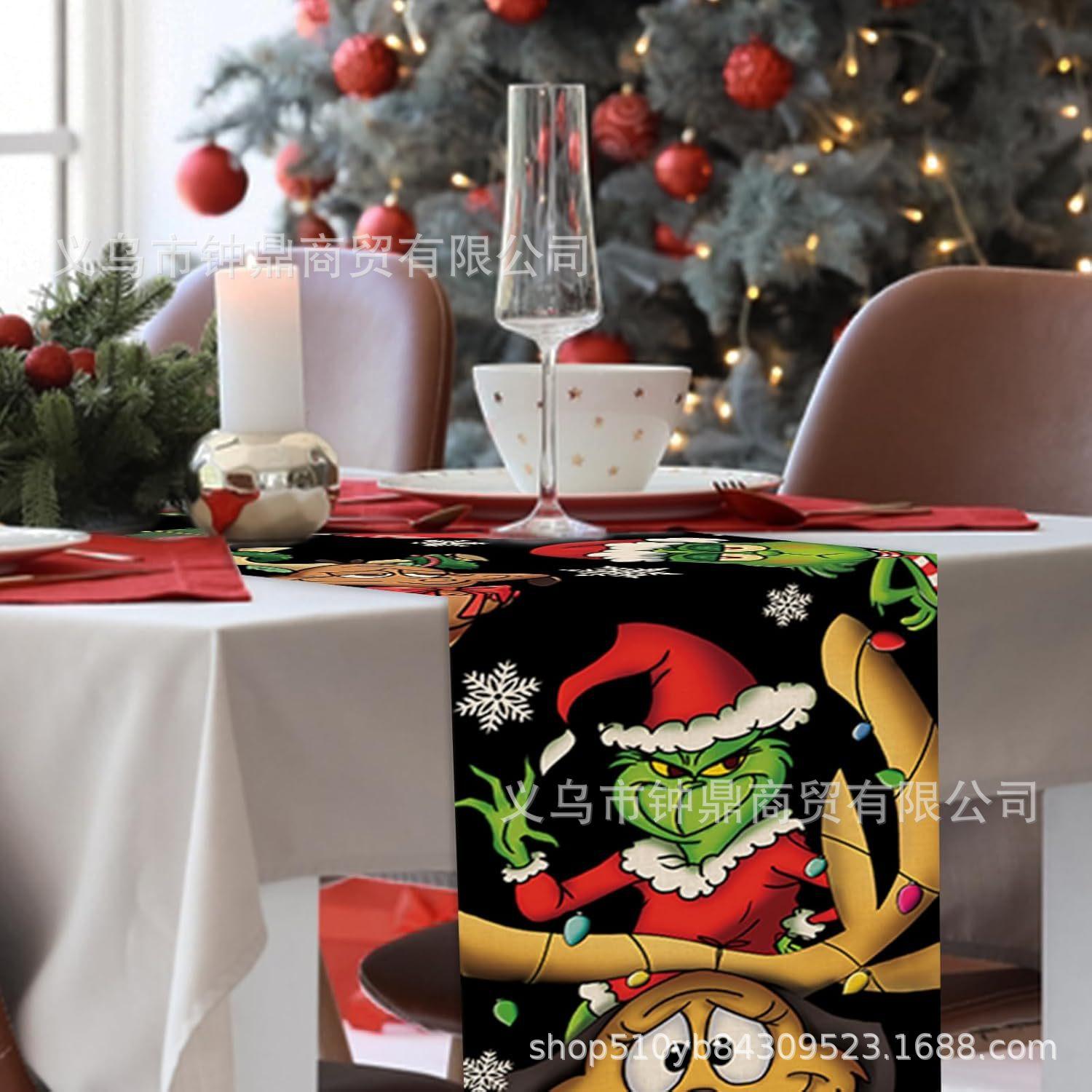 Camino de mesa navideño más vendido de Amazon estampado de reno Grinch material de lino decoración de mesa de comedor navideña mantel