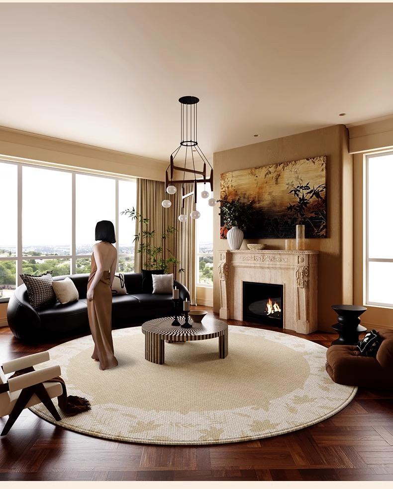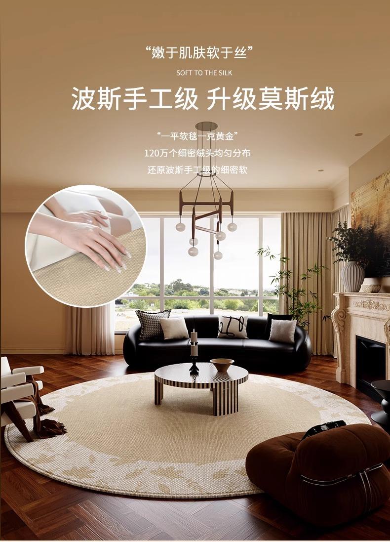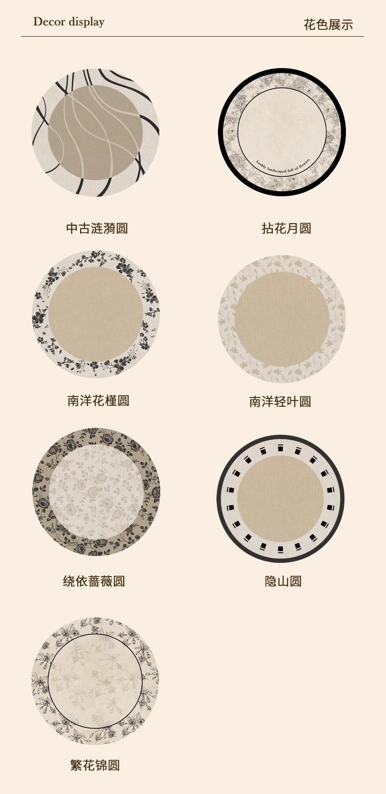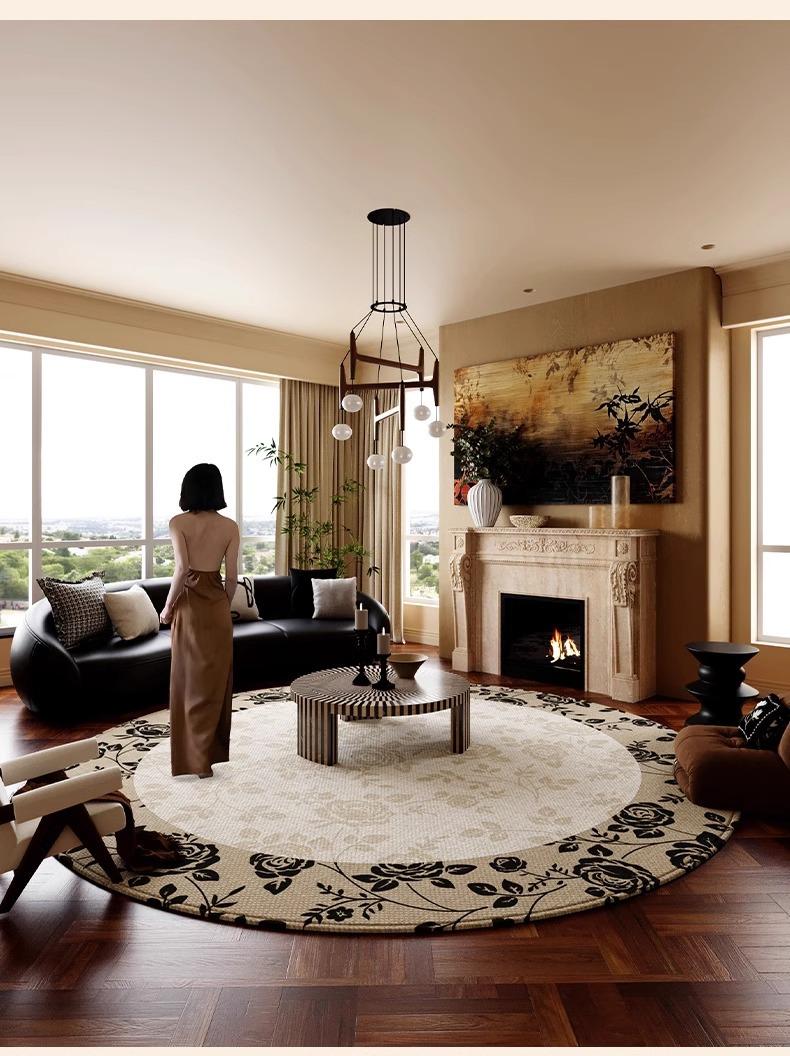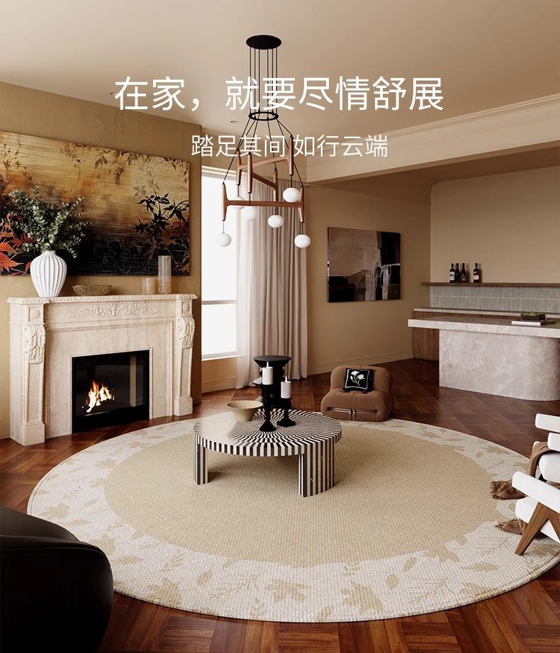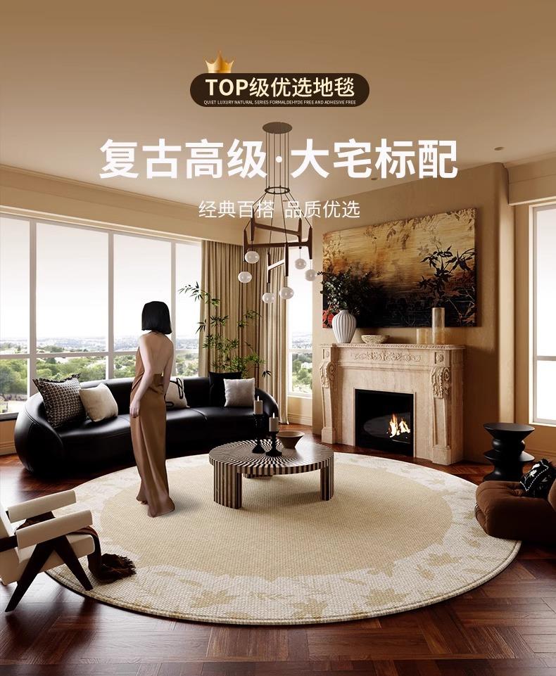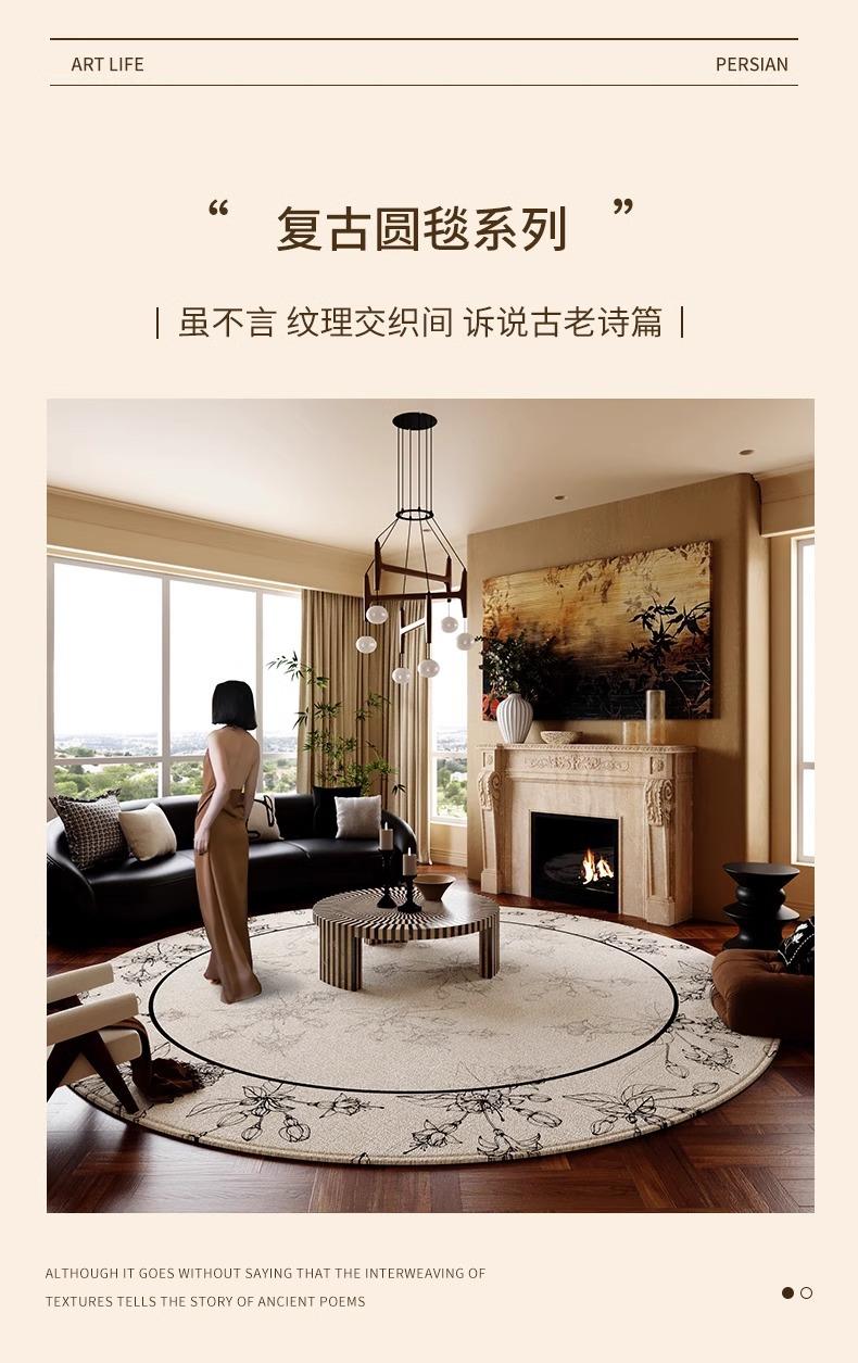 Alfombra Redonda para Sala de Estar, Alfombra para Sofá, Alfombra para Piso, Dormitorio, Nueva, de Alta Gama, Alfombra para Mesa de Centro, Alfombra de Noche, Retro, Impermeable, Estilo Francés