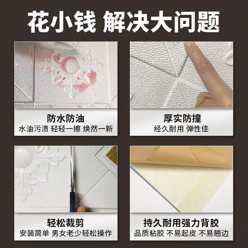 Adhesivo autoadhesivo transfronterizo cálido para dormitorio 3D tridimensional, papel tapiz para pared de fondo, decoración de ladrillo de espuma, adhesivo impermeable y a prueba de humedad