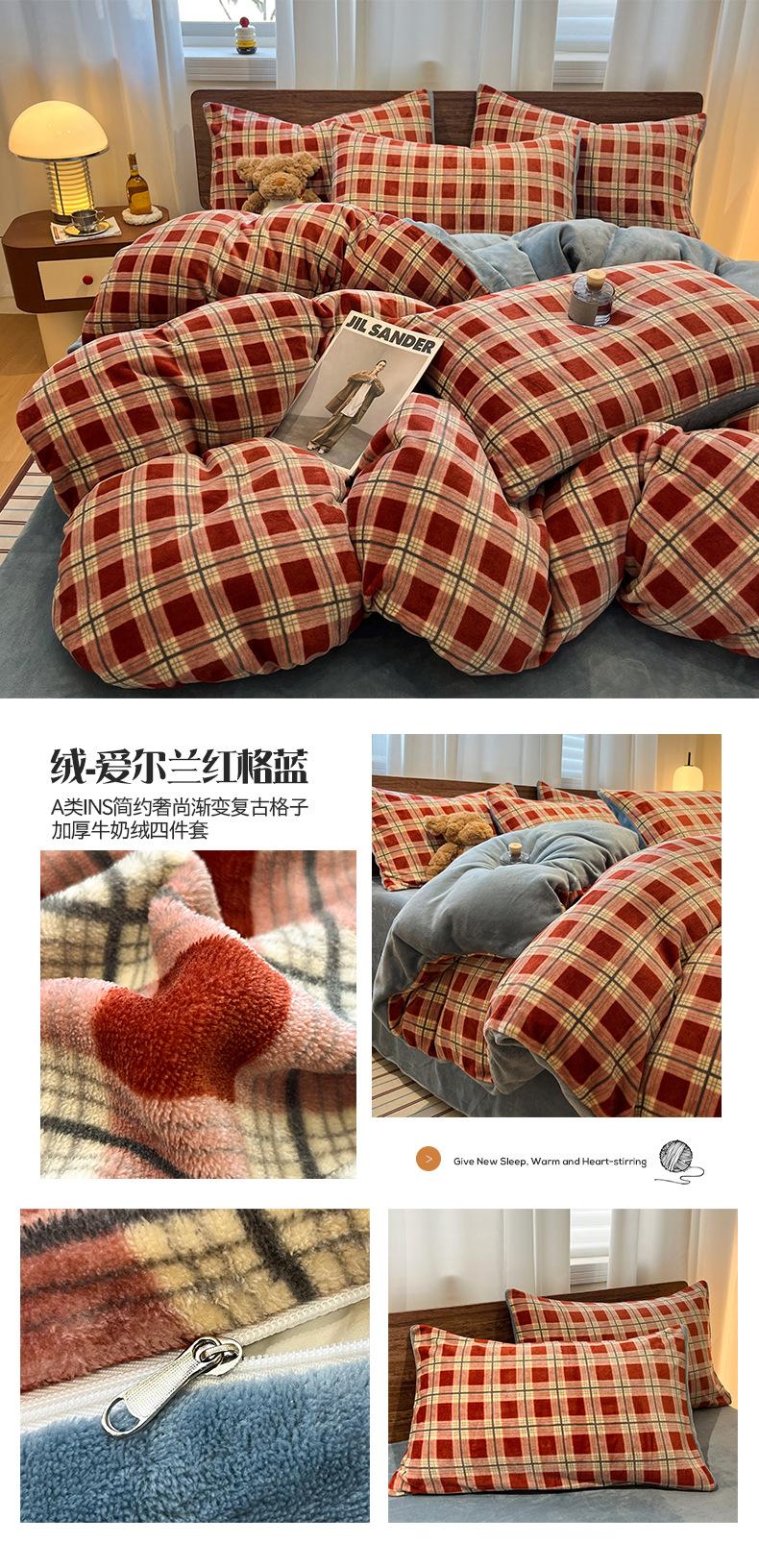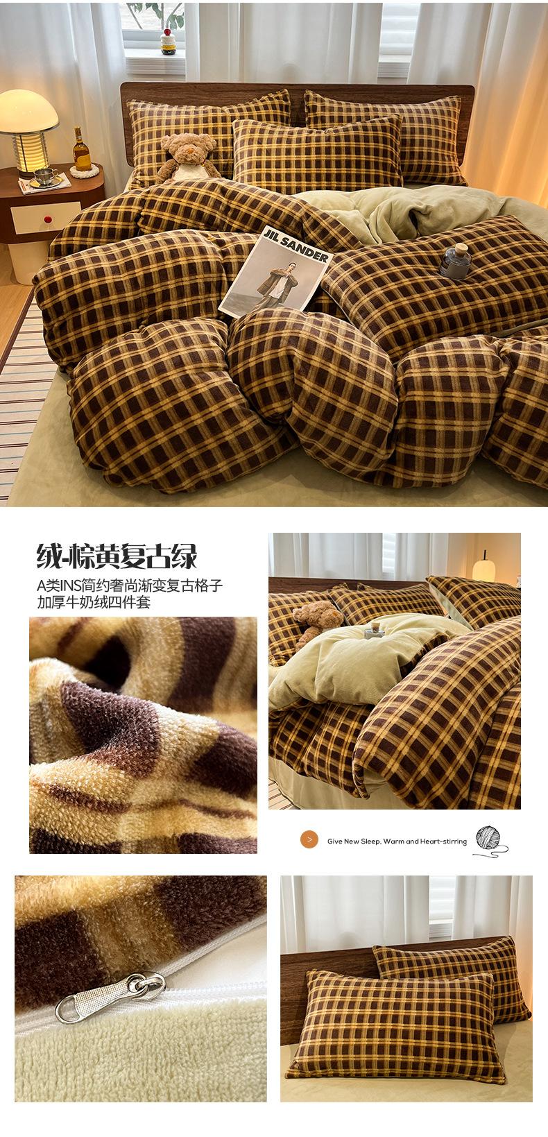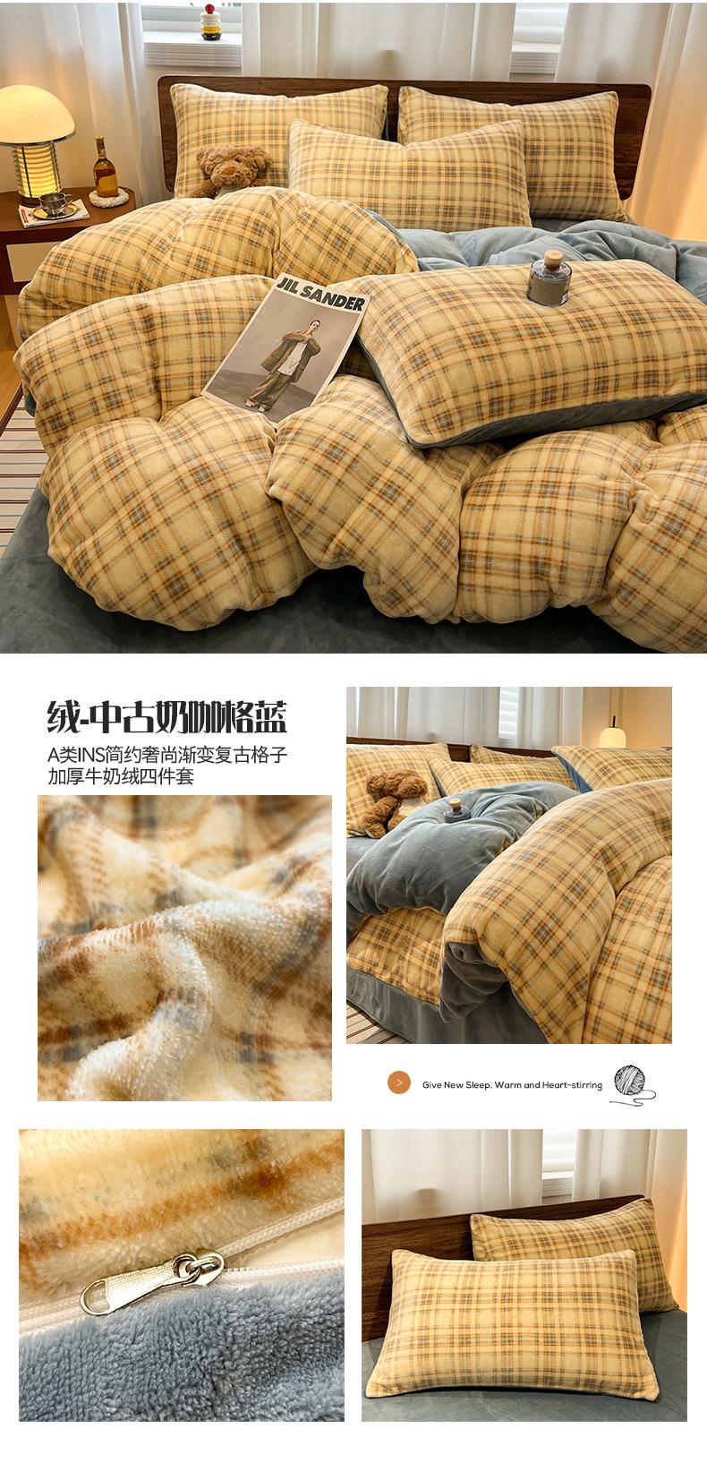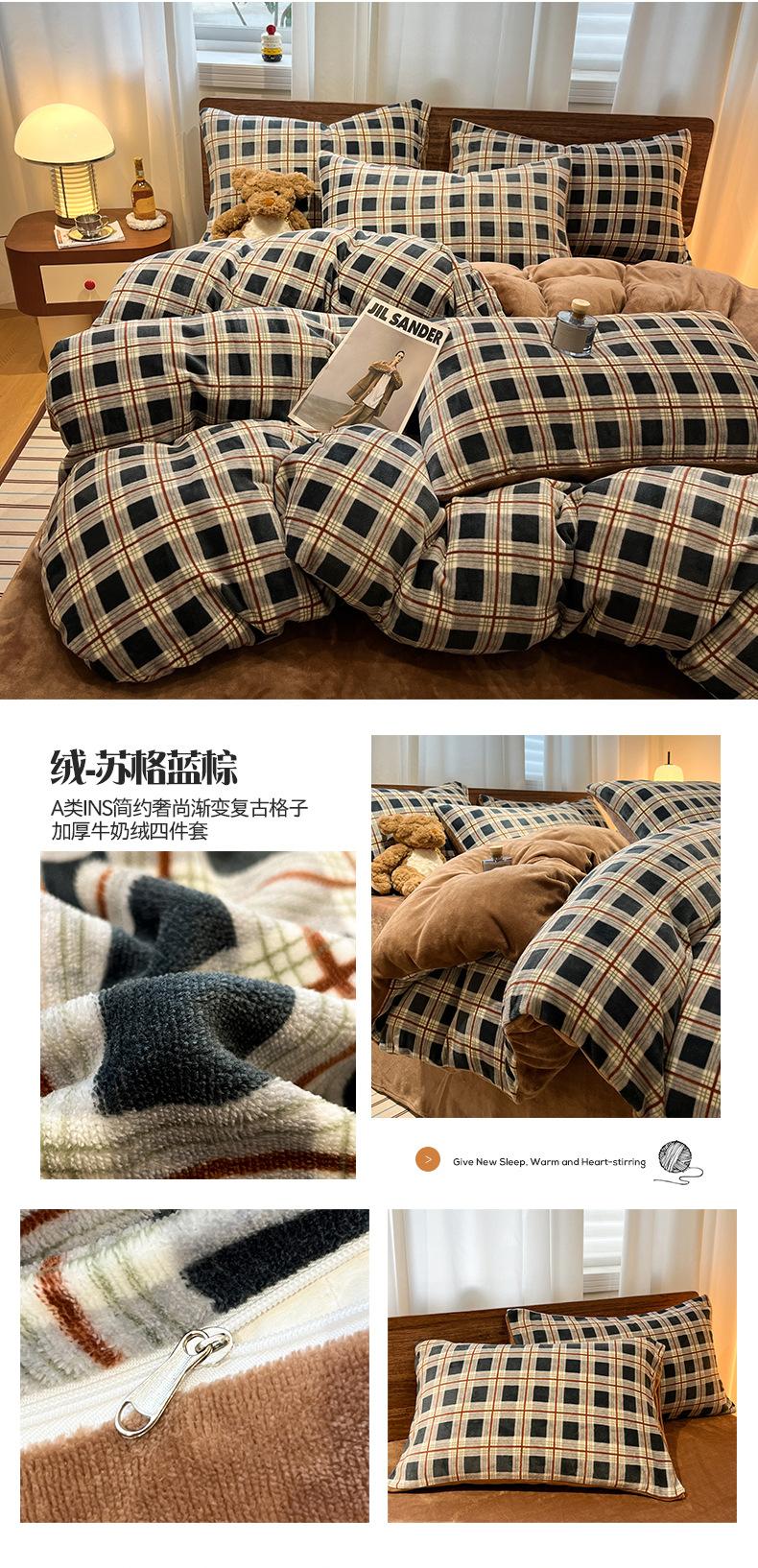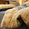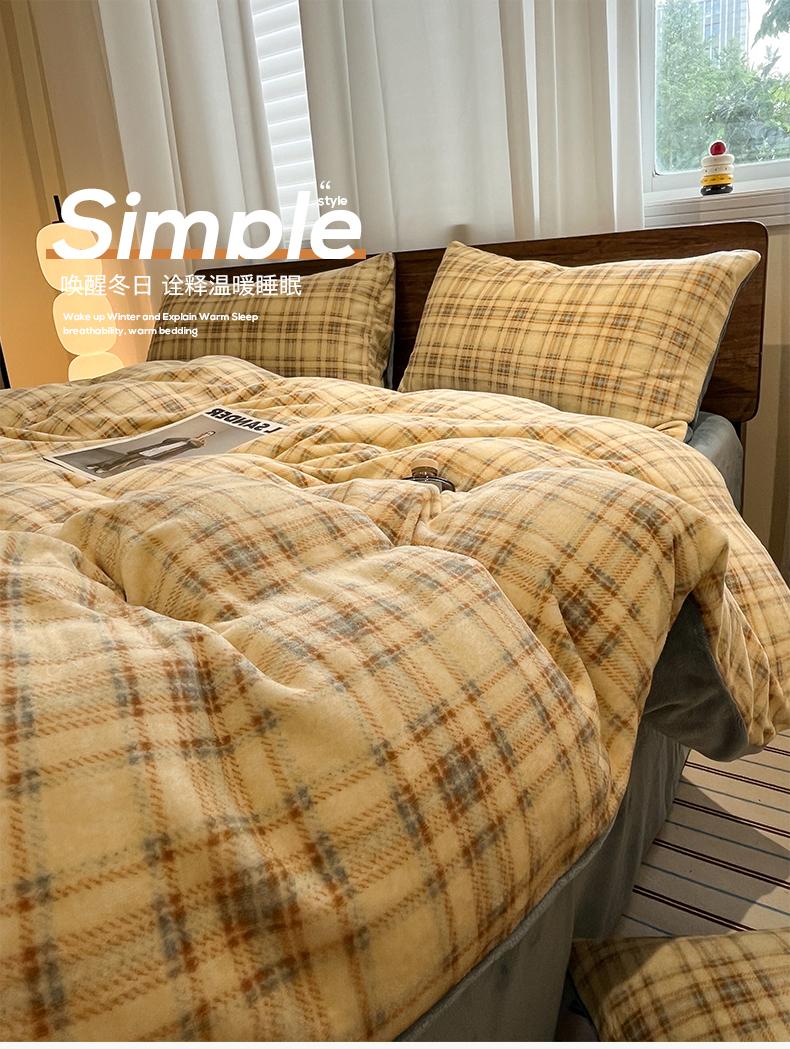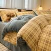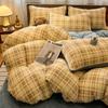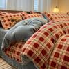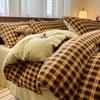 Ins simple retro a cuadros de leche de terciopelo juego de cama de cuatro piezas Clase A engrosado doble cara polar de coral funda nórdica sábana funda de almohada juego de tres piezas
