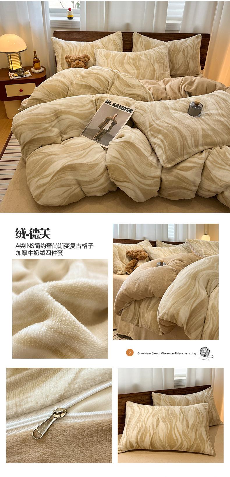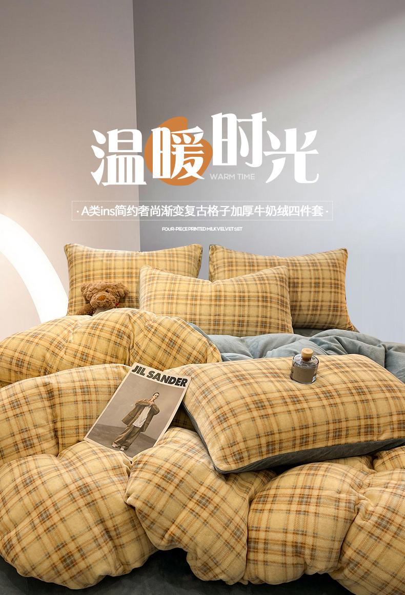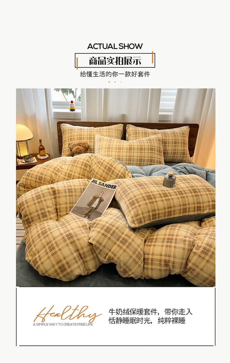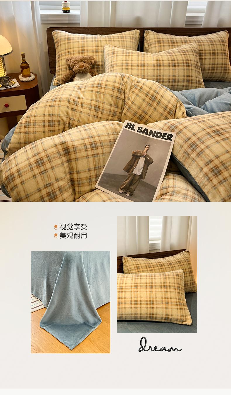 Ins simple retro a cuadros de leche de terciopelo juego de cama de cuatro piezas Clase A engrosado doble cara polar de coral funda nórdica sábana funda de almohada juego de tres piezas