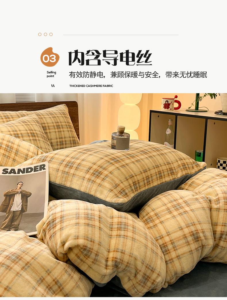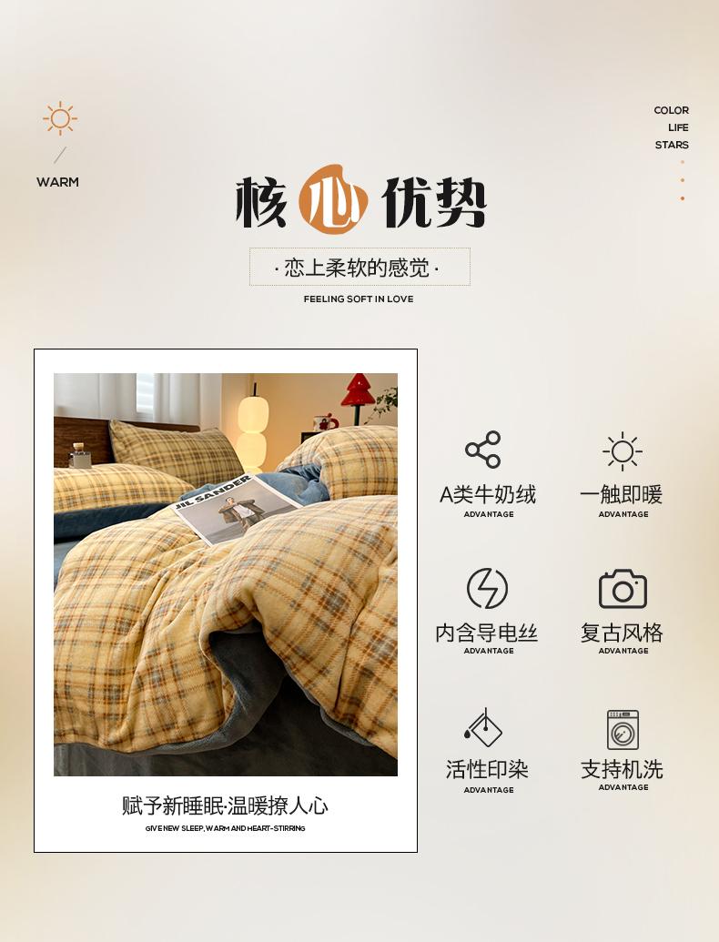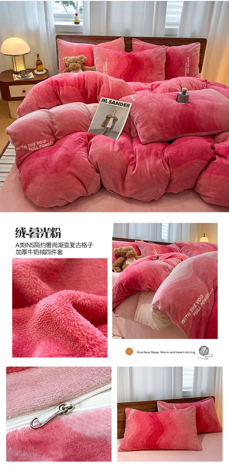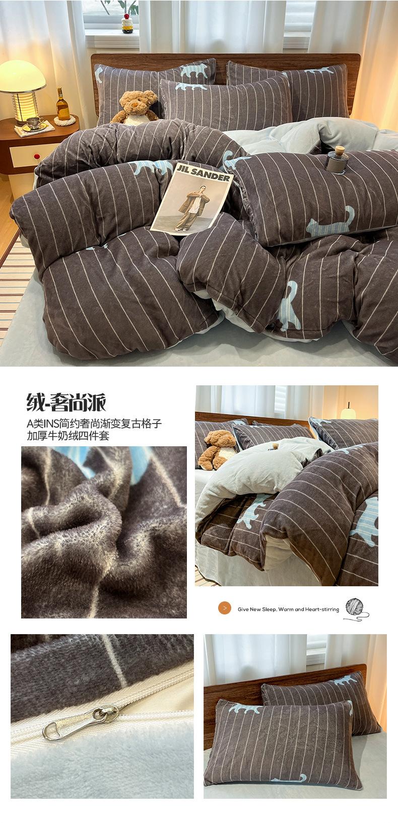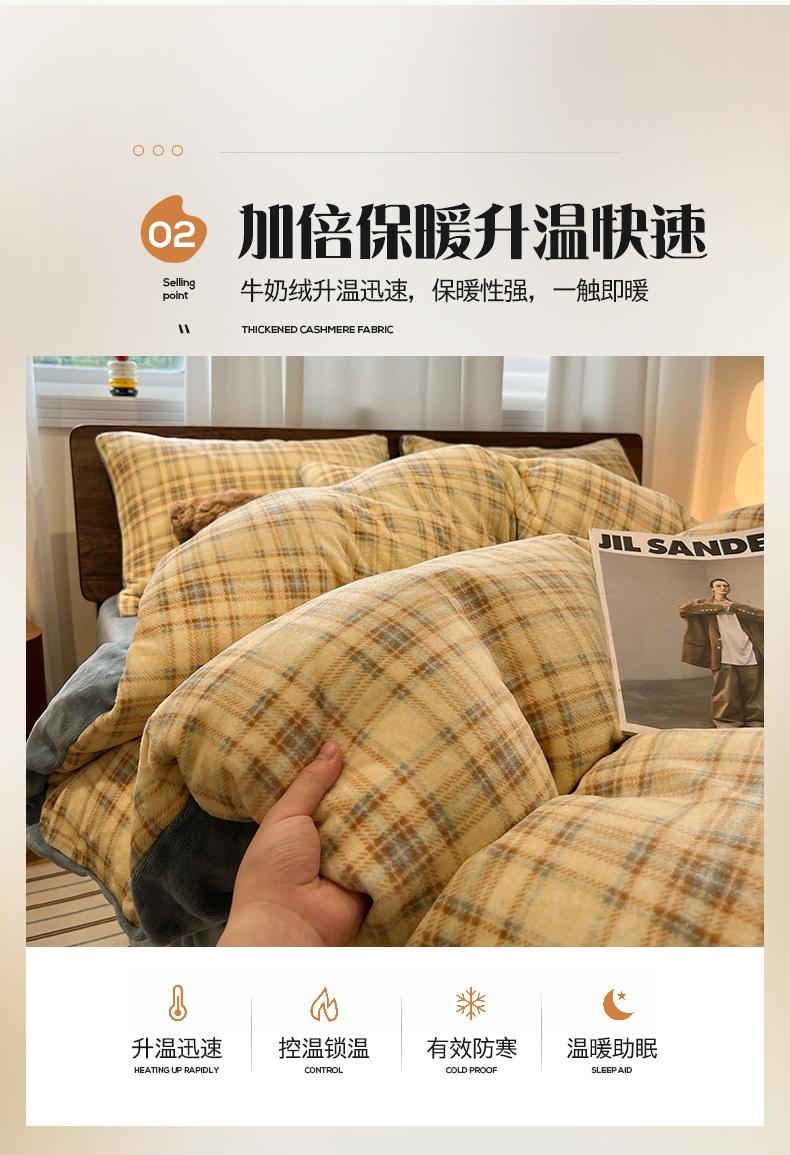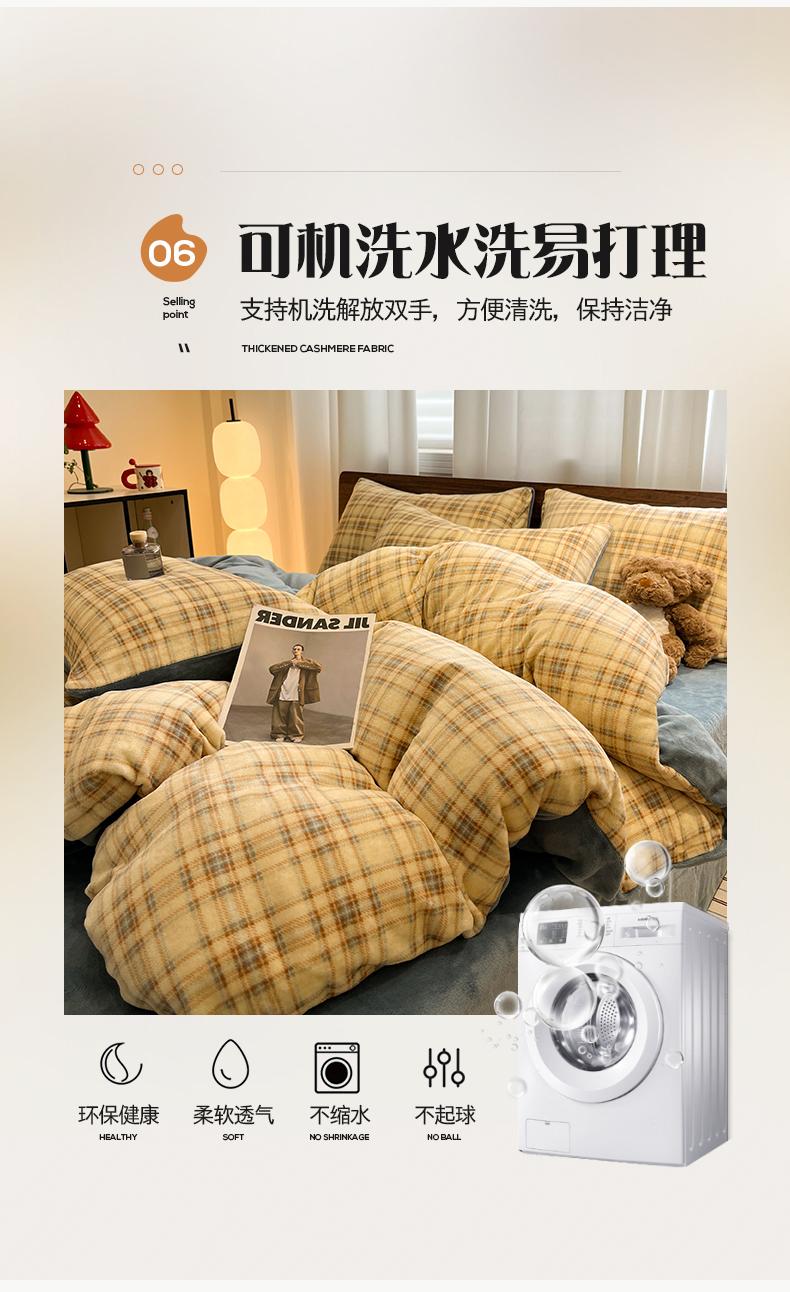 Ins simple retro a cuadros de leche de terciopelo juego de cama de cuatro piezas Clase A engrosado doble cara polar de coral funda nórdica sábana funda de almohada juego de tres piezas