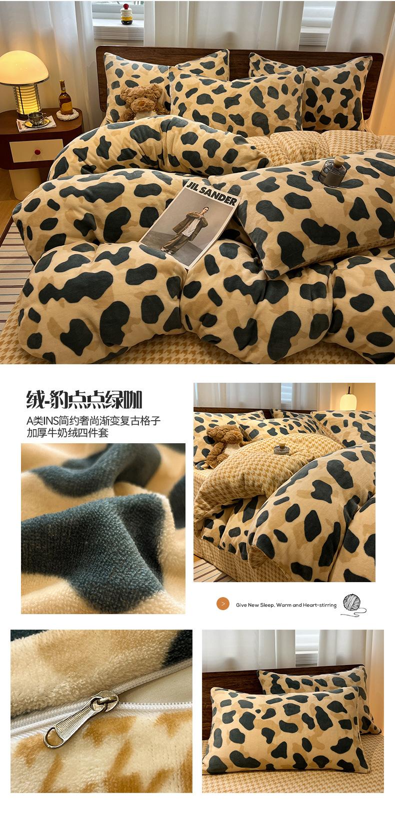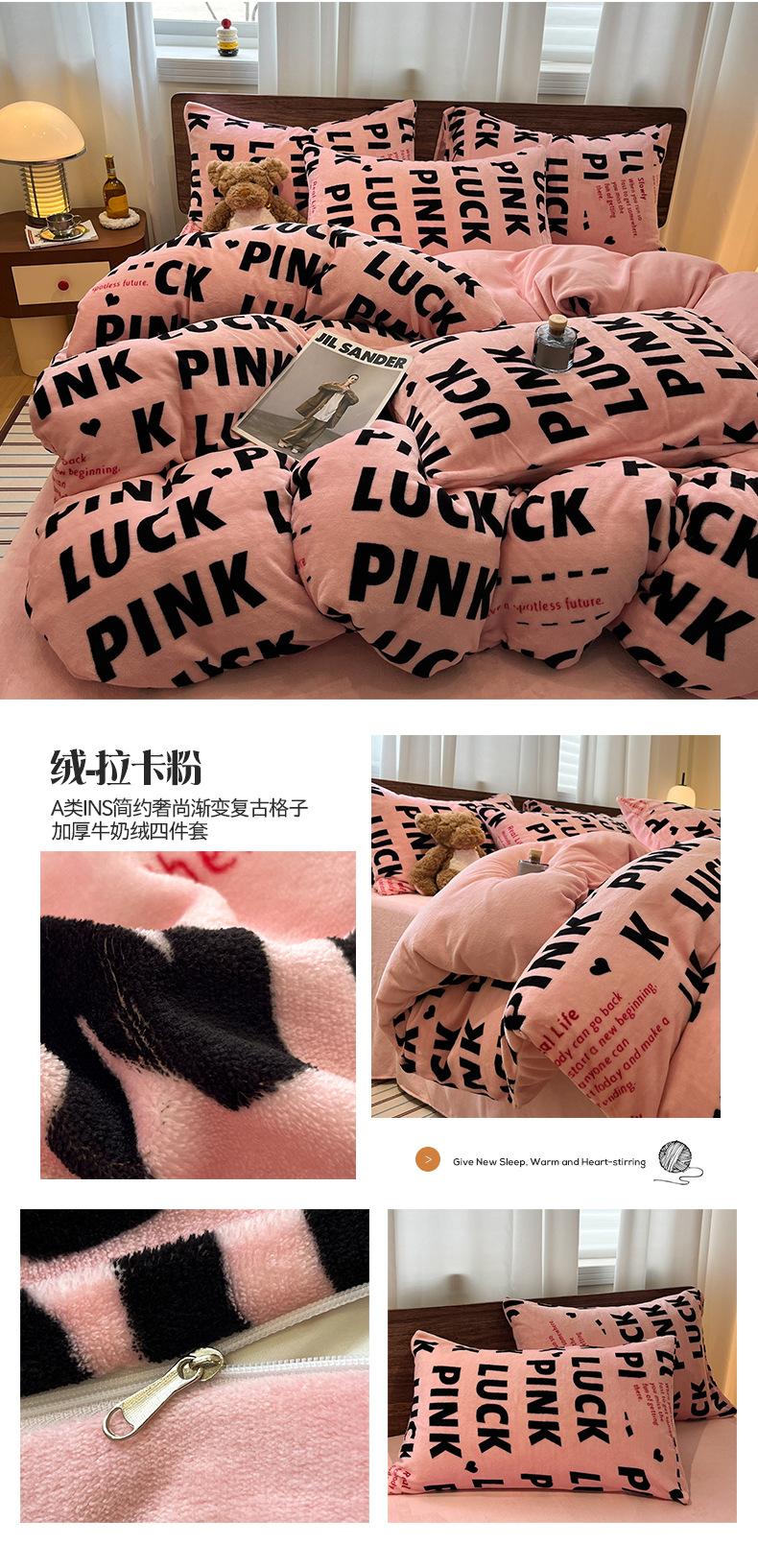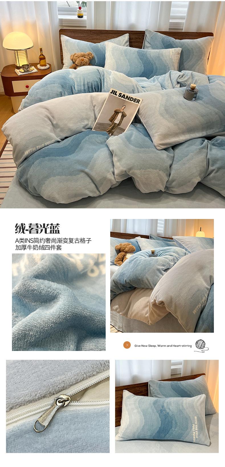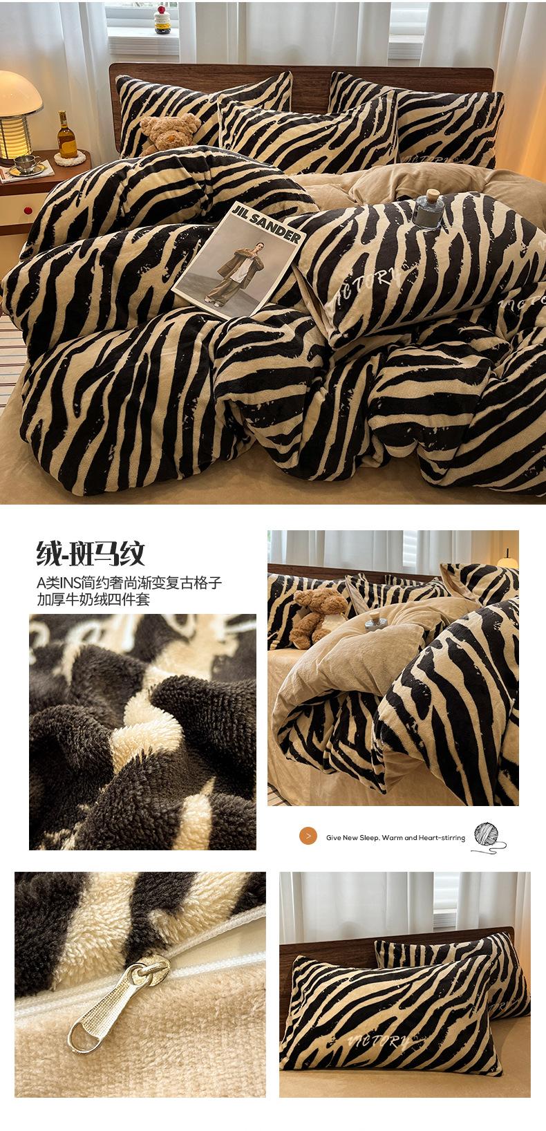 Ins simple retro a cuadros de leche de terciopelo juego de cama de cuatro piezas Clase A engrosado doble cara polar de coral funda nórdica sábana funda de almohada juego de tres piezas