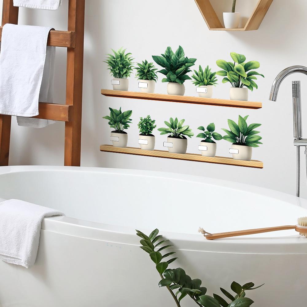 Comercio exterior plantas verdes en maceta dormitorio porche decoración del hogar papel tapiz de pared autoadhesivo mayoreo transfronterizo HY-E244
