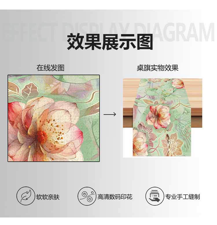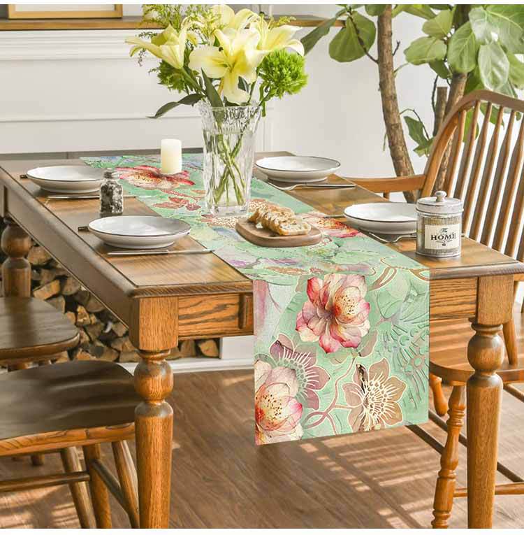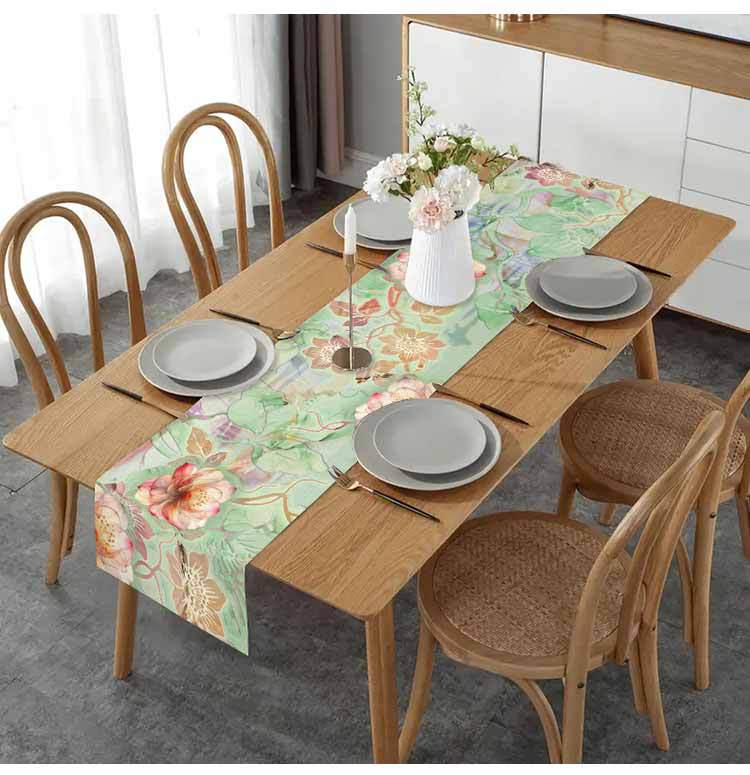 Bandera de Mesa de Flores para Hogar Nuevo Decoración de Mesa de Comedor para Sala de Estar del Hogar Mantel Individual Mantel de Lino Impreso Transfronterizo en Stock