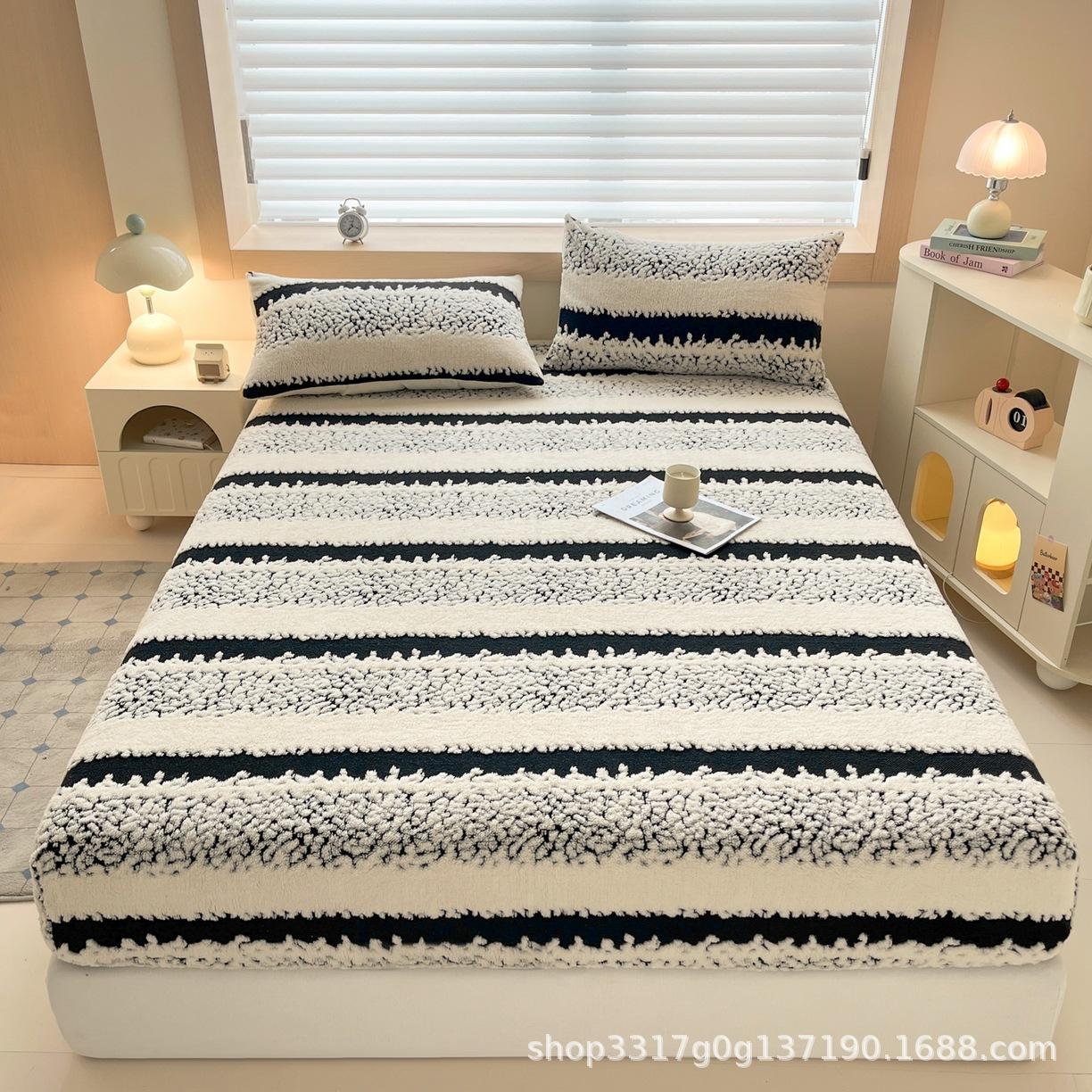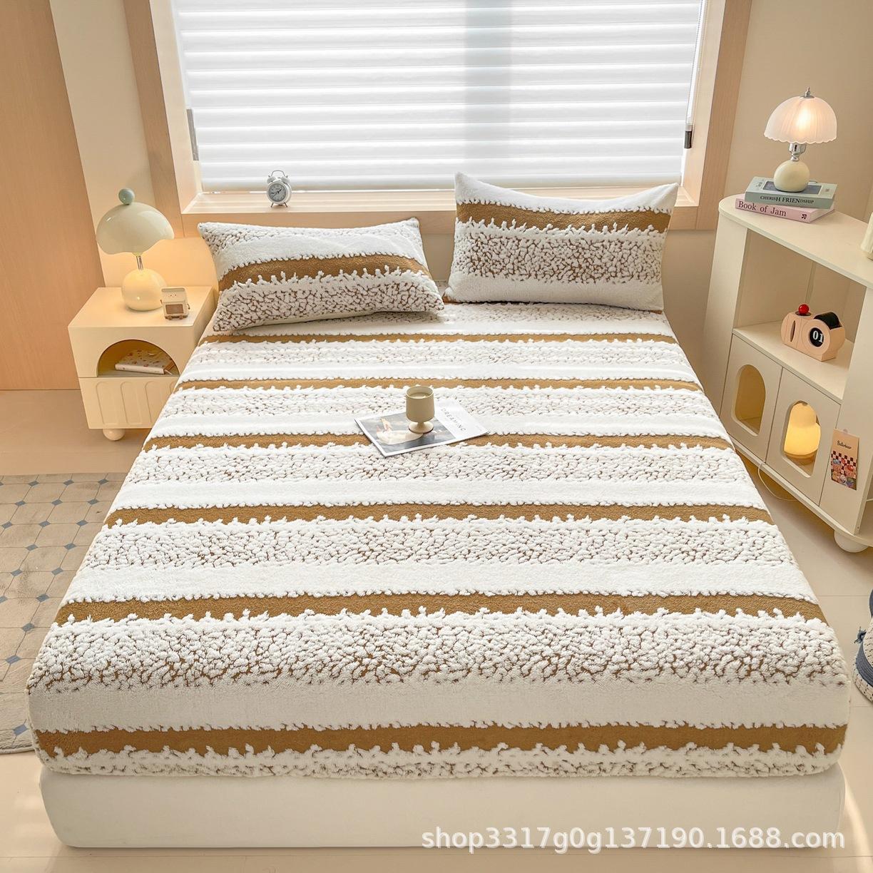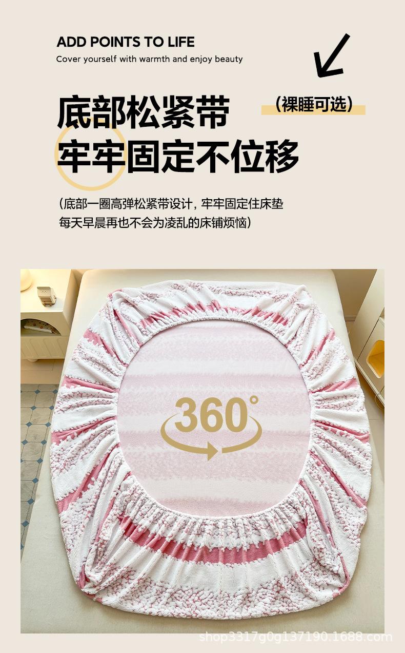 Sábana Ajustable Jacquard Personalizada de Terciopelo de Leche Catiónico Protector de Colchón Completo Cubrepolvo Venta al por Mayor Transfronteriza