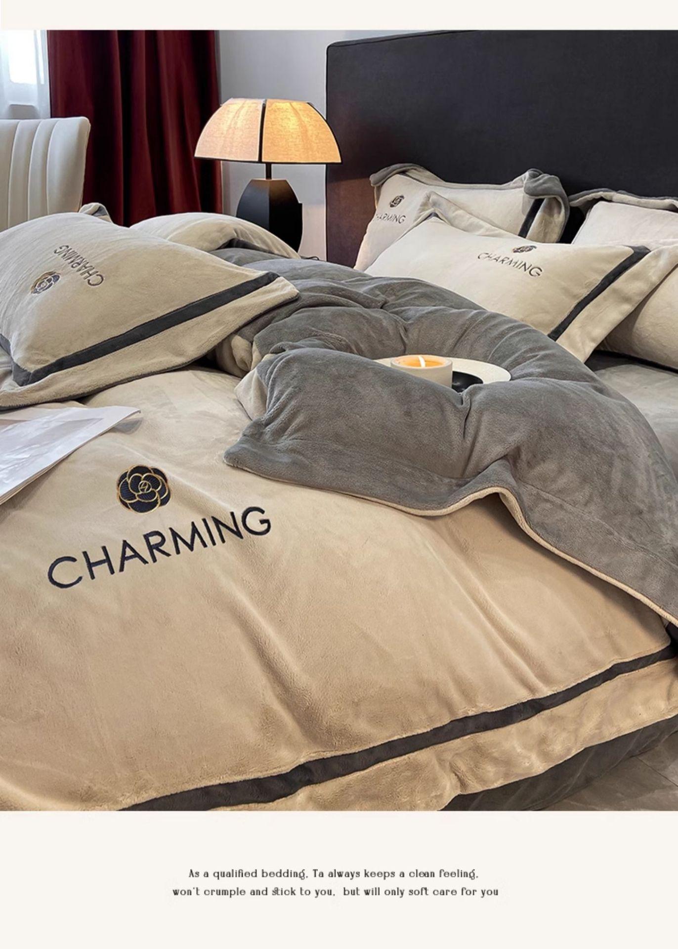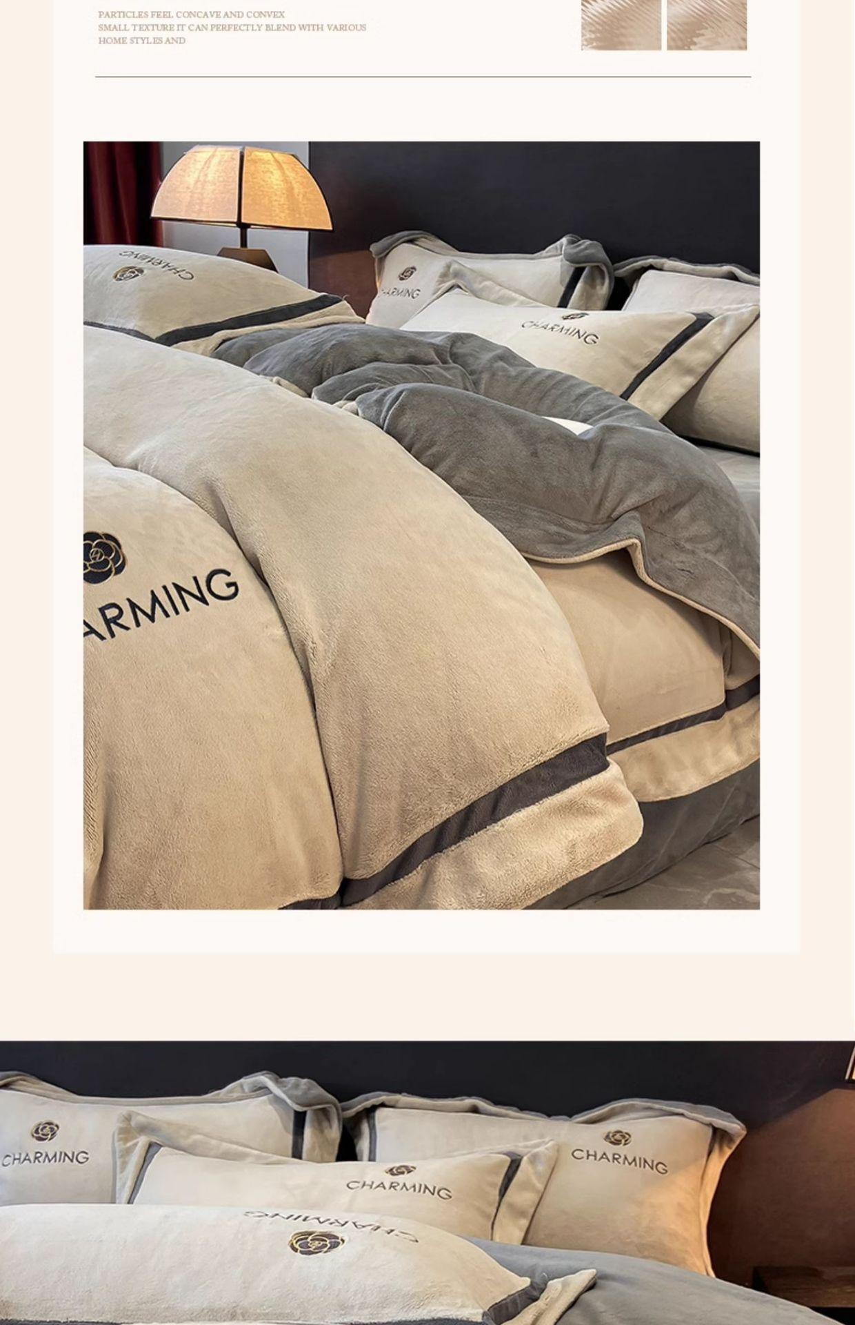 Juego de cuatro piezas de ropa de cama de terciopelo de leche terciopelo de leche invierno engrosado 2025 nuevo sábana de forro polar coral funda nórdica juego de tres piezas