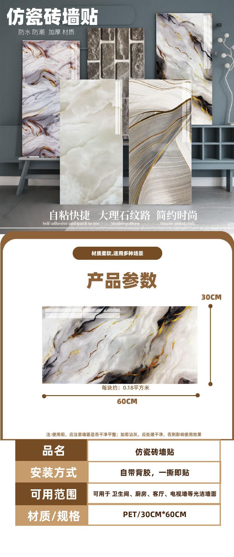 Papel tapiz de pared autoadhesivo transfronterizo para habitación de alquiler impermeable imitación azulejo mármol adhesivo sala de estar cocina adhesivo de pared