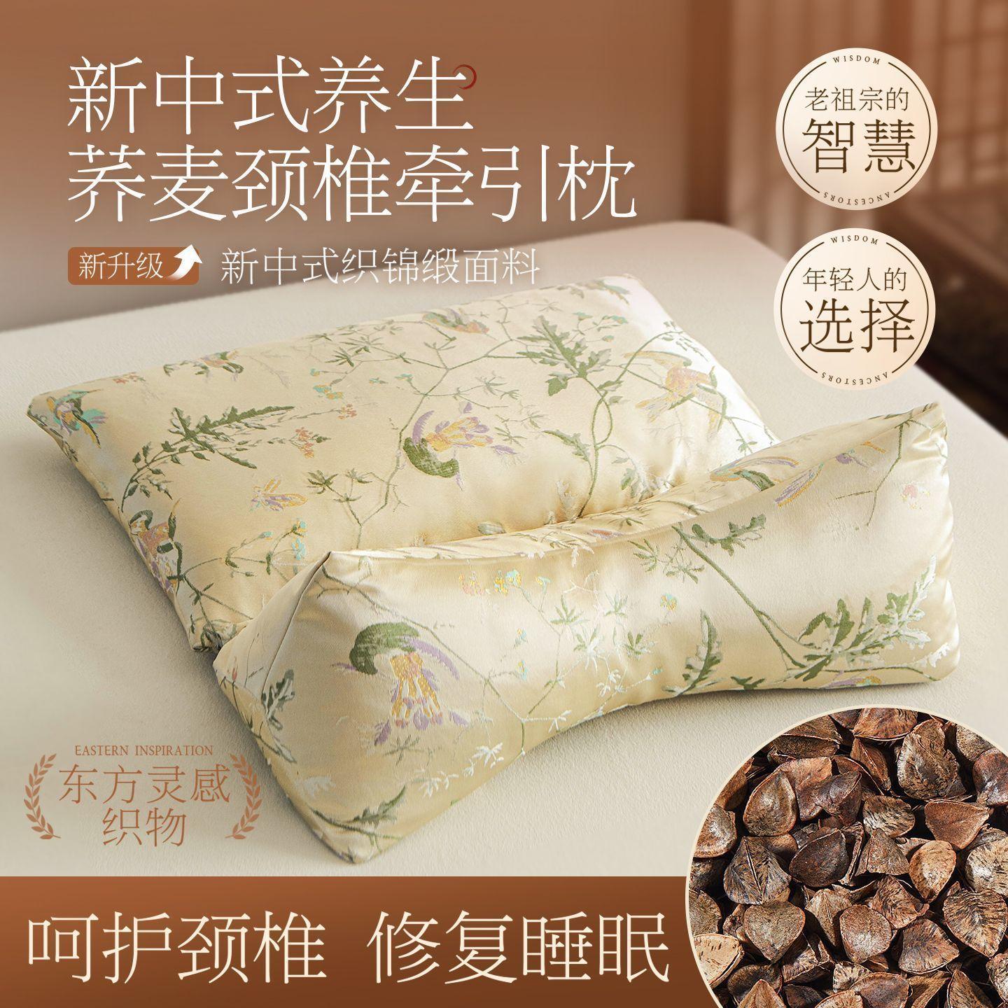 Almohada de Trigo Sarraceno para el Hogar, Almohada Cilíndrica con Núcleo de Algodón, Almohada de Tracción con Arco Invertido para Soporte de Cuello al Dormir, Almohada Dura de Trigo Sarraceno Elevada, Venta al por Mayor