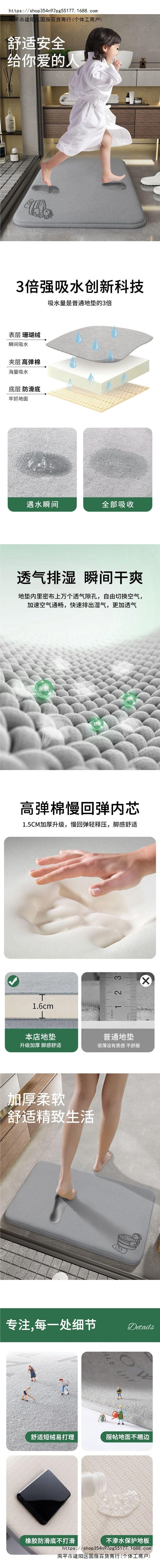 20*20cm【Pure Grey No Picture】, 50*80cm【Home Bathroom Size】Recommended, 60*90cm【Recommended Size for Bathroom D...