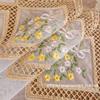Pantalla de Ventana Translúcida Nebulosa Simple Verano Fresco Flor Bordada Cortina Corta con Agujeros Incorporados