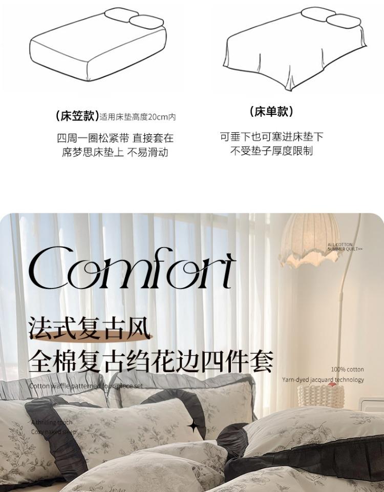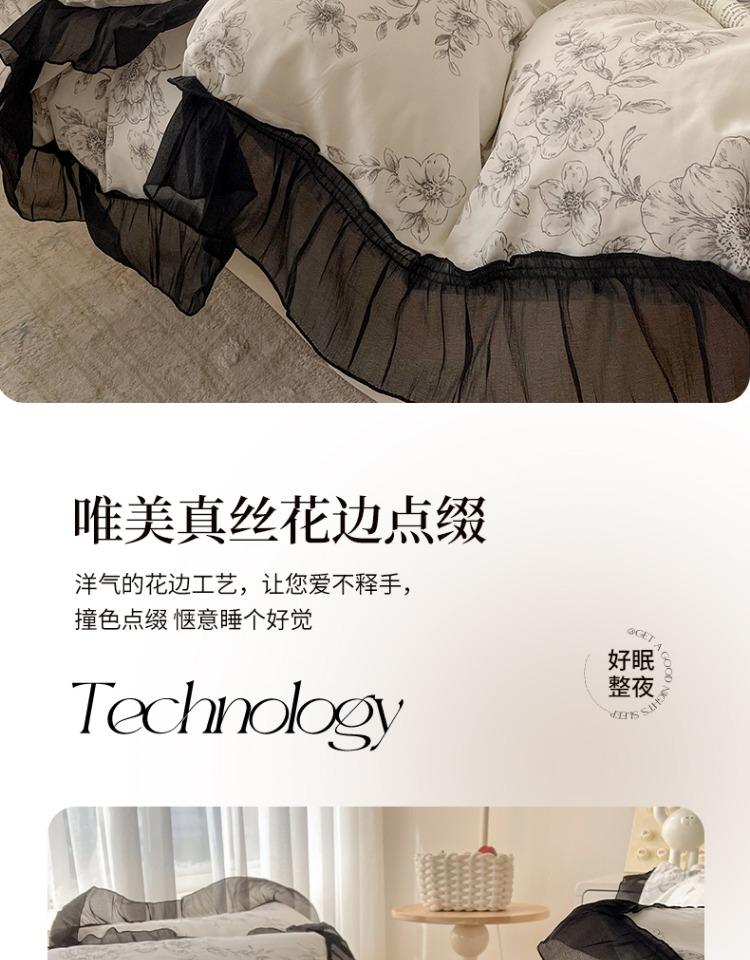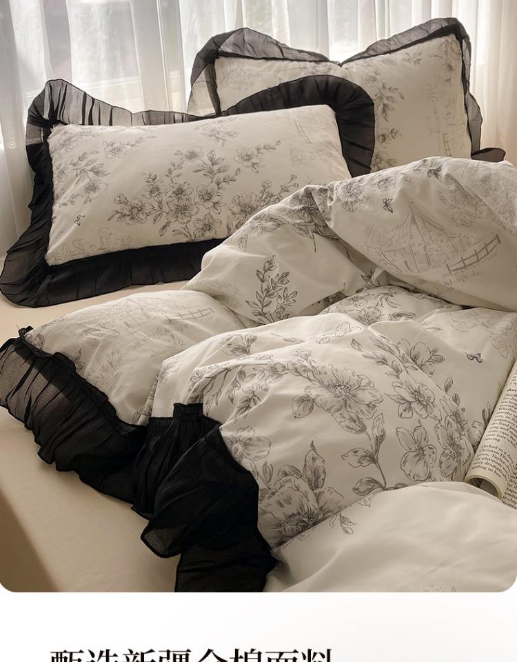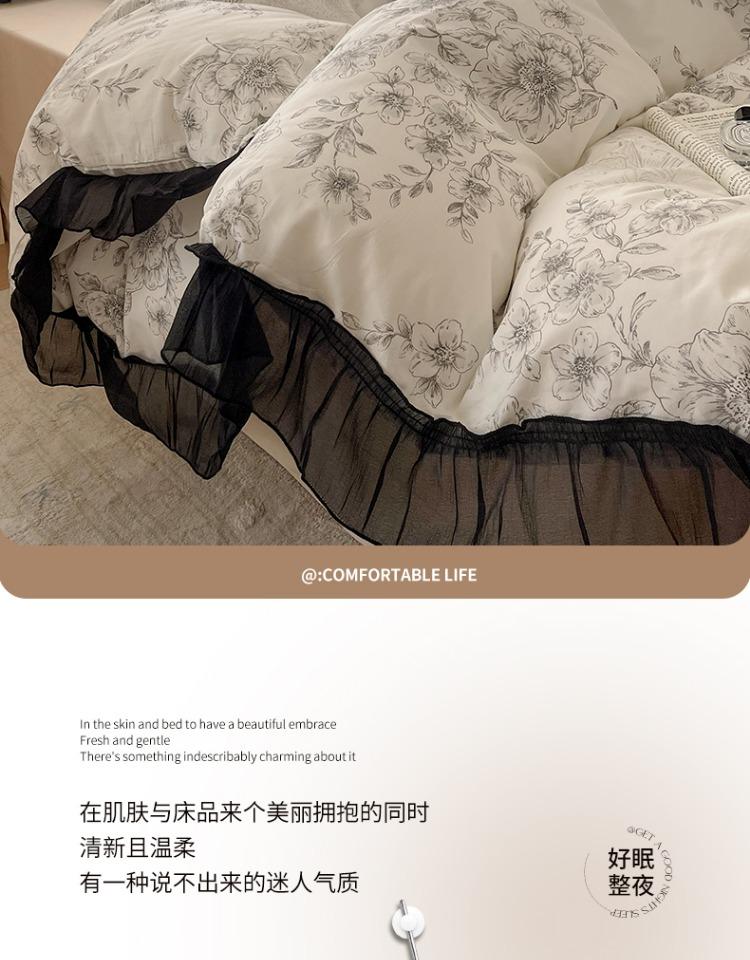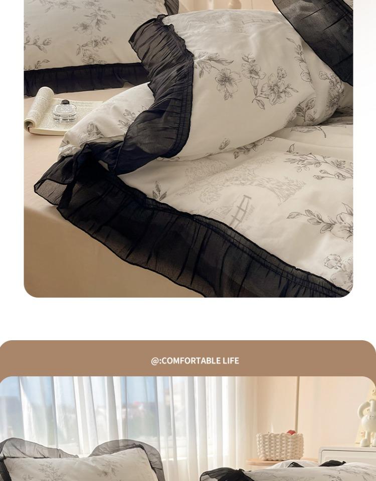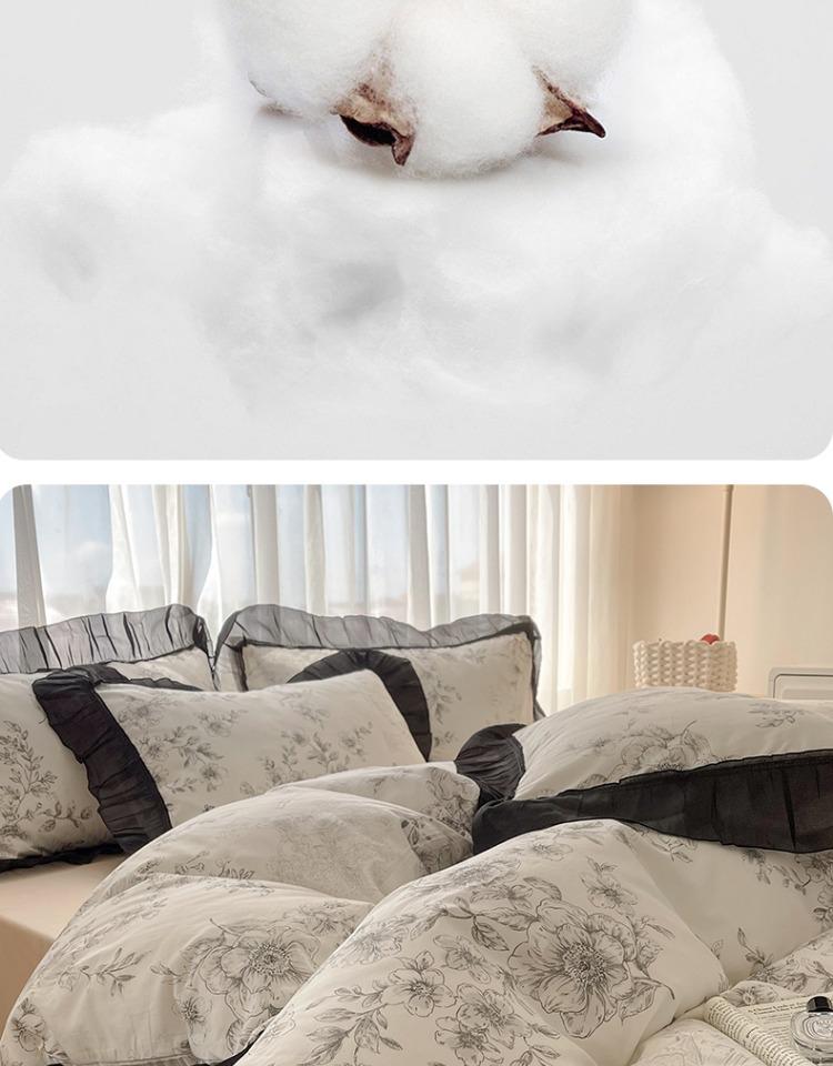 Encaje Retro Francés Algodón Puro Algodón Juego de Cuatro Piezas 2025 Nuevo Funda de Edredón Cubierta Sábana de Cama Ropa de Cama de Lujo Ligero de Alta Gama