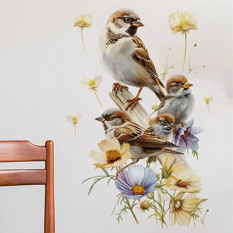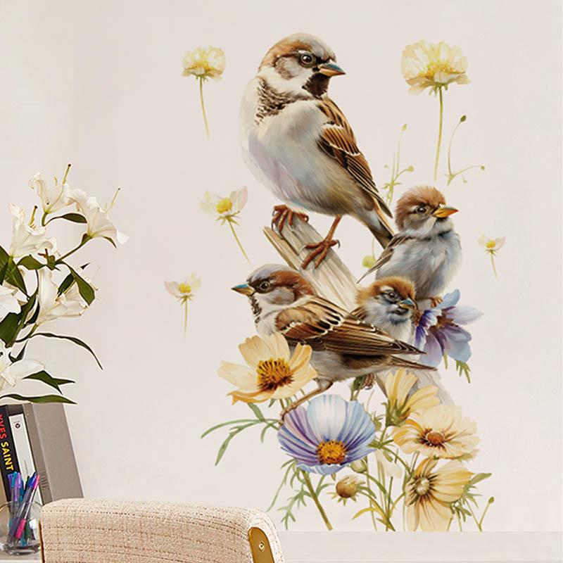 Compra Calcomanías de pared transfronterizas de flores y pájaros coloridos, calcomanías de pared para cocina, sala de estar, dormitorio, calcomanías interesantes para decoración del hogar, autoadhesivas PV al por mayor en Joom.pro