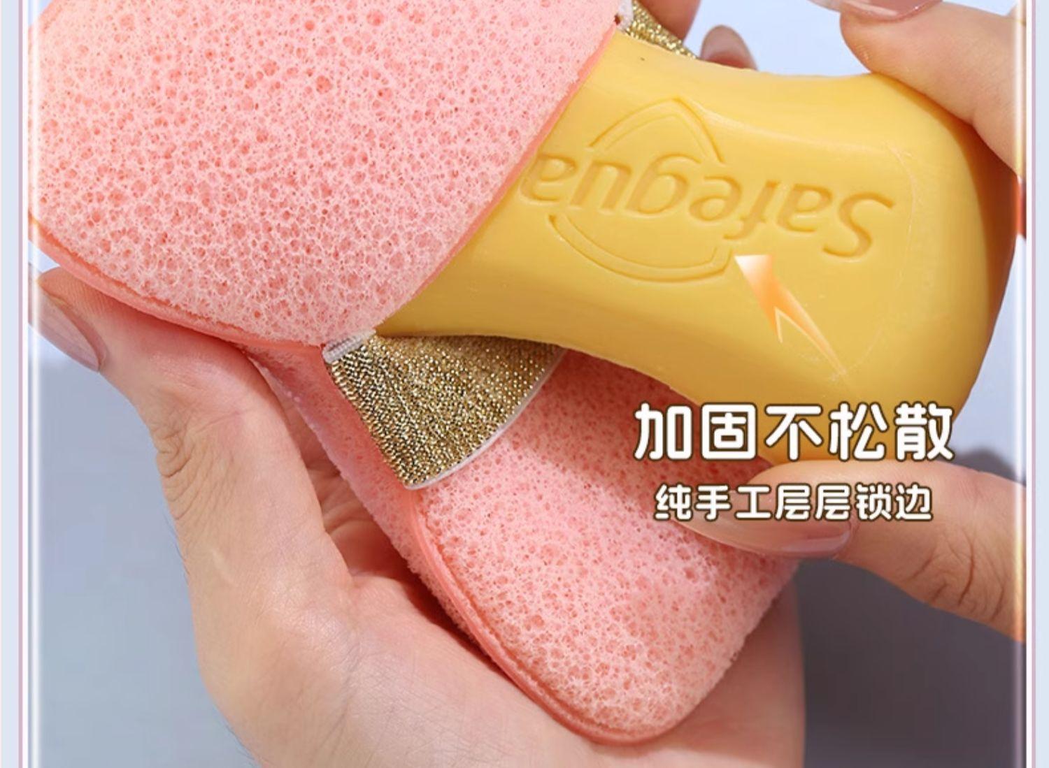 Soap Pouch Bath Sponge-Honeycomb Coarse Surface-Peach Pink【Foams in One Second with Built-in Hand Strap】