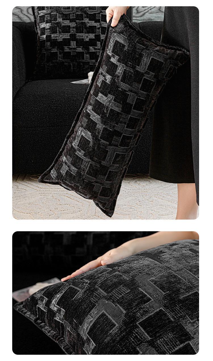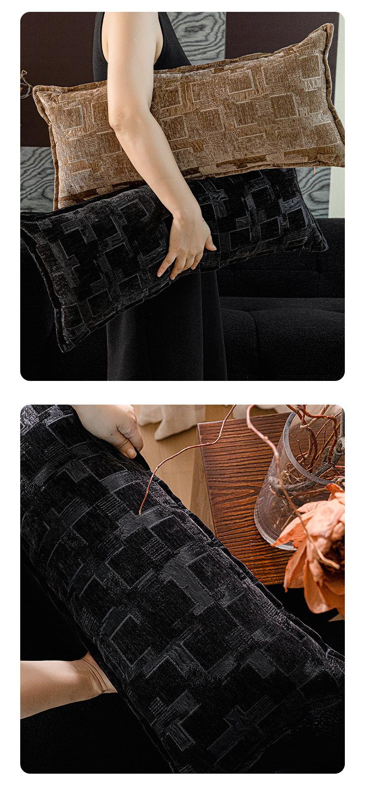 Almohada Decorativa de Lujo Ligero de Alta Gama Almohada Cuadrada de Terciopelo Negro Almohada Lumbar Larga para Sofá de Sala de Estar de Habitación Modelo de Villa de Alta Gama