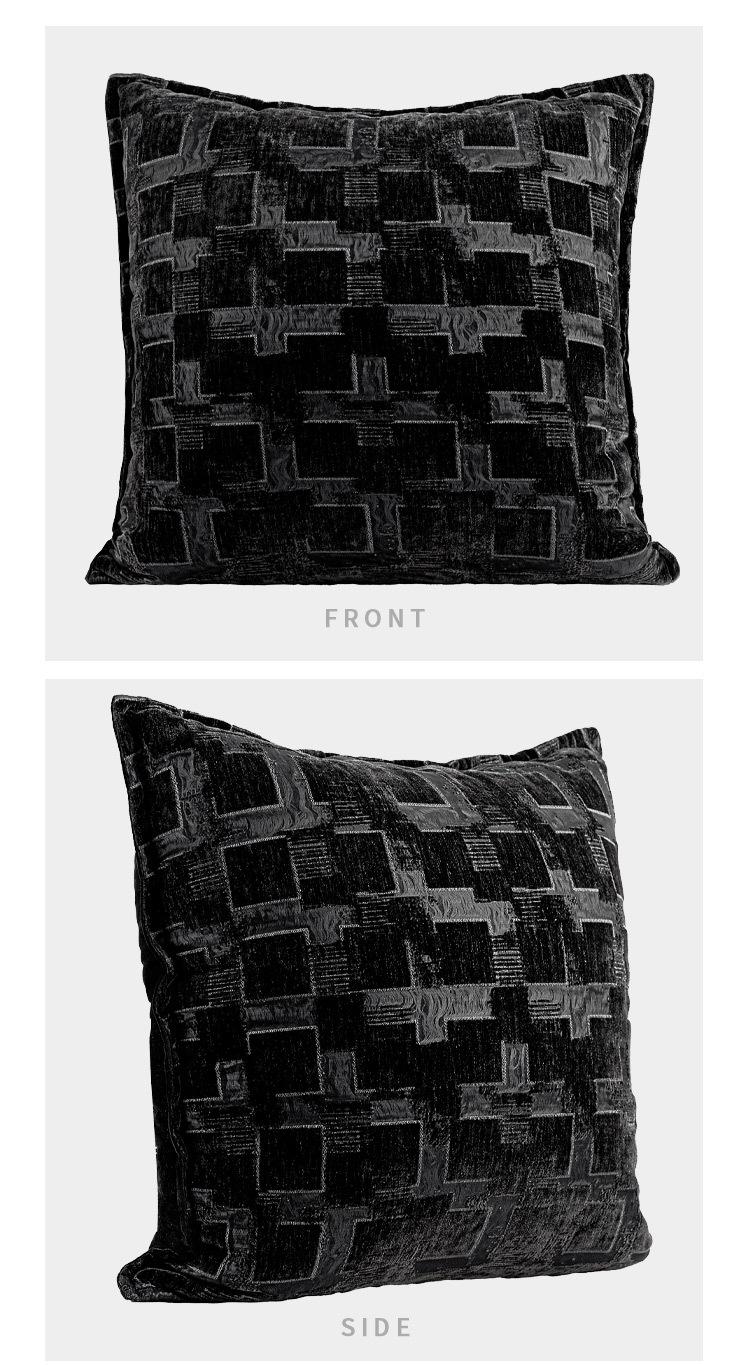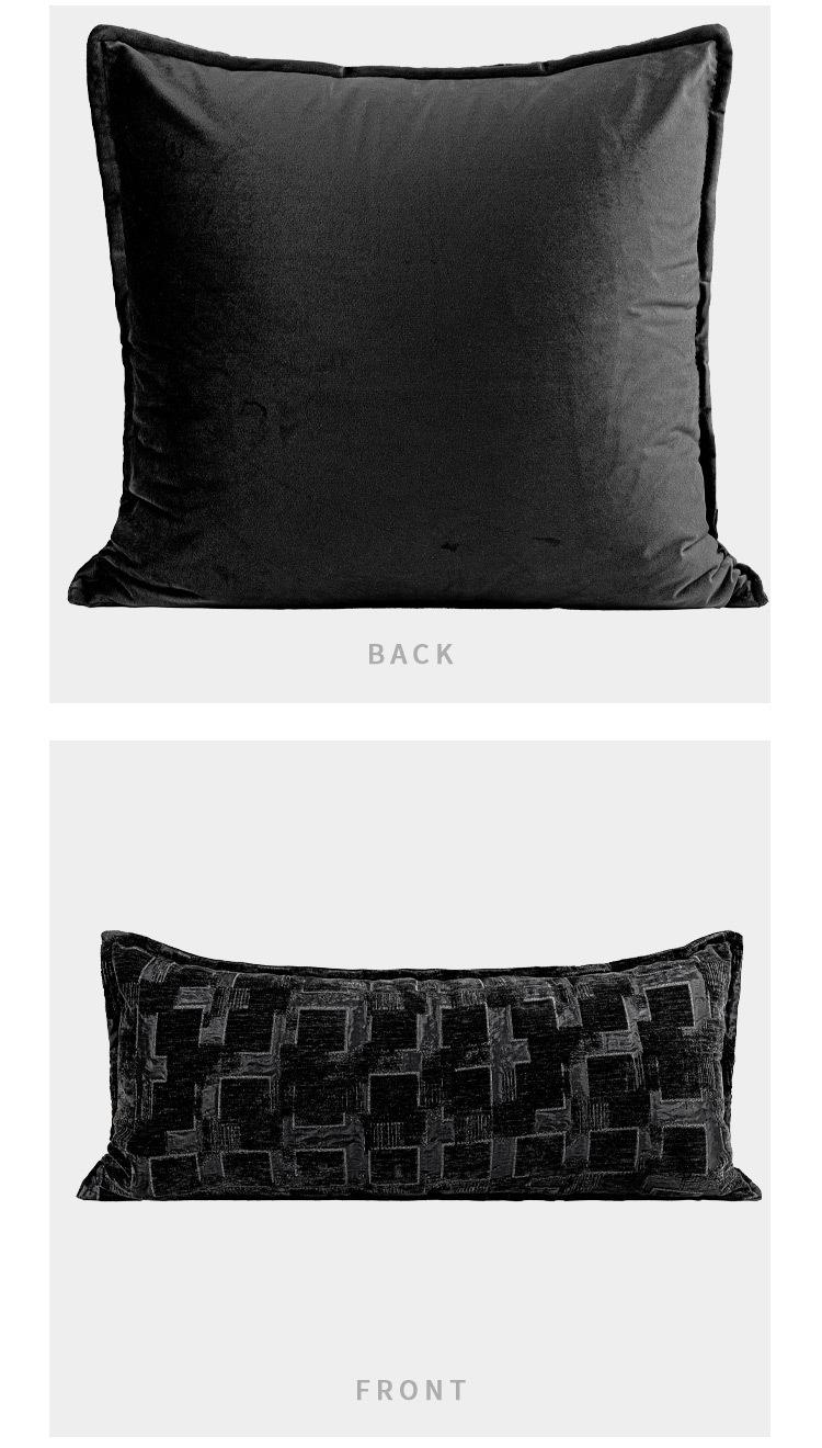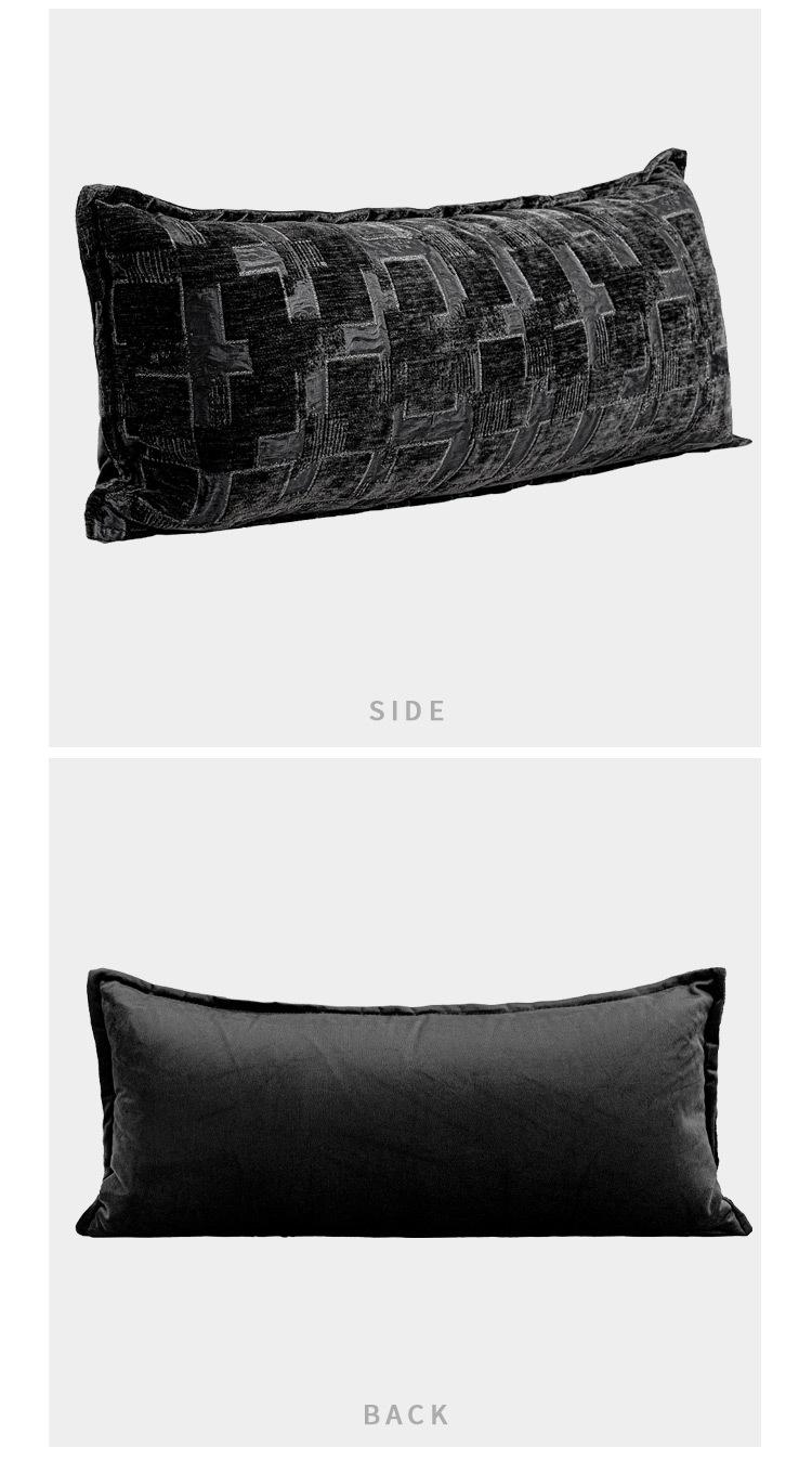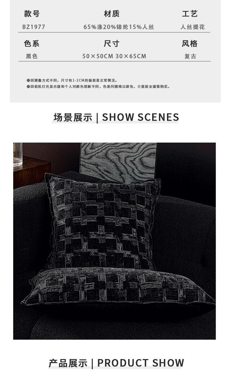 50×50cm black rayon jacquard square pillow, 30×65cm black rayon jacquard long lumbar pillow, 30×50cm black ray...