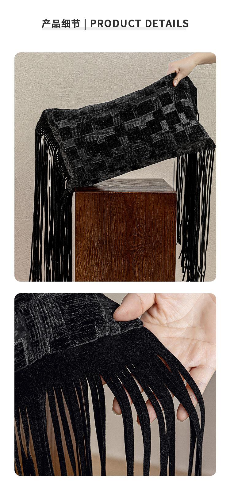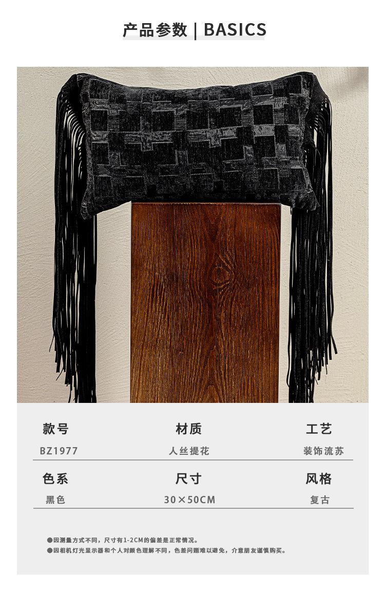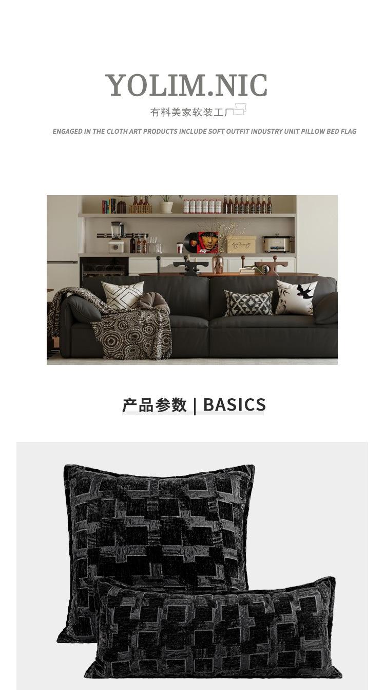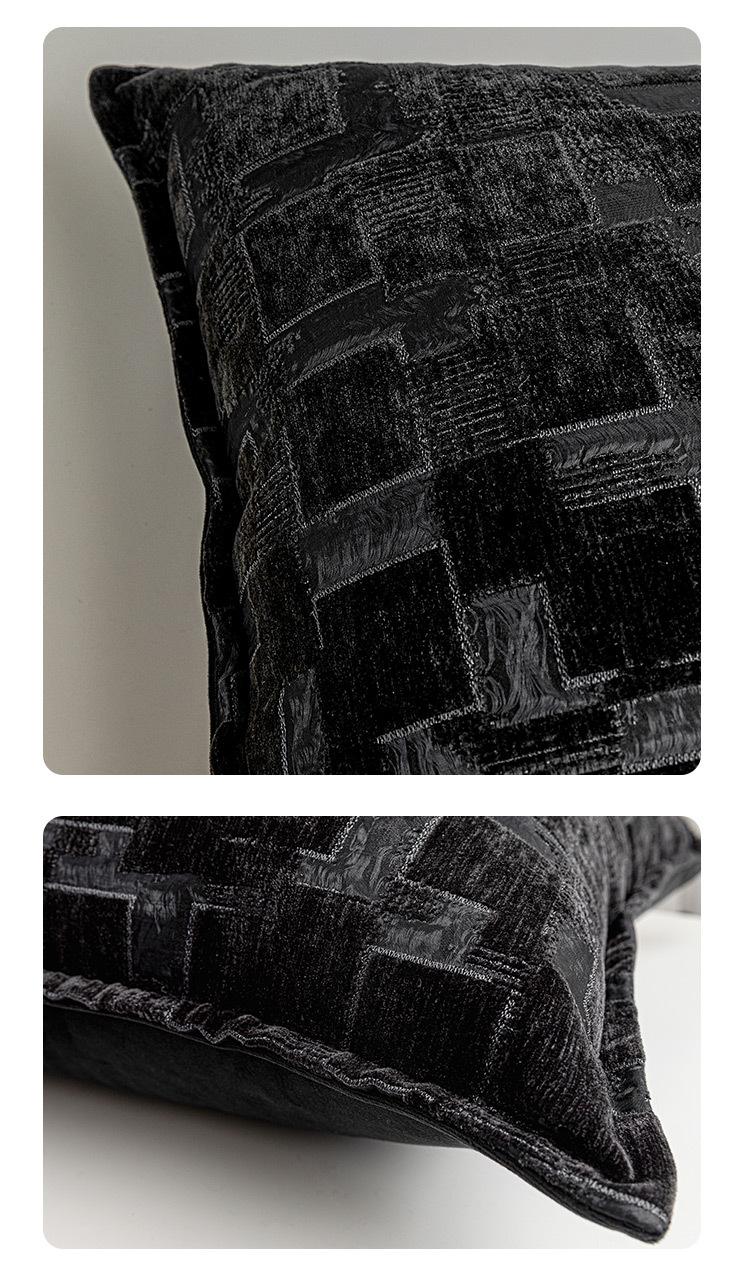 50×50cm black rayon jacquard square pillow, 30×65cm black rayon jacquard long lumbar pillow, 30×50cm black ray...