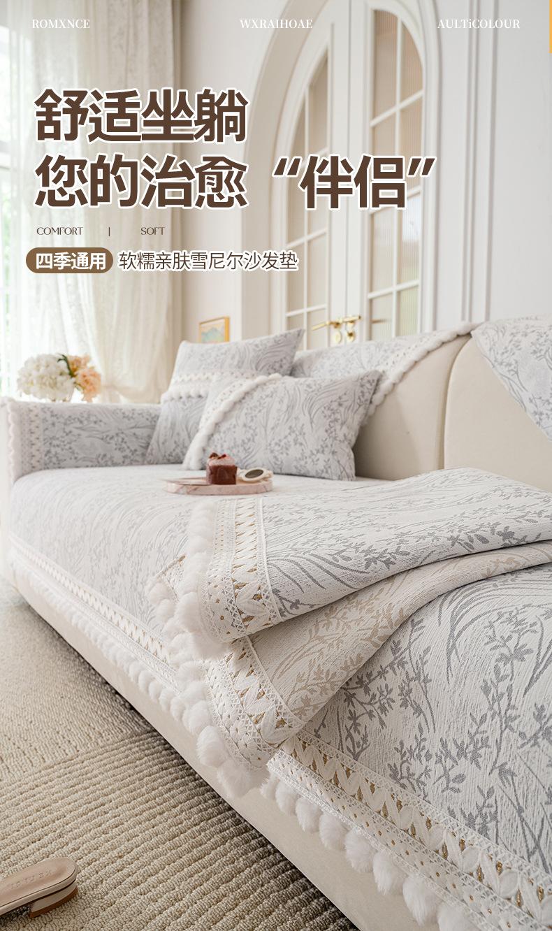Estilo Minimalista Amigable con la Piel Espesado Chenilla Cojín de Sofá 2025 Nuevo Cuatro Estaciones Universal Una Pieza Funda de Cojín de Asiento Manta de Tela