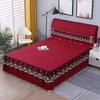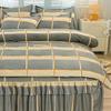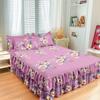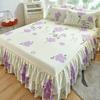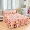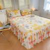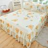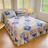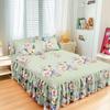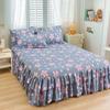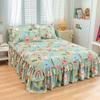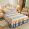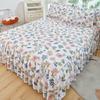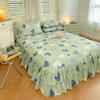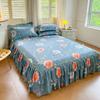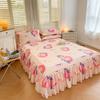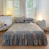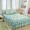 Falda de Cama Estilo Coreano Algodón Grueso Amigable con la Piel Cubrecama de Una Pieza Cama Doble Juego de Tres Piezas Antideslizante Encaje de Doble Capa Sábana Protectora