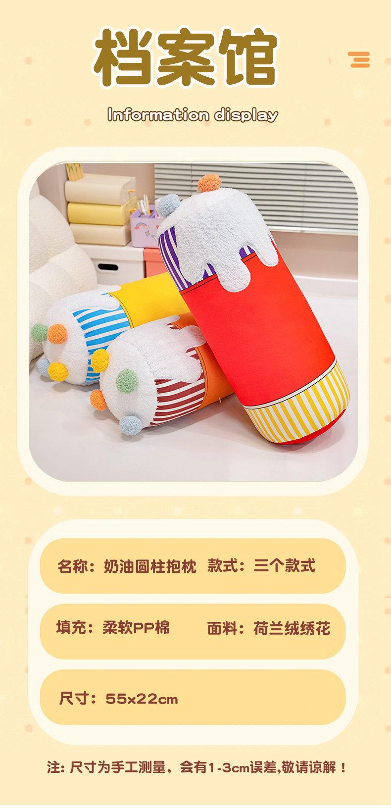 Lindo Dibujo Animado Crema Cilindro Almohada Corporal Almohada de Confort para Dormir en la Cama Cojín de Sofá Dormitorio de Estudiantes Almohada Lumbar Larga