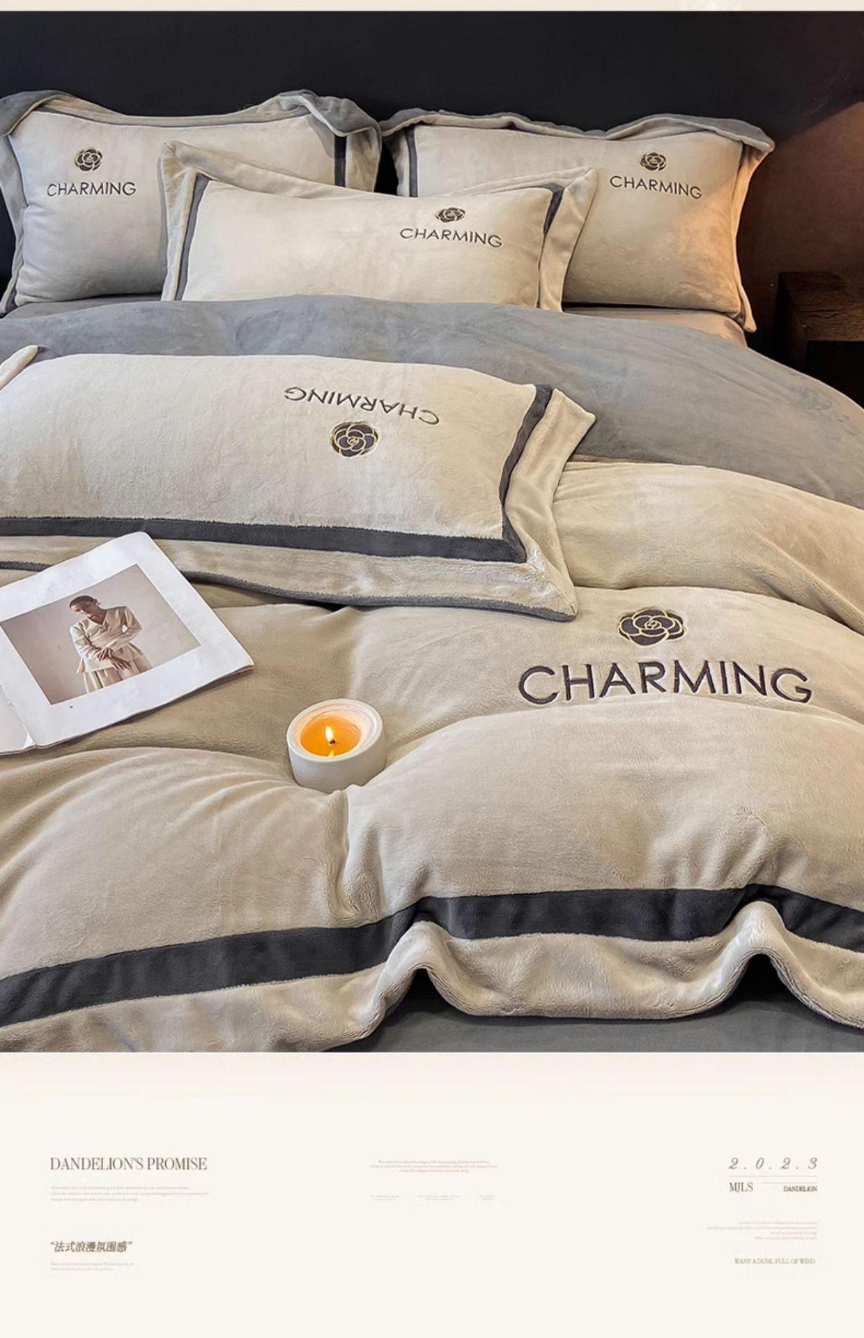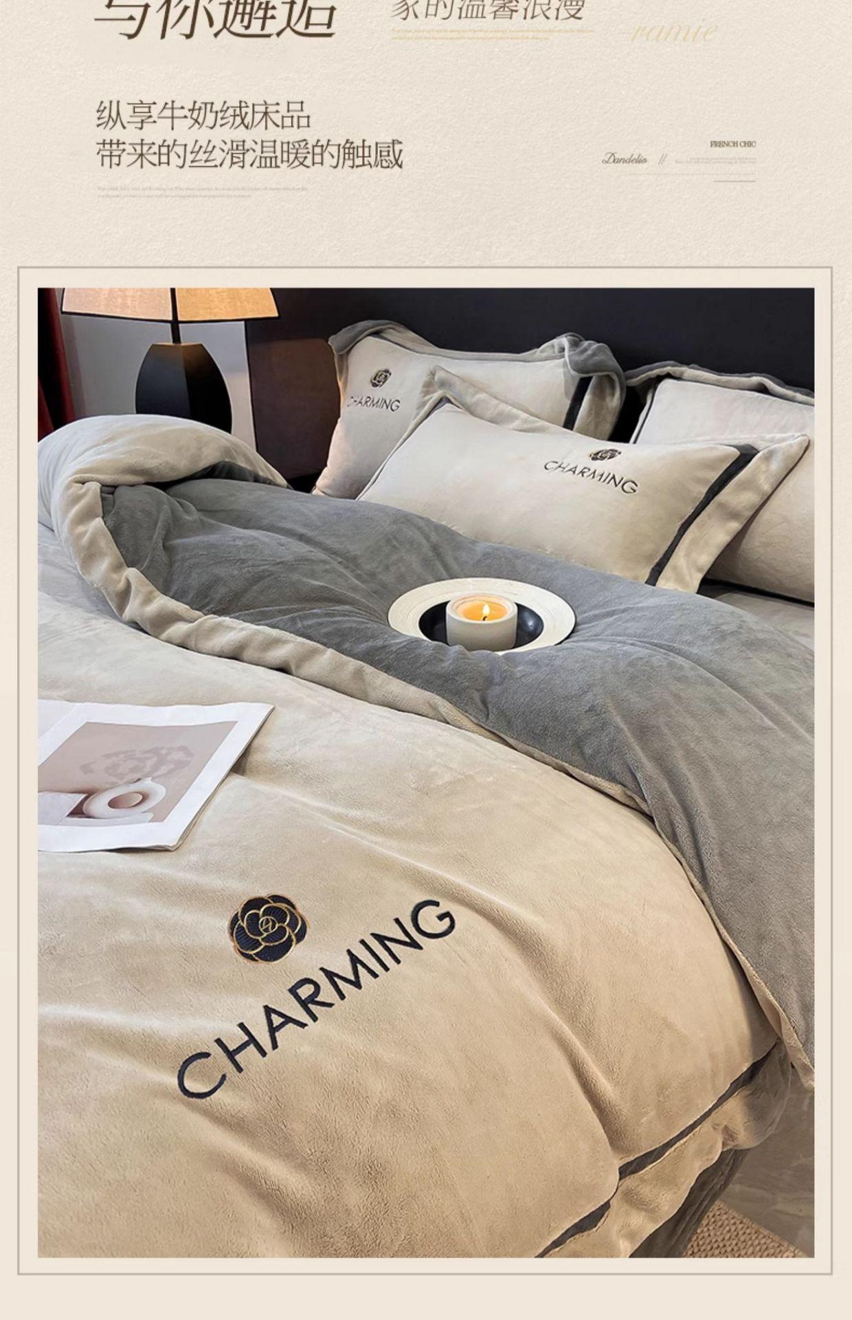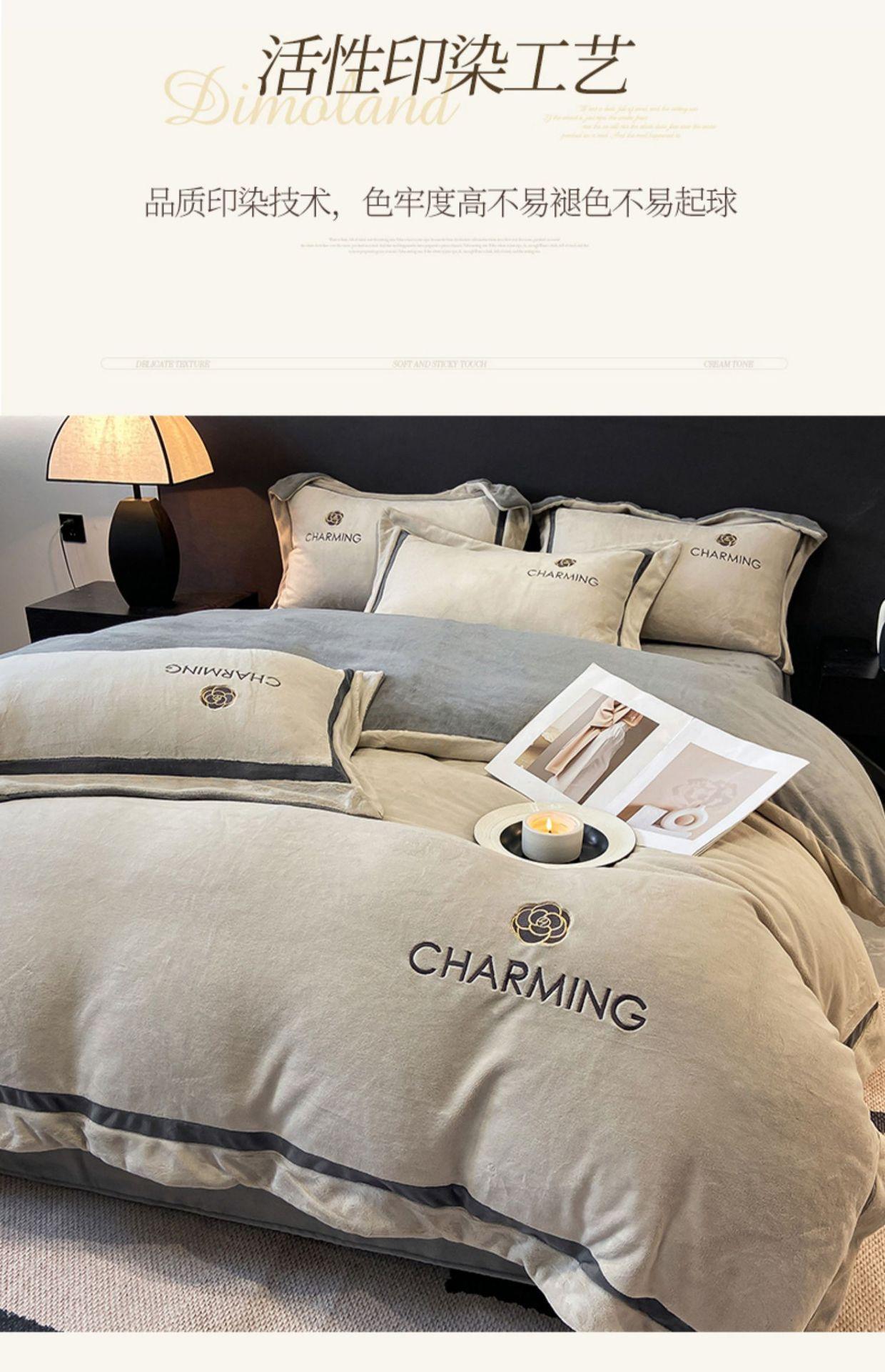 Juego de cuatro piezas de ropa de cama de terciopelo de leche terciopelo de leche invierno engrosado 2025 nuevo sábana de forro polar coral funda nórdica juego de tres piezas