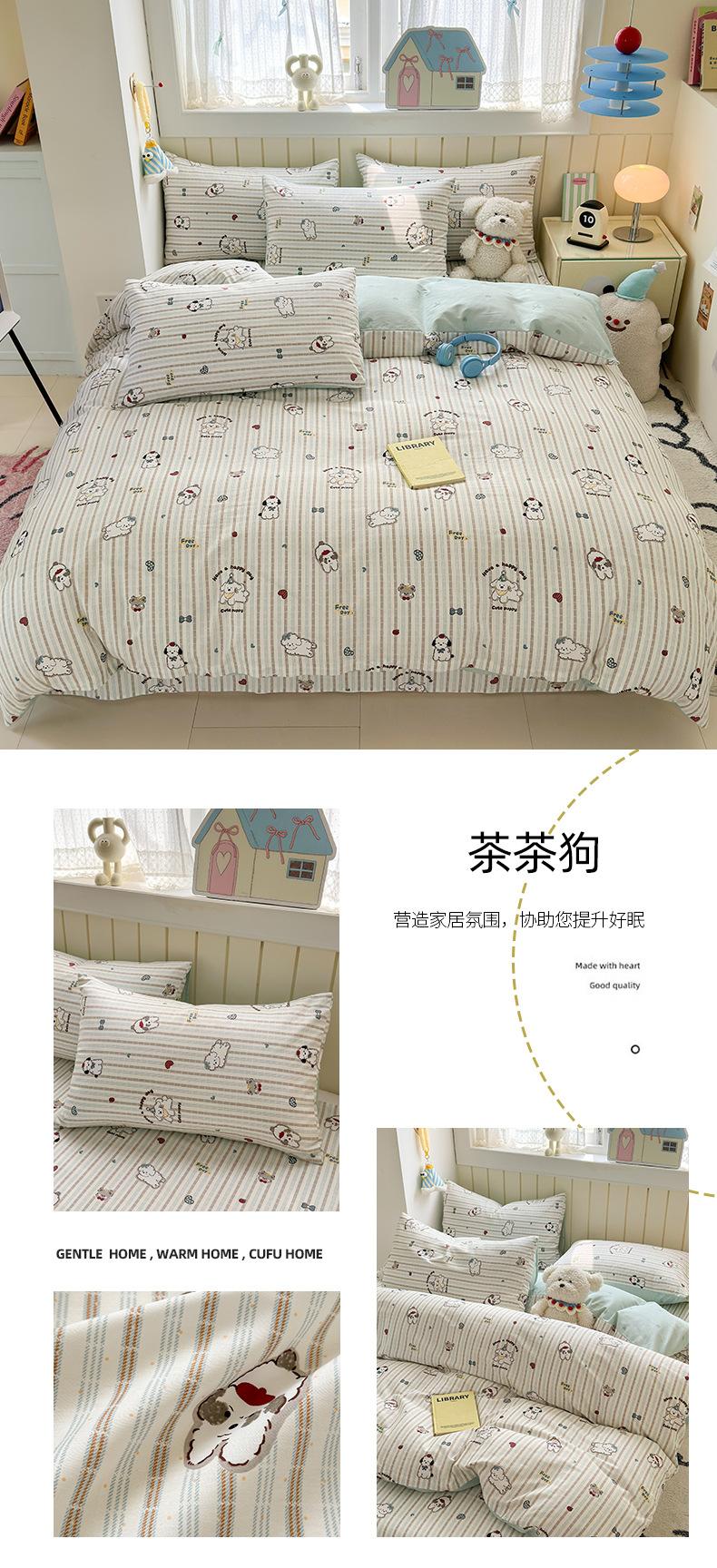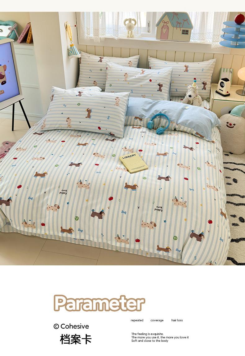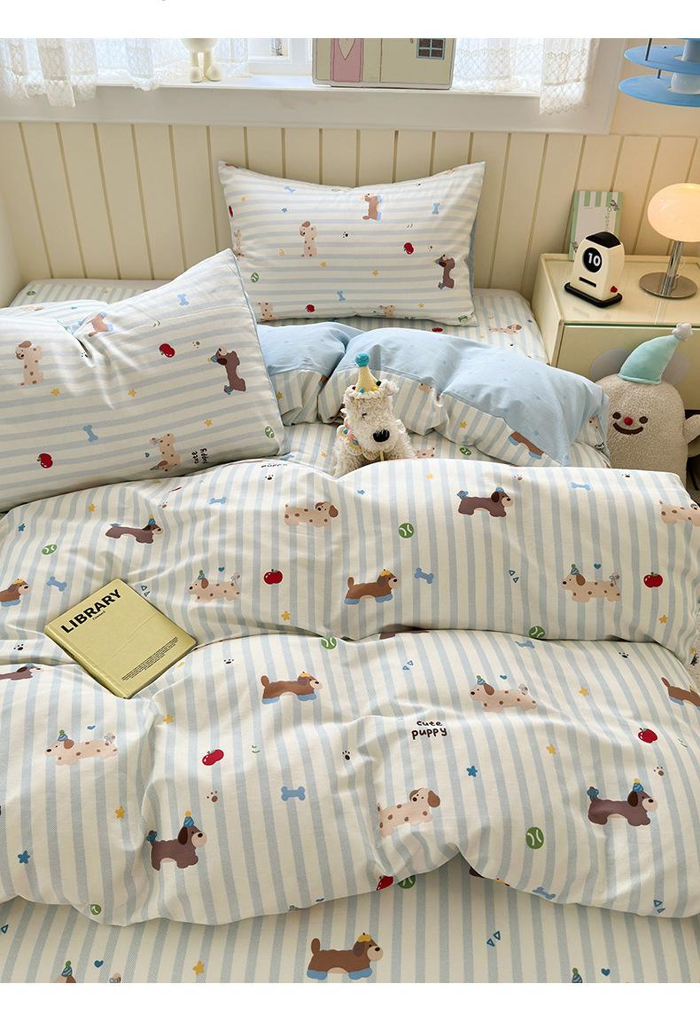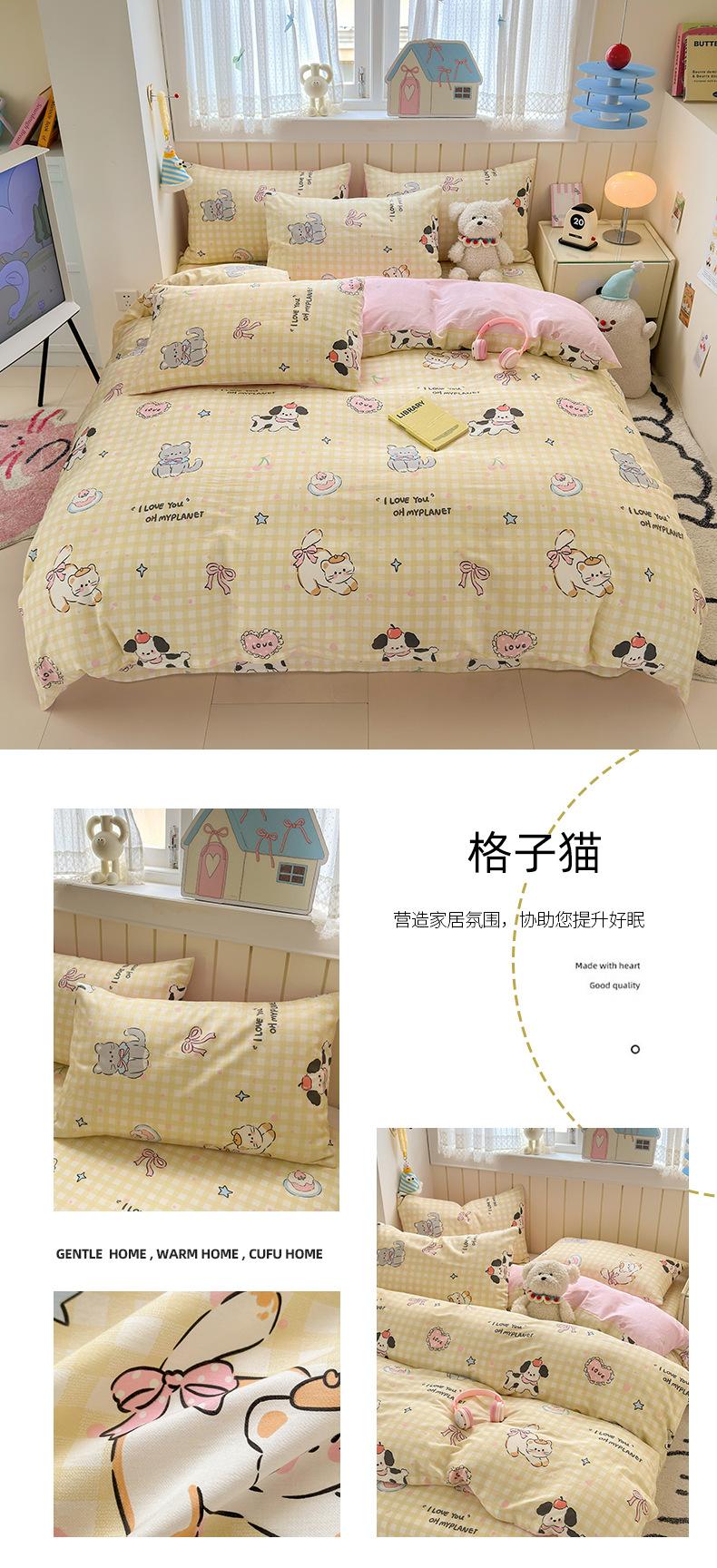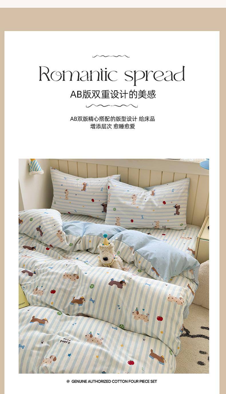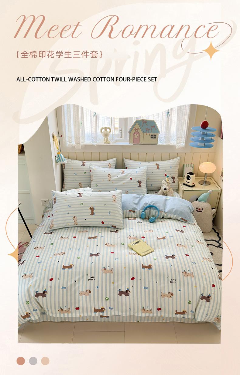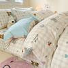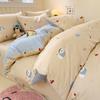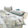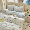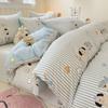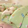 Set de cuatro piezas de algodón de dibujos animados Sarga Algodón puro Funda nórdica Sábana Dormitorio de estudiantes Juego de tres piezas Ropa de cama estampada