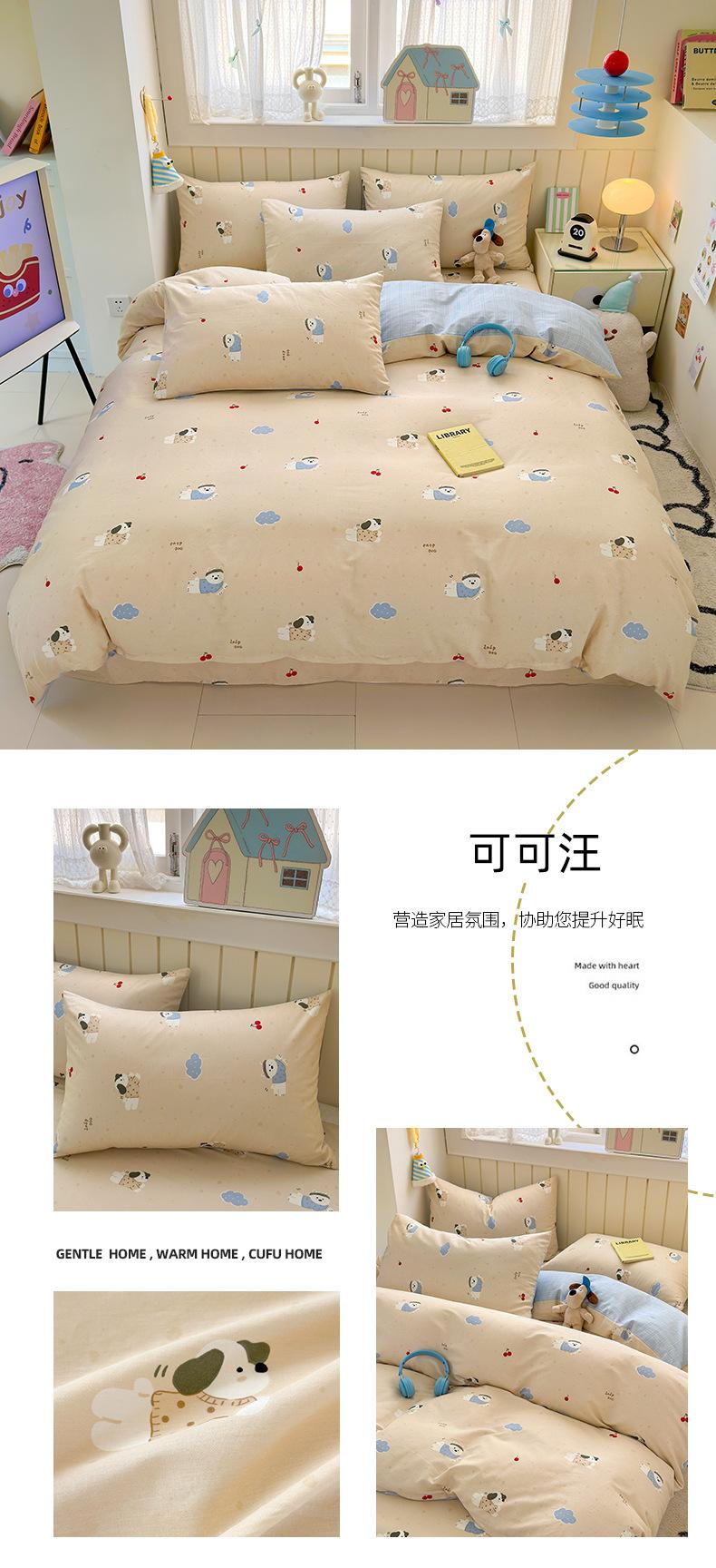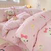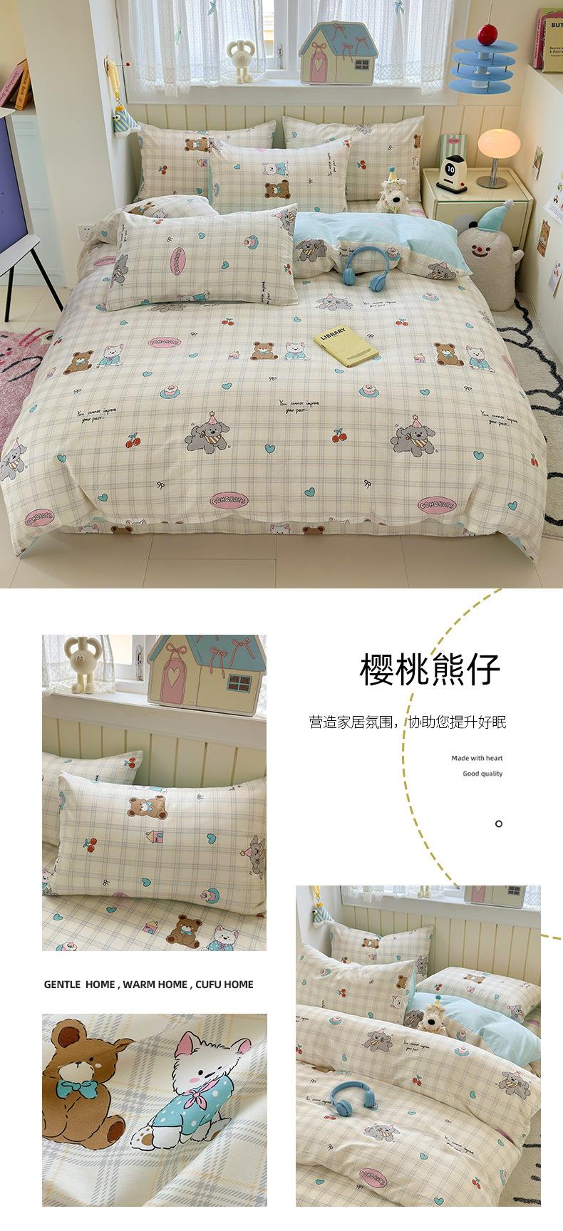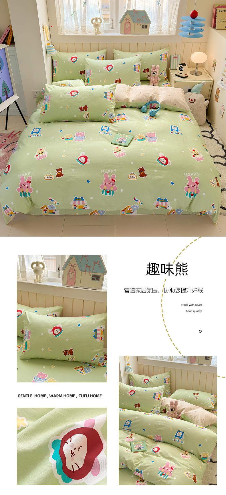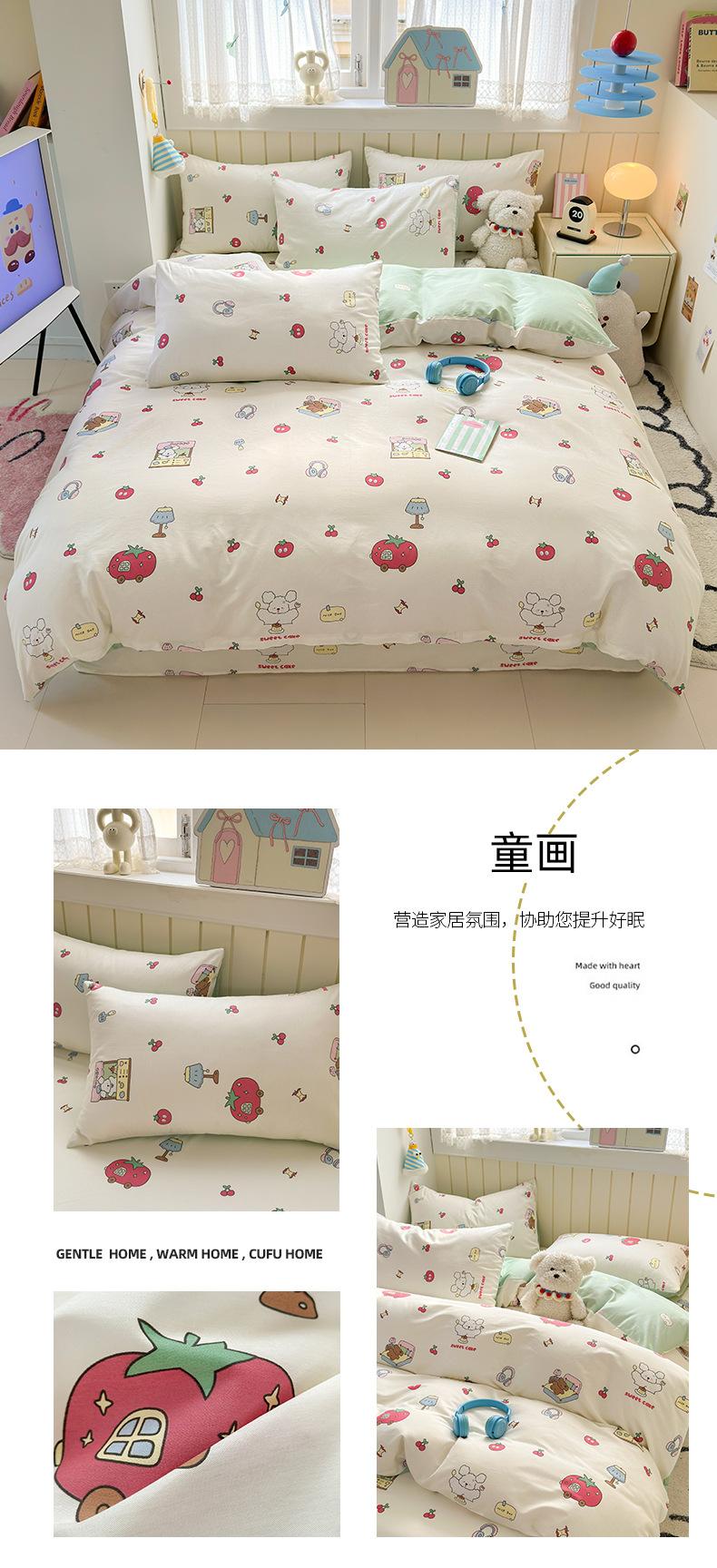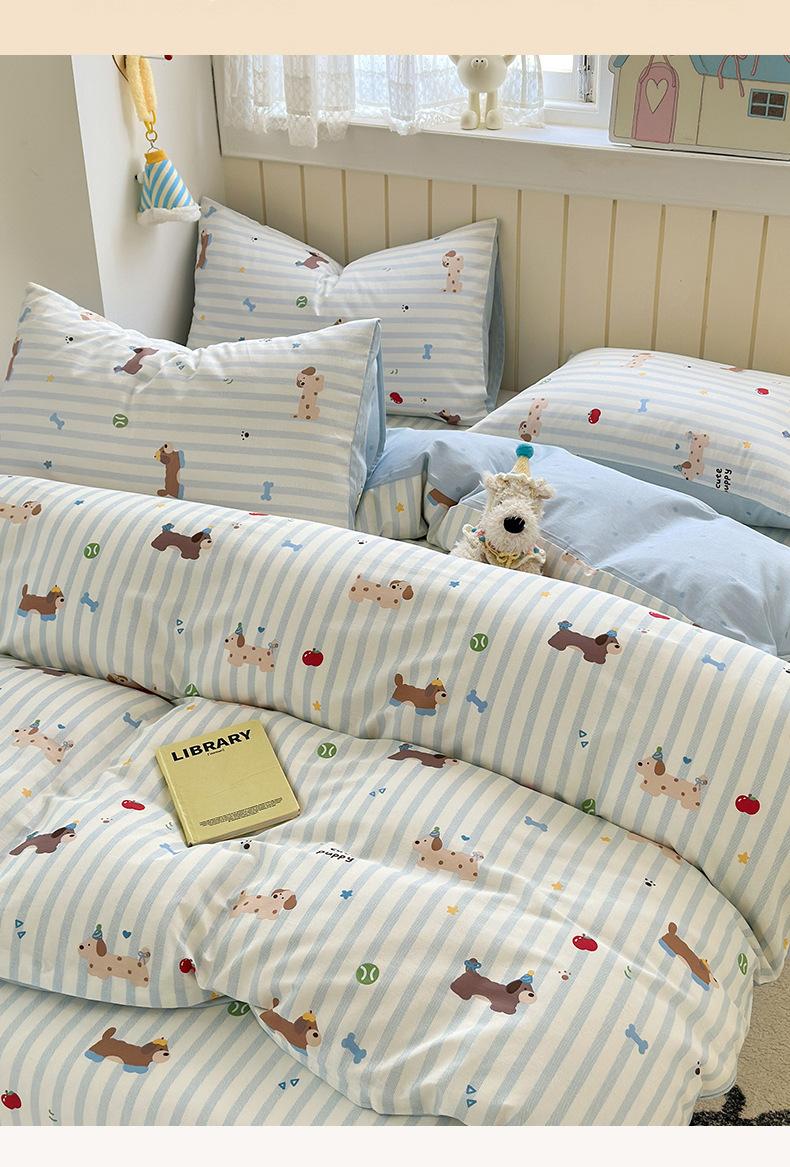 Set de cuatro piezas de algodón de dibujos animados Sarga Algodón puro Funda nórdica Sábana Dormitorio de estudiantes Juego de tres piezas Ropa de cama estampada