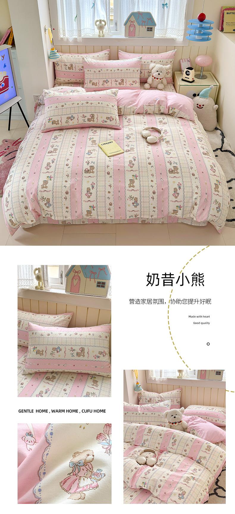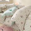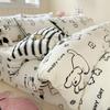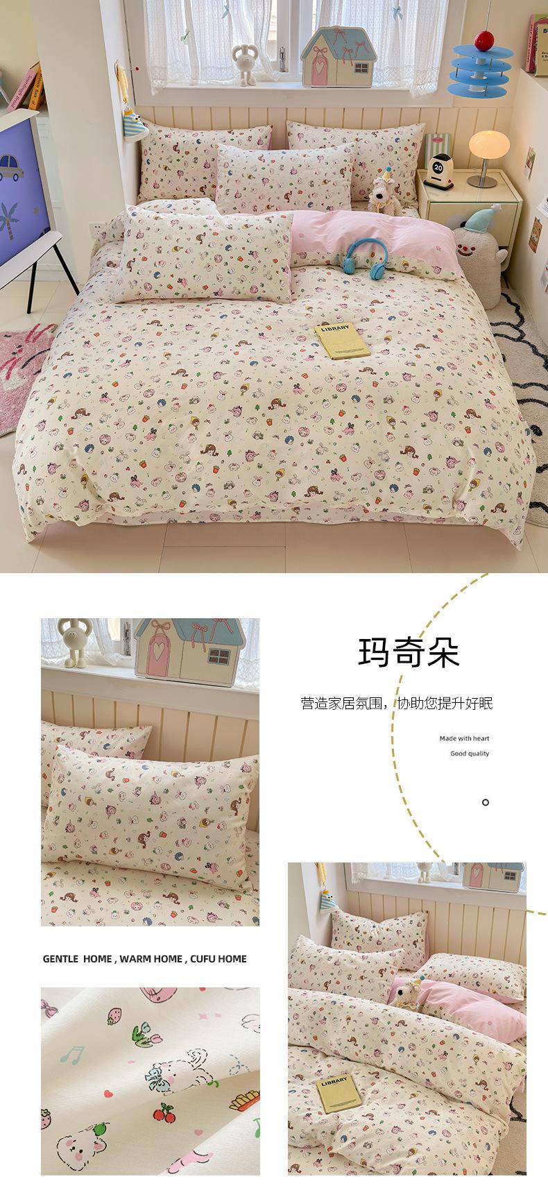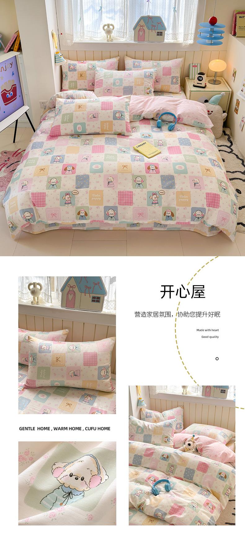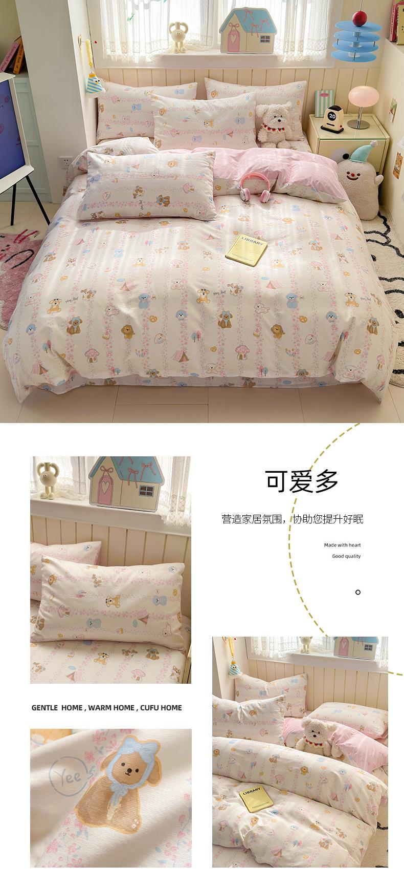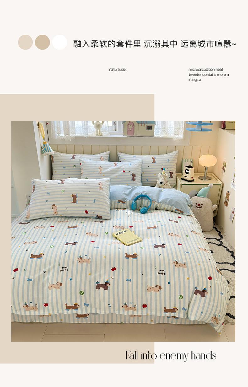 Set de cuatro piezas de algodón de dibujos animados Sarga Algodón puro Funda nórdica Sábana Dormitorio de estudiantes Juego de tres piezas Ropa de cama estampada