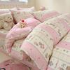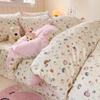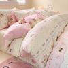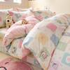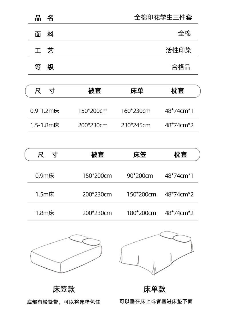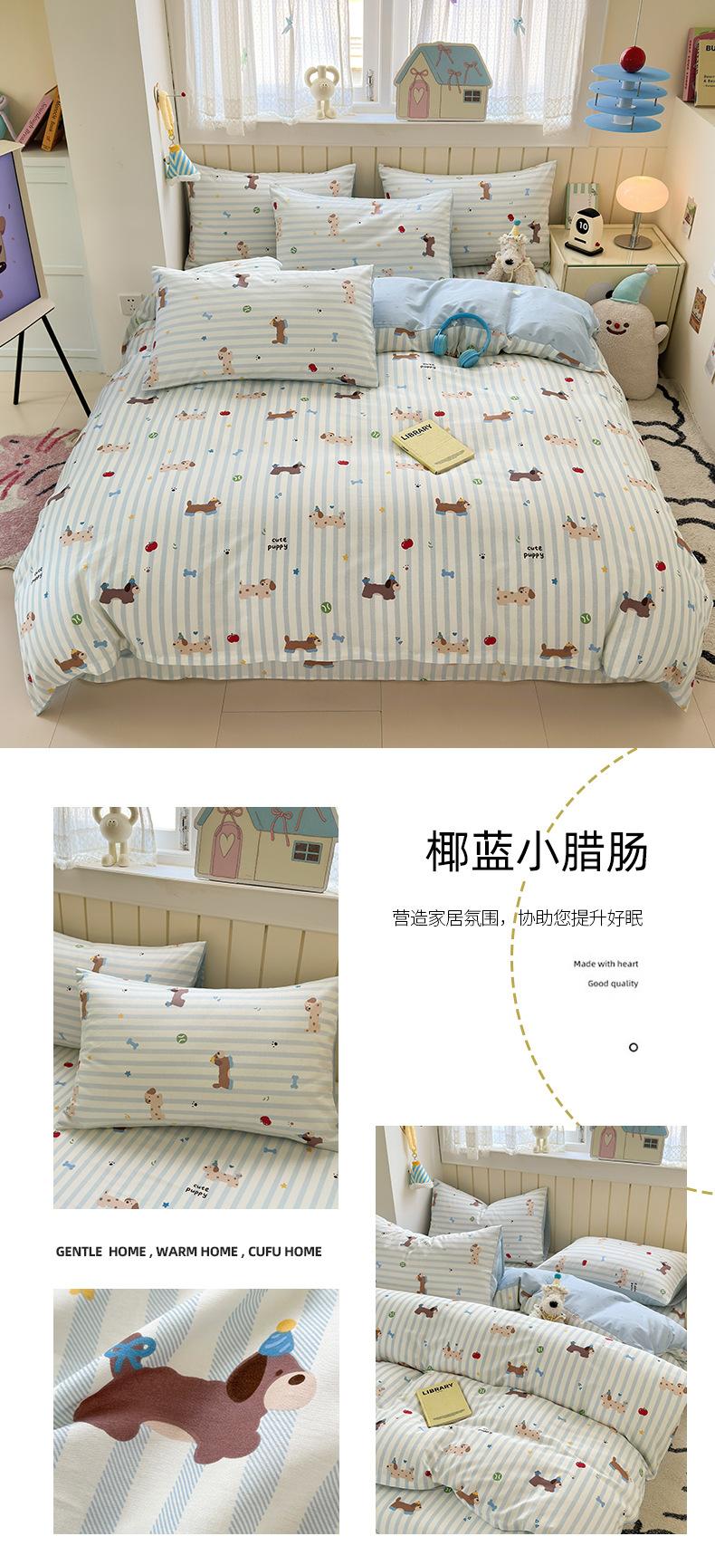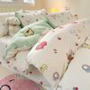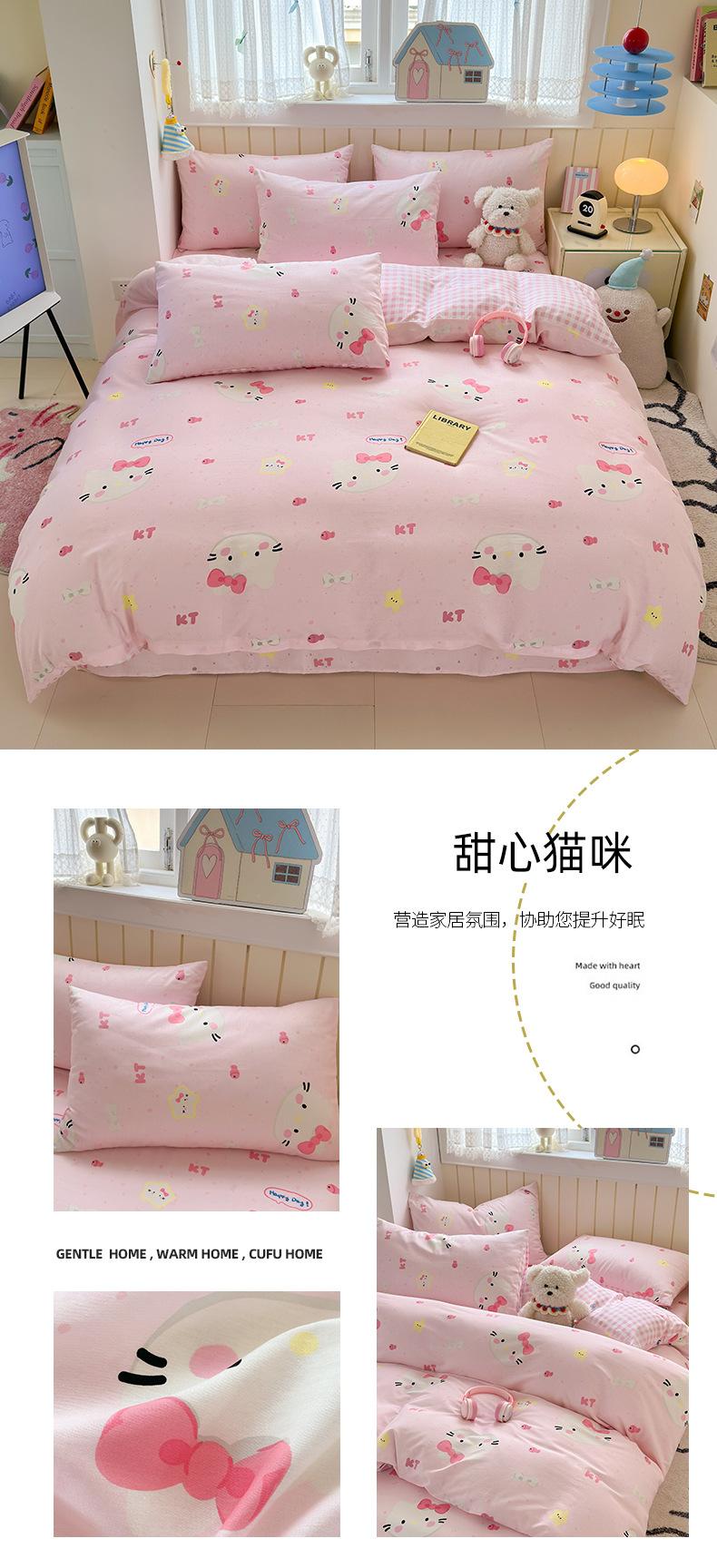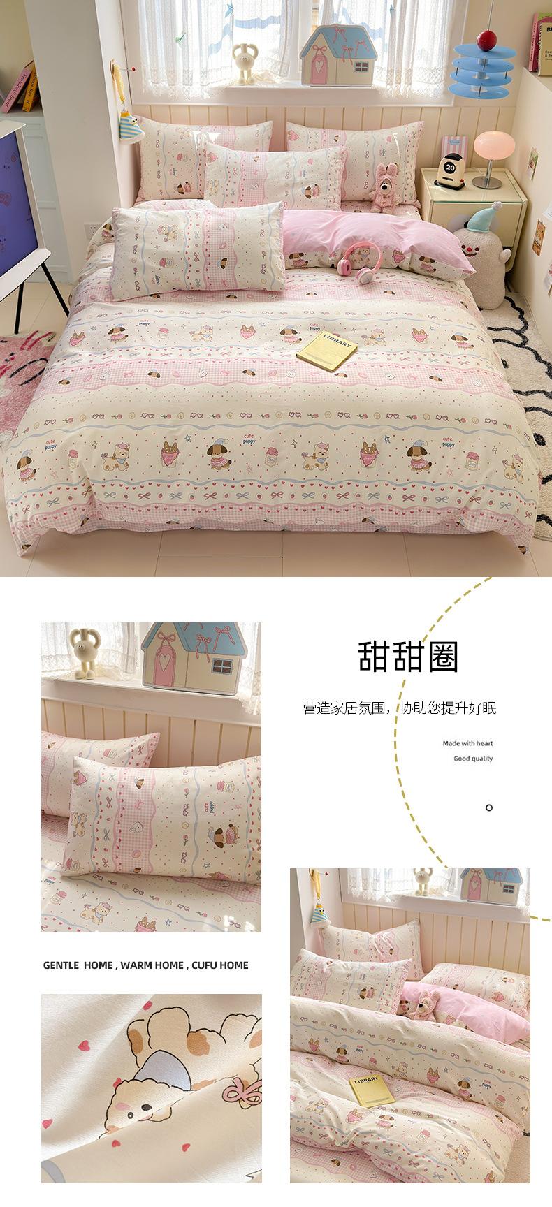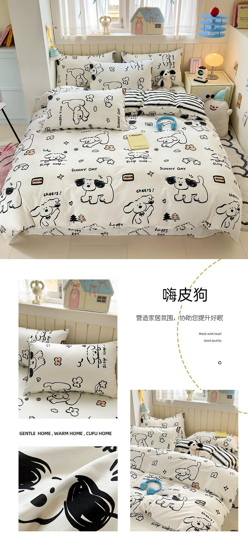 Set de cuatro piezas de algodón de dibujos animados Sarga Algodón puro Funda nórdica Sábana Dormitorio de estudiantes Juego de tres piezas Ropa de cama estampada