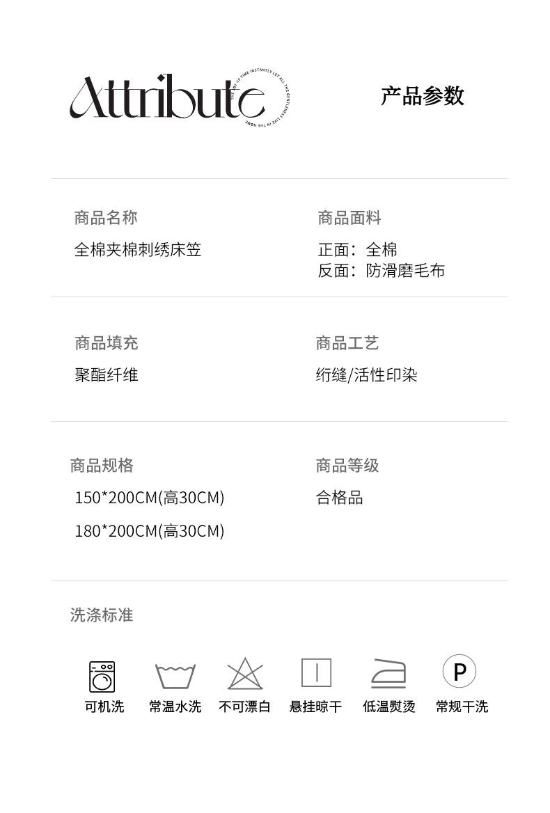 150*200*30cm single fitted sheet, 180*200*30cm single fitted sheet, A pair of embroidered quilted pillowcases ...