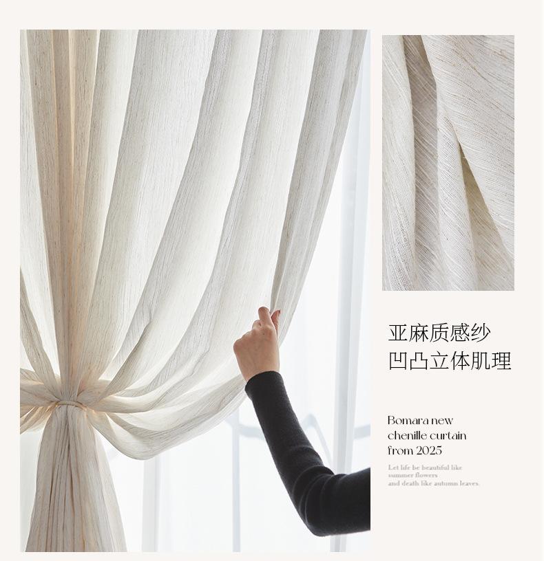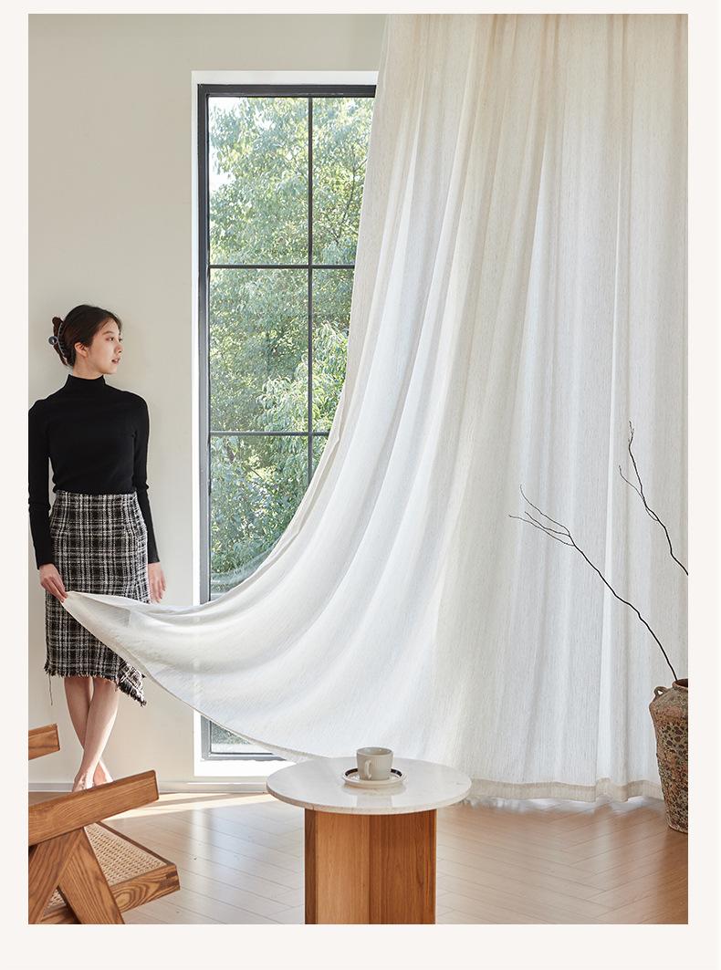 Cortina Transparente de Lino Estilo Rústico 2025 para Balcón Ventana Mirador, Filtrado de Luz pero No Transparente, Tela para Cortina Atmosférica de Zhejiang
