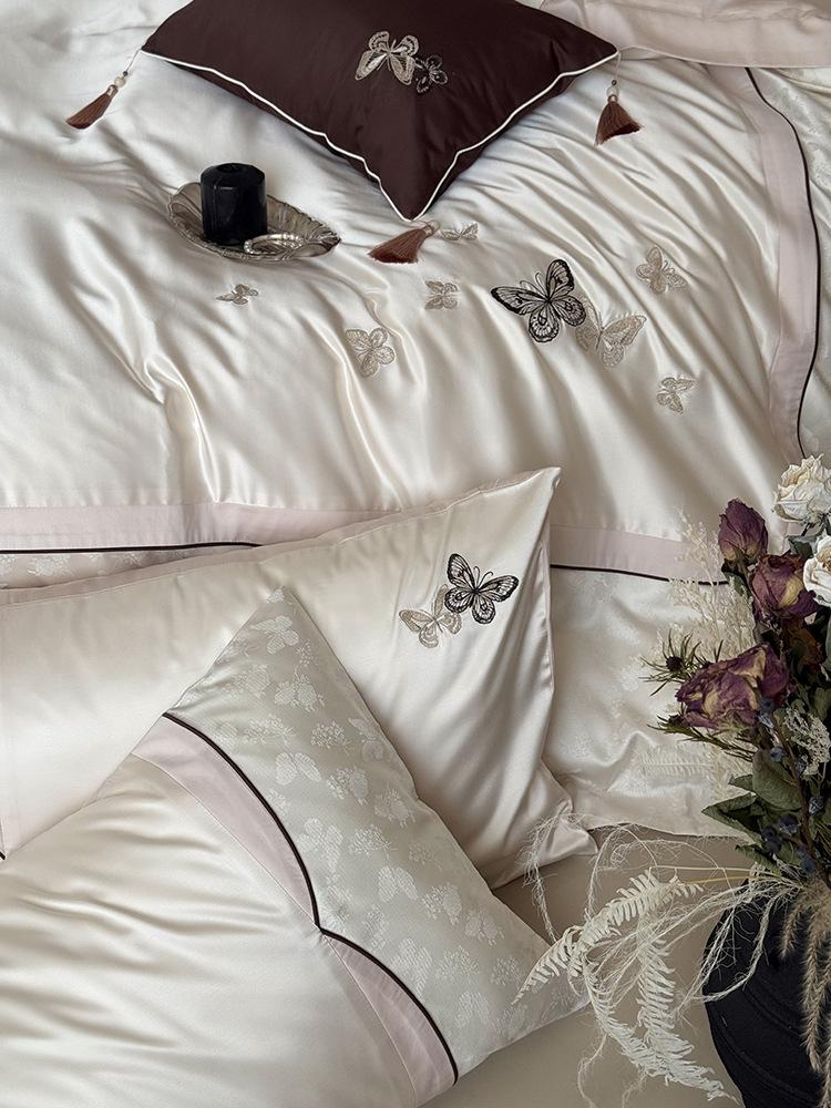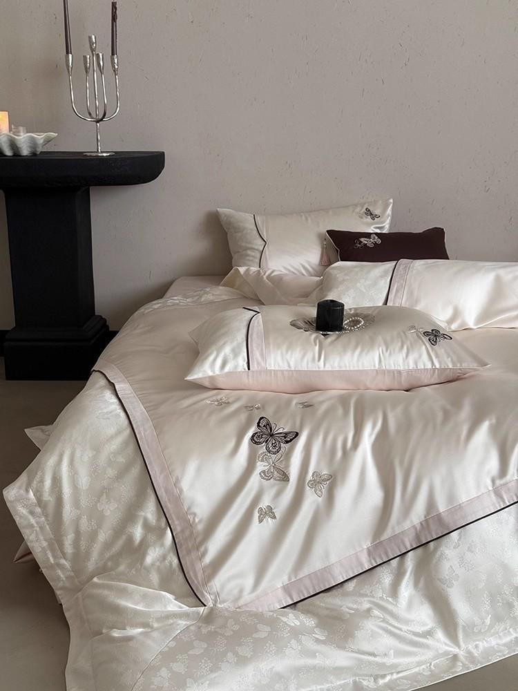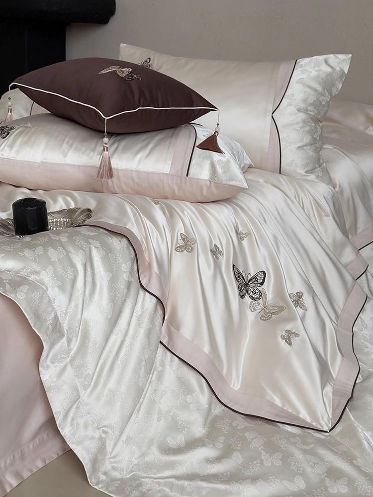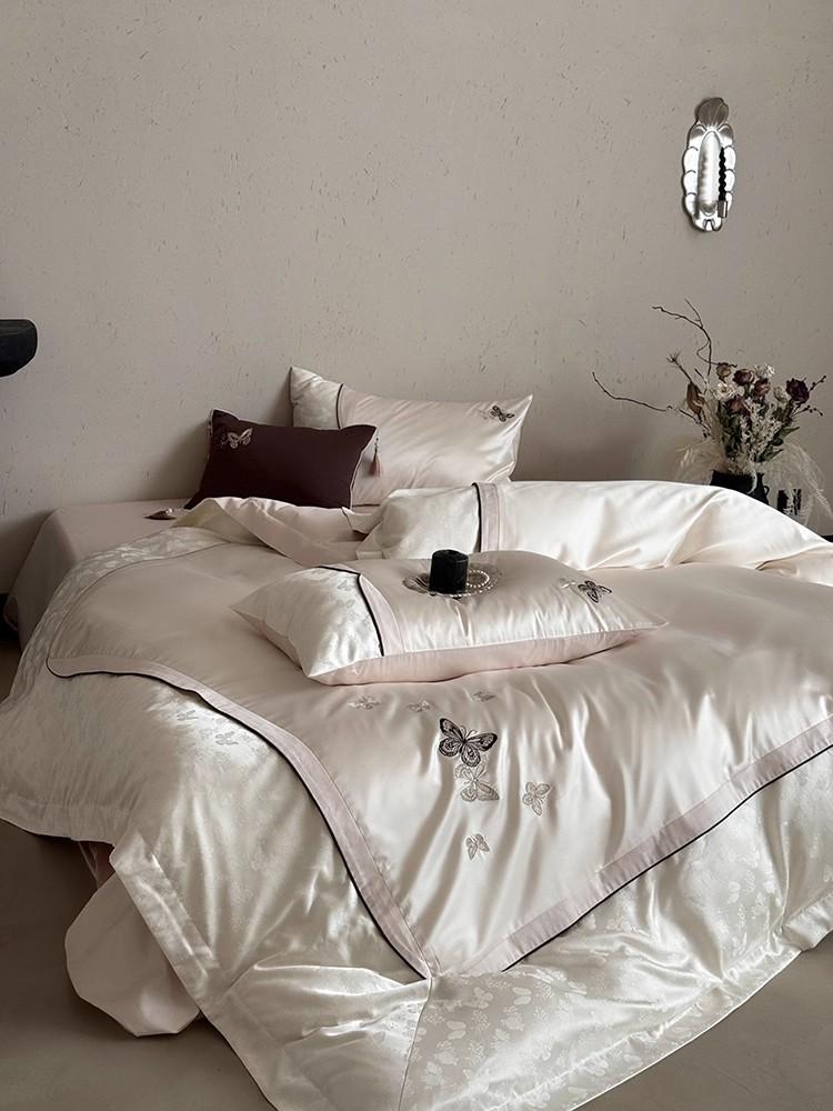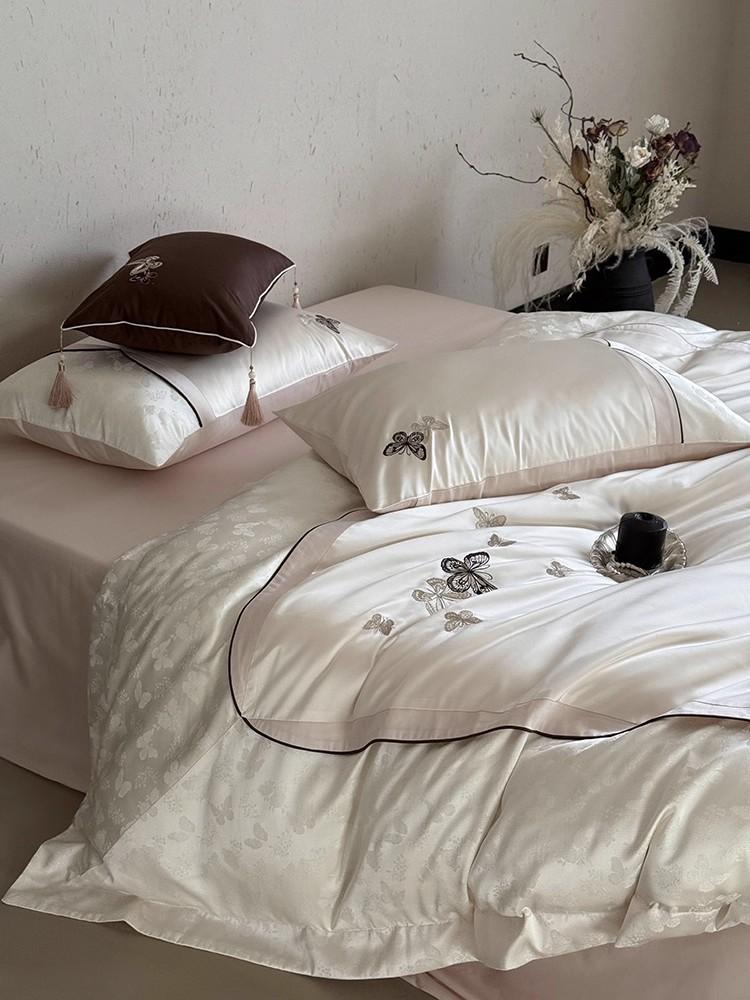 Set de cuatro piezas de algodón de fibra larga 100s de alta gama de lujo ligero Ropa de cama bordada de algodón puro Algodón puro Sábana de 1.8m Funda nórdica