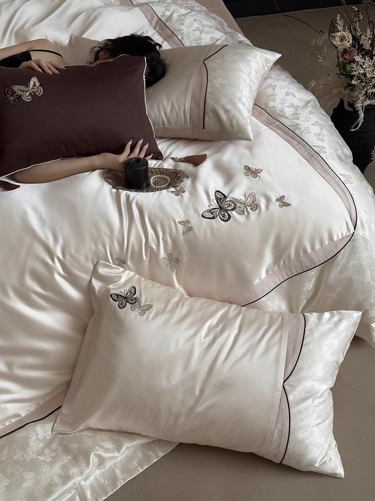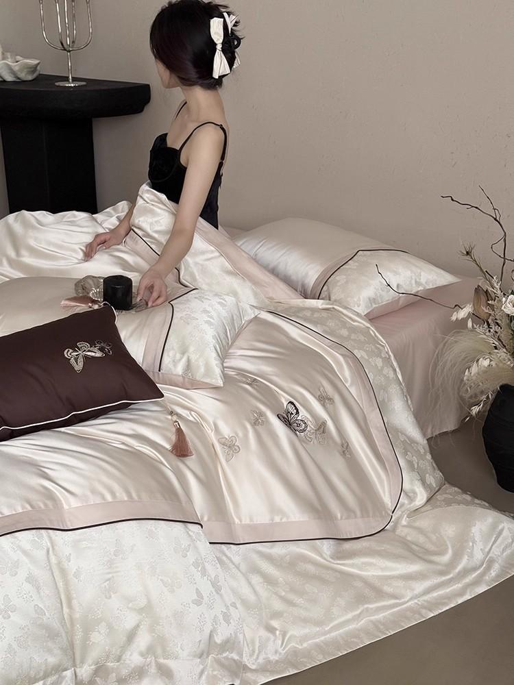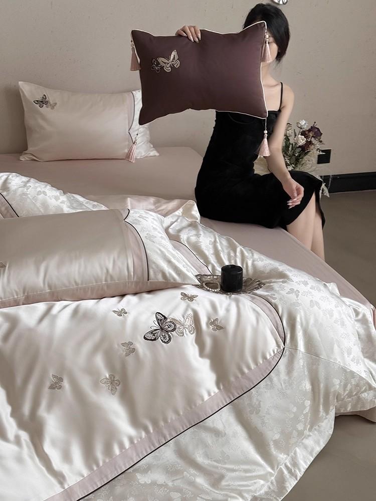 Compra Set de cuatro piezas de algodón de fibra larga 100s de alta gama de lujo ligero Ropa de cama bordada de algodón puro Algodón puro Sábana de 1.8m Funda nórdica al por mayor en Joom.pro