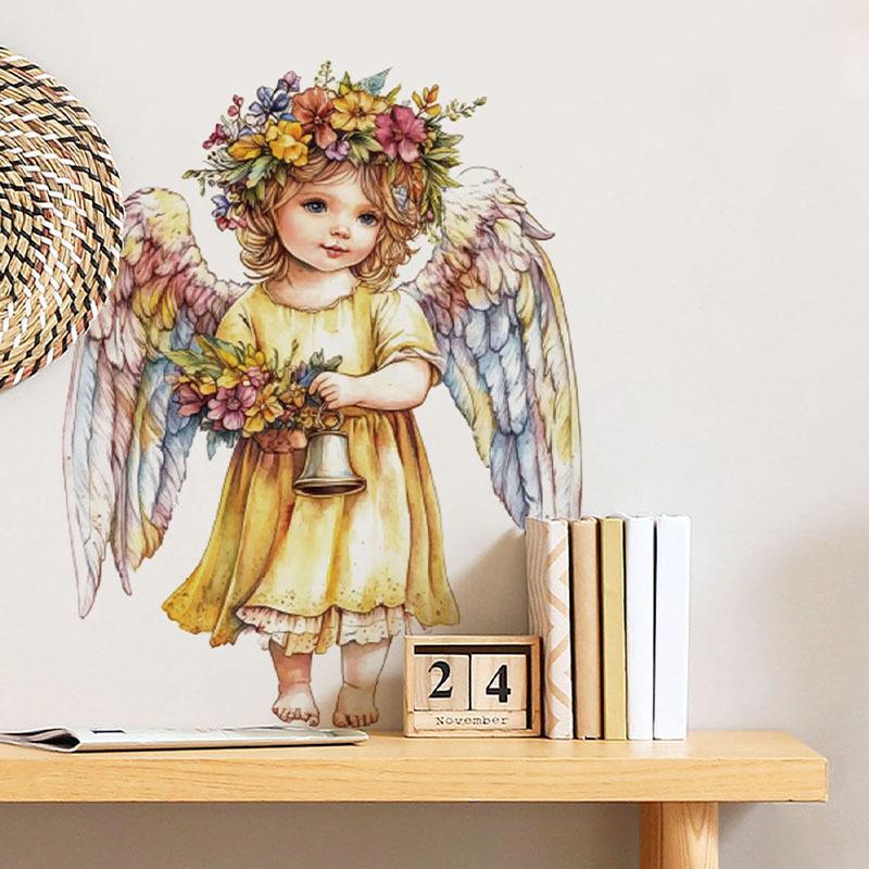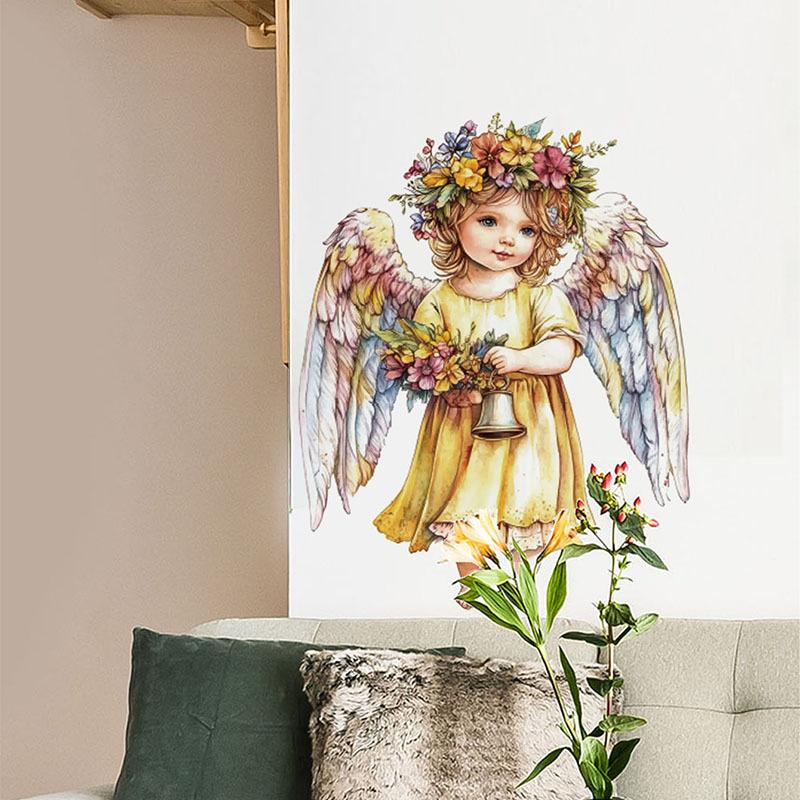 Ángel lindo transfronterizo con corona pegatina de pared para dormitorio, sala de estar, cocina, divertida pegatina de decoración para el hogar, PVC autoadhesivo