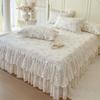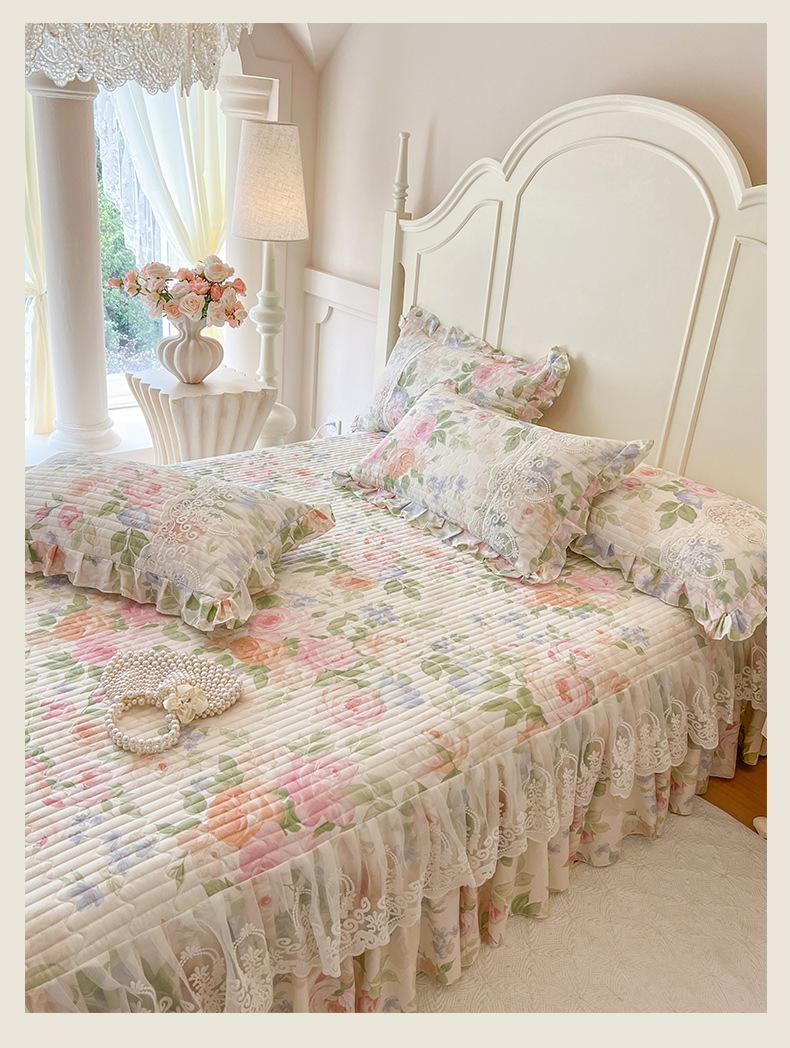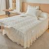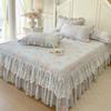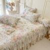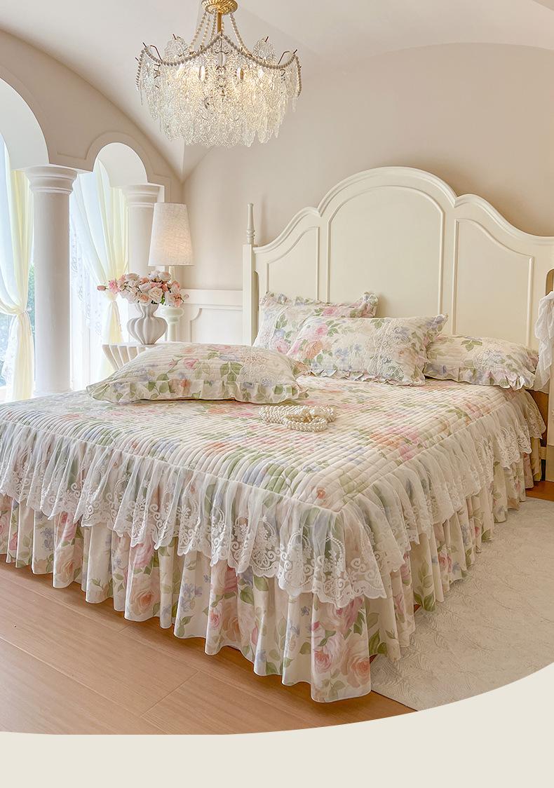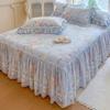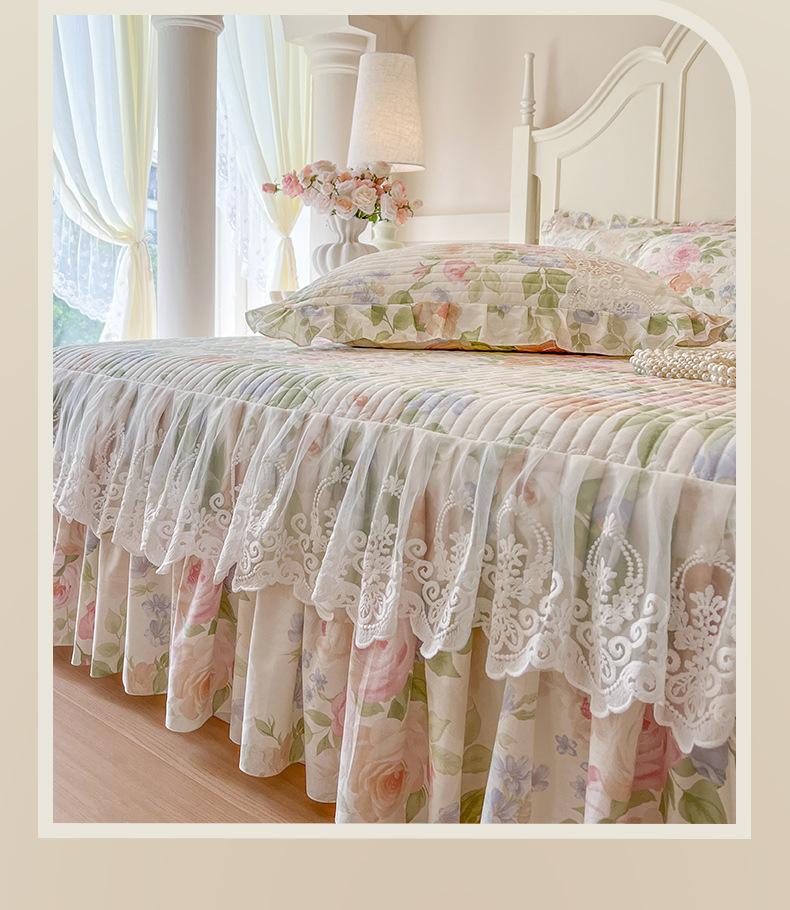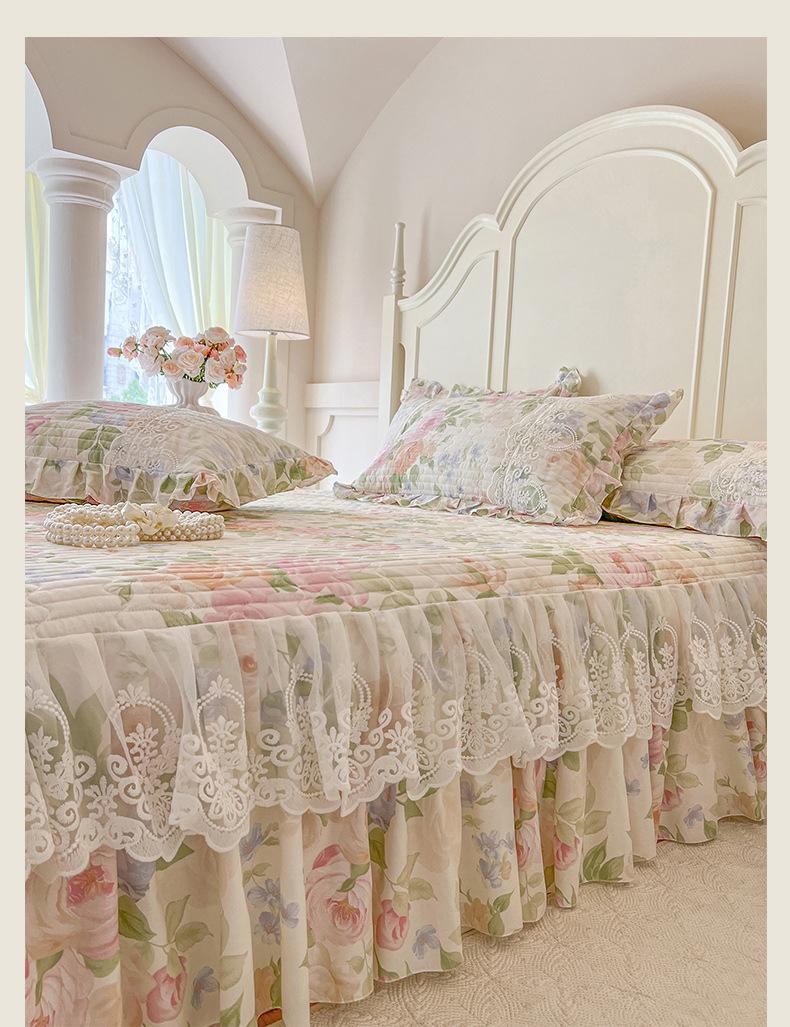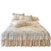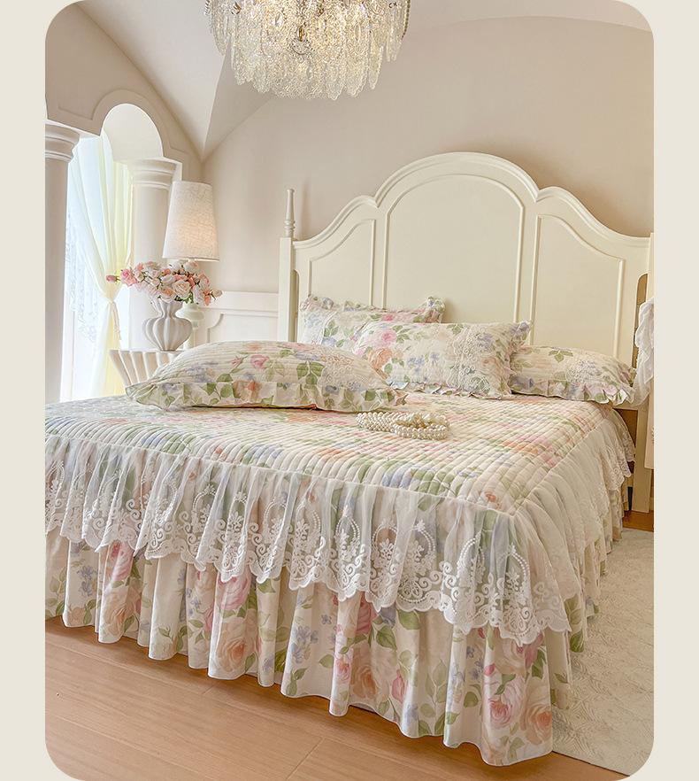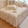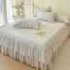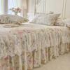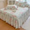 Falda de Cama Acolchada de Encaje de Algodón Puro con Estampado Floral Estilo Princesa Sábana Individual de Una Pieza con Volante Colcha Universal para las Cuatro Estaciones Cubrevolante de Cama