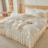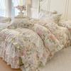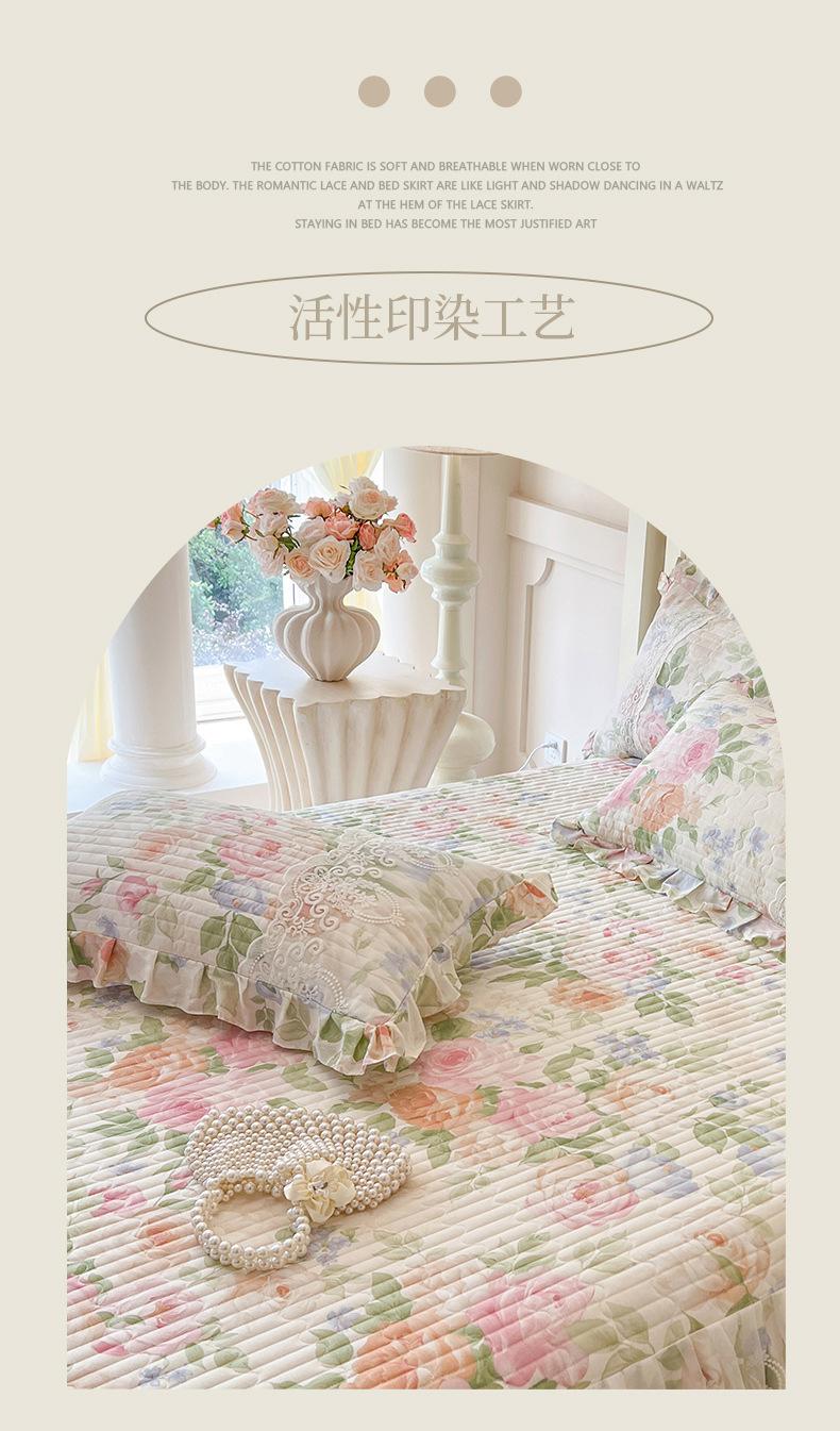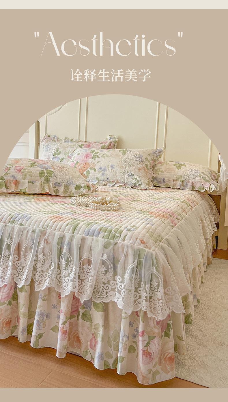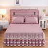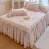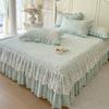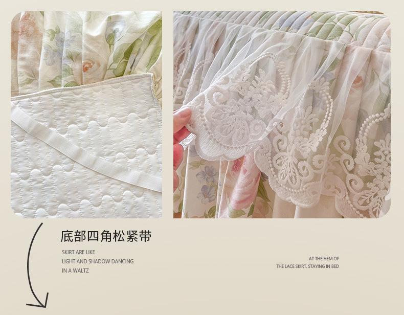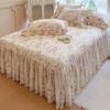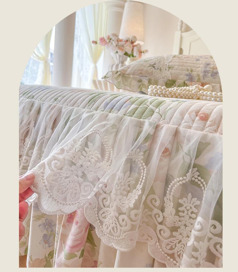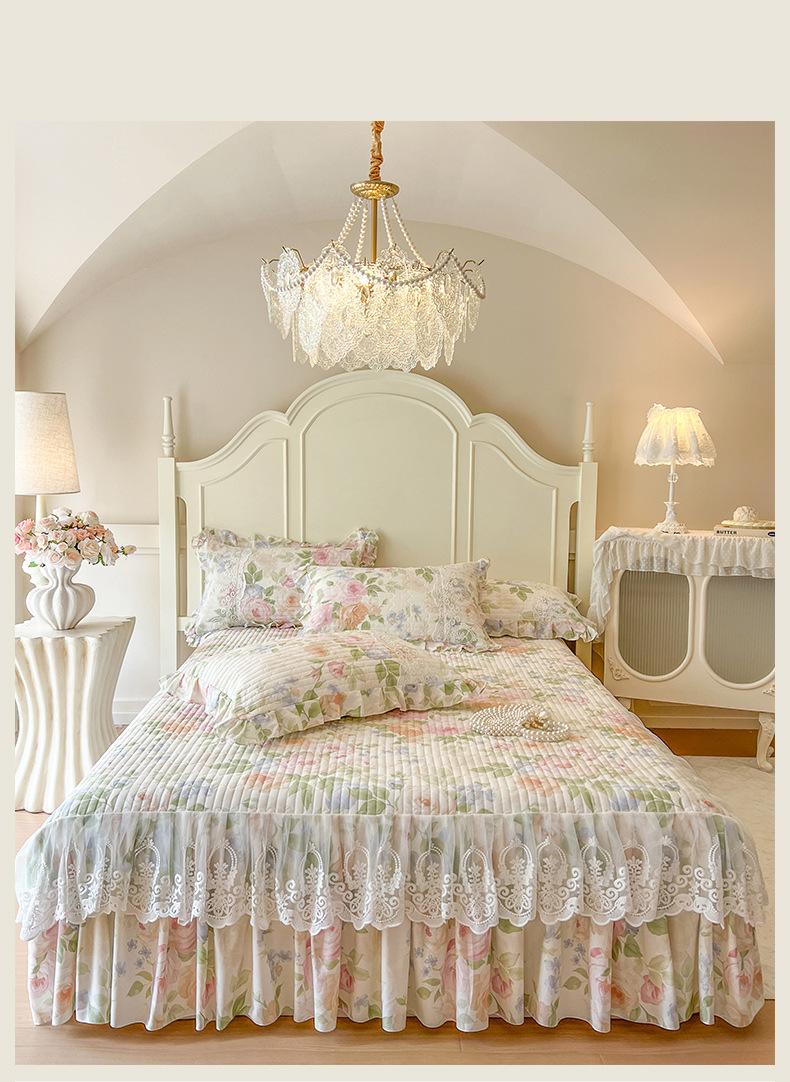Falda de Cama Acolchada de Encaje de Algodón Puro con Estampado Floral Estilo Princesa Sábana Individual de Una Pieza con Volante Colcha Universal para las Cuatro Estaciones Cubrevolante de Cama