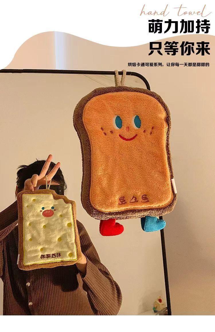 Lindo Toalla de Mano Tostada Colgante Absorbente Engrosada Cocina Baño Pañuelo Toalla Dibujo Animado Horneado Pequeña Toalla Cuadrada