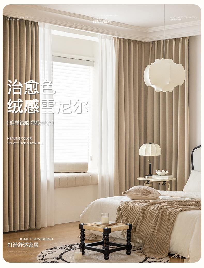 Cortina Francesa Dormitorio Estilo Crema Avanzado Sombreado y Parasol Sala de Estar Balcón Ventana Mirador Shaoxing Tela de Cortina Simple