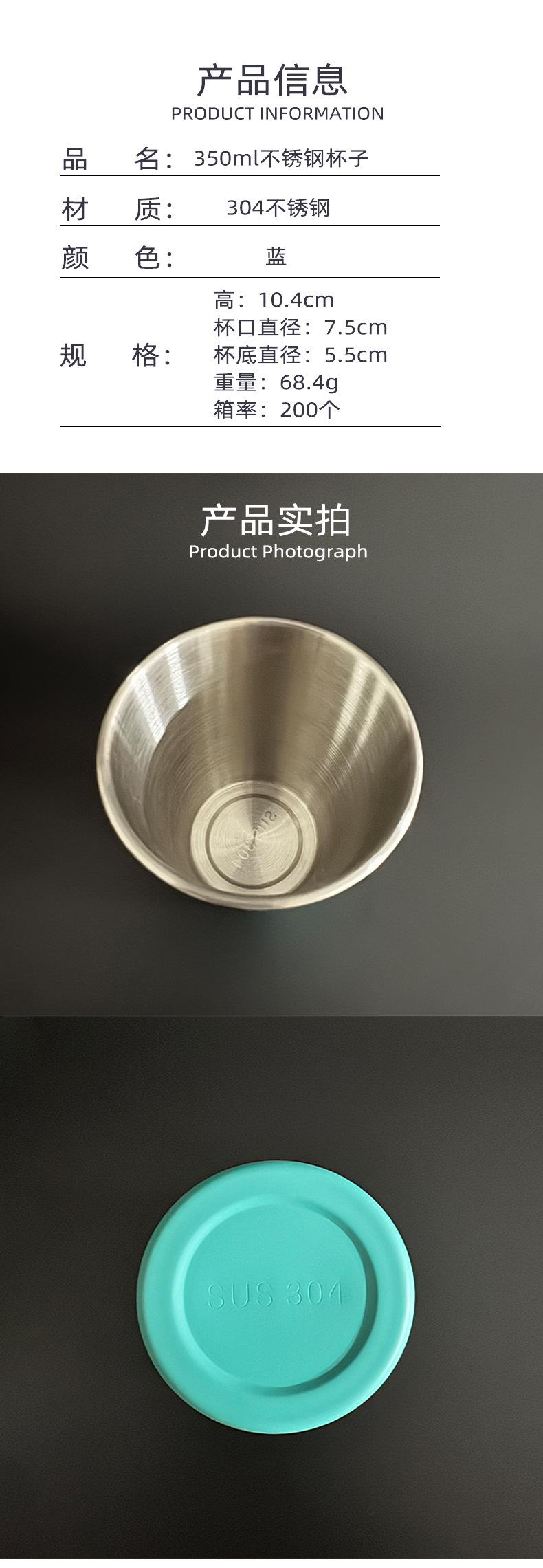 Taza de jugo de acero inoxidable 304 de grado alimenticio de 350 ml transfronteriza, taza para bebida fría, taza para café cerveza, taza de una sola capa con borde enrollado