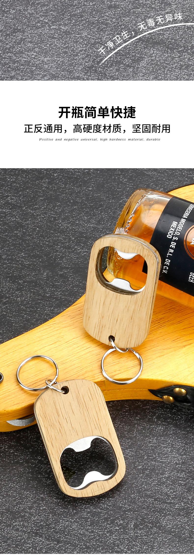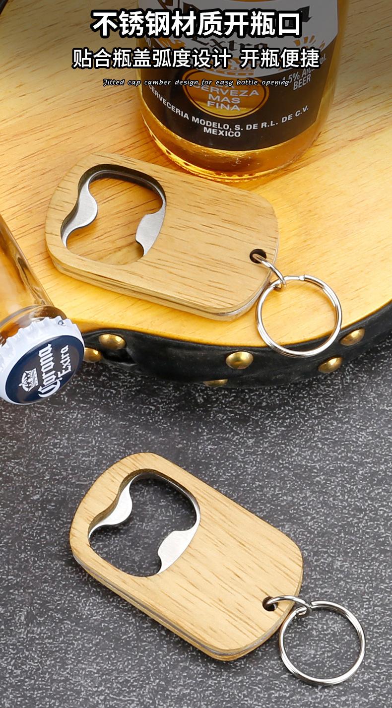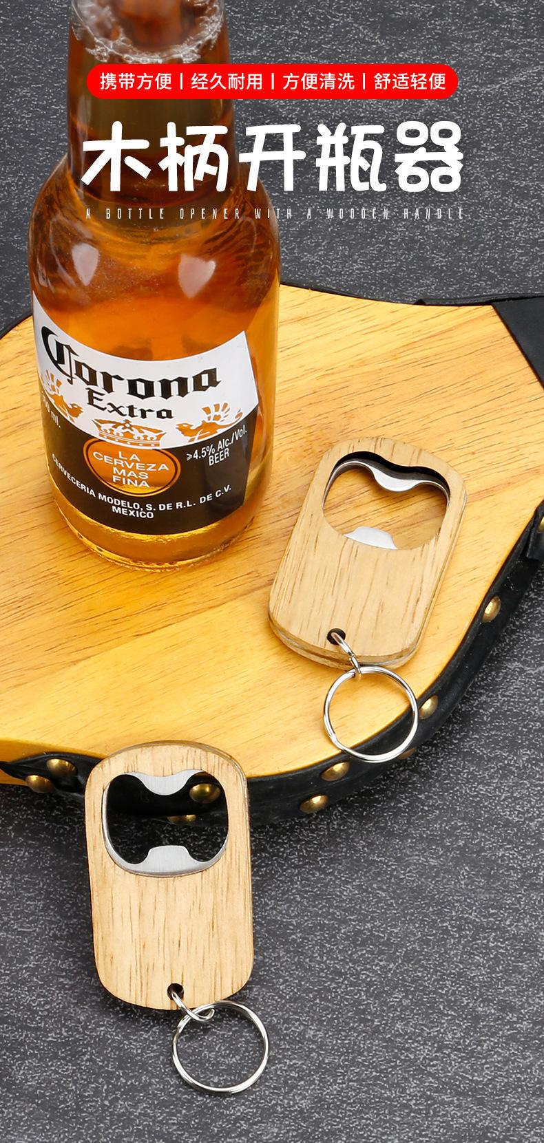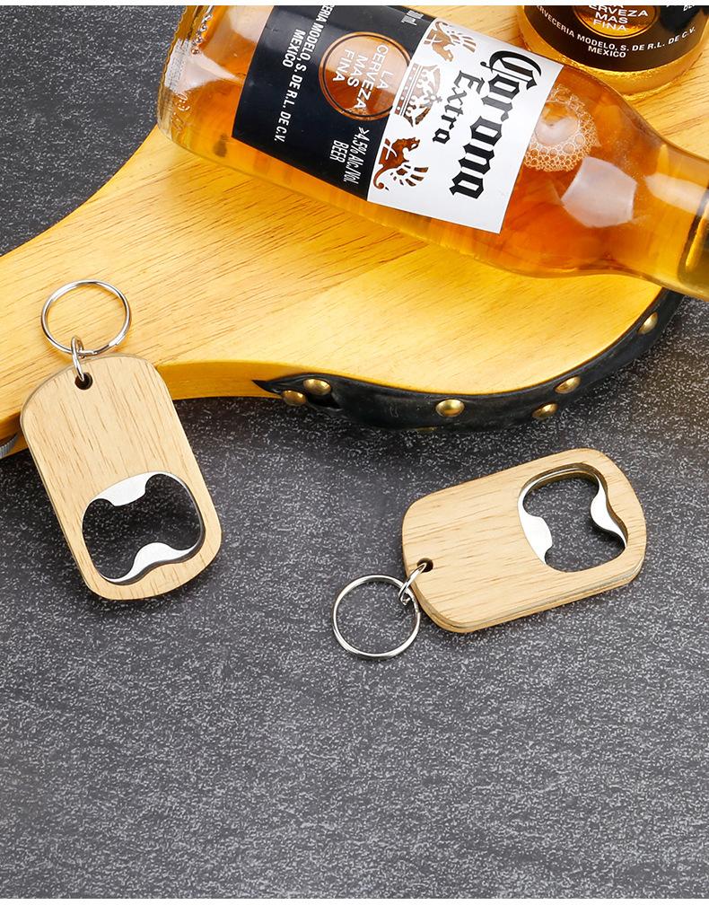 Abridor de Botellas Portátil con Mango de Madera y Llavero, Abridor de Botellas Compacto, Abridor de Cerveza Pequeño de Madera, Se Puede Grabar