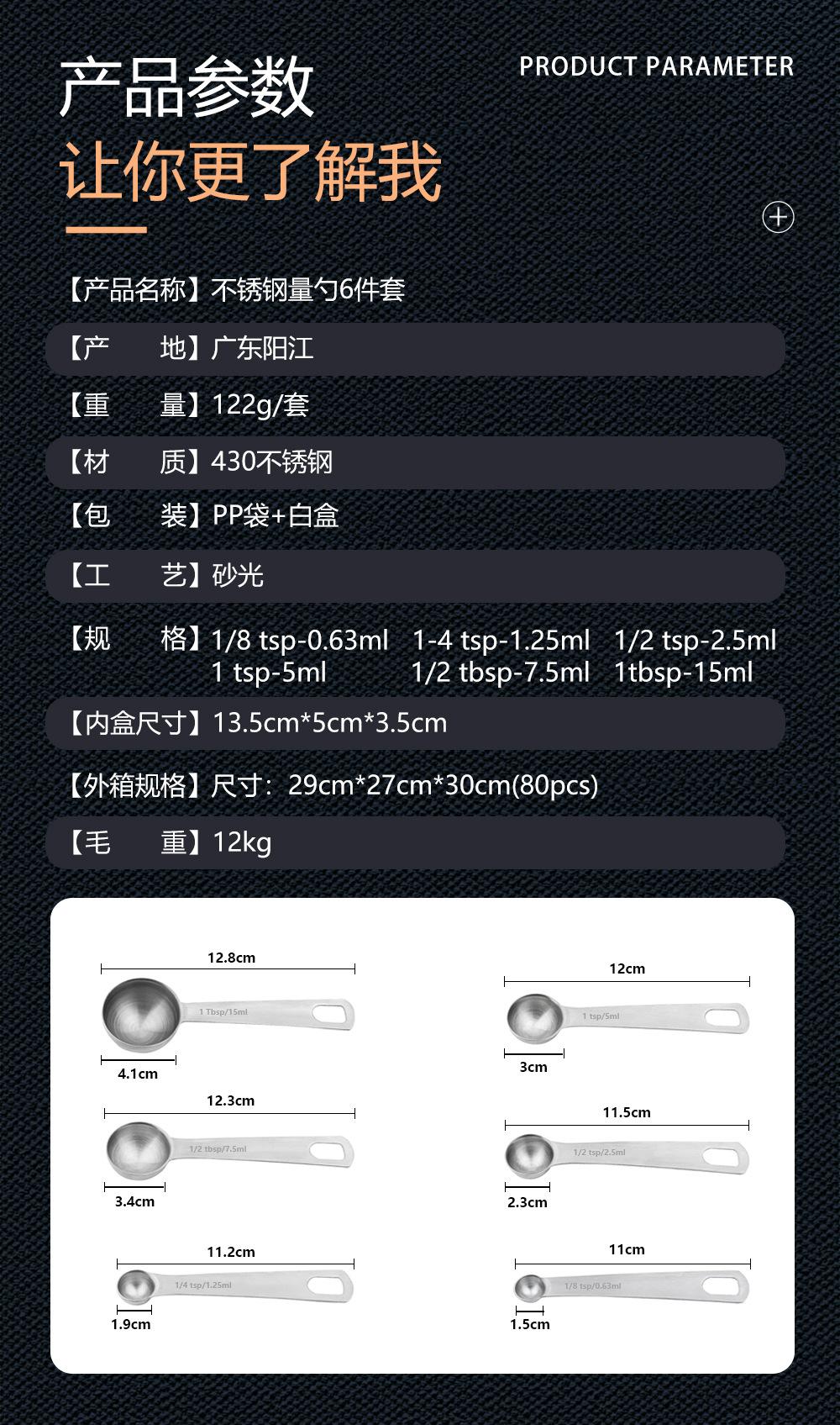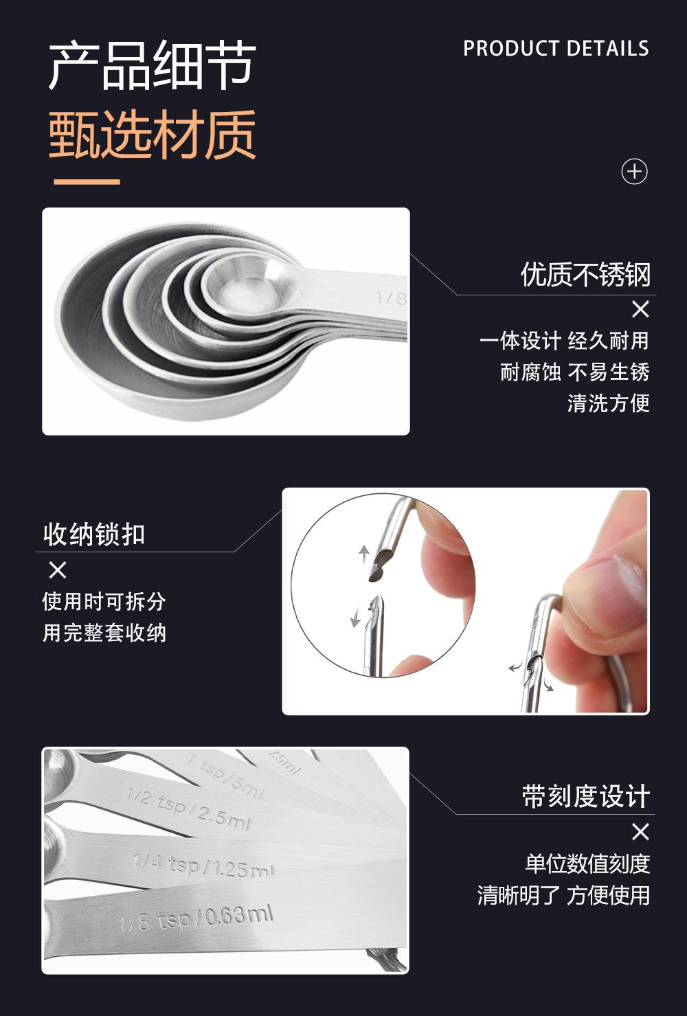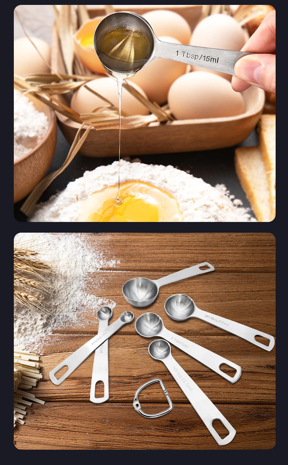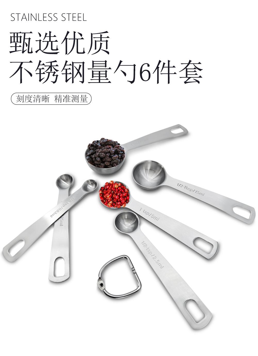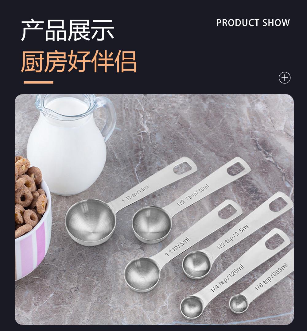 Cuchara Medidora Redonda de Acero Inoxidable Transfronteriza Juego de 6 Piezas Báscula para Hornear Cuchara Medidora de Condimentos Cuchara Medidora 430 Juego de Cucharas para Cocinar En Stock