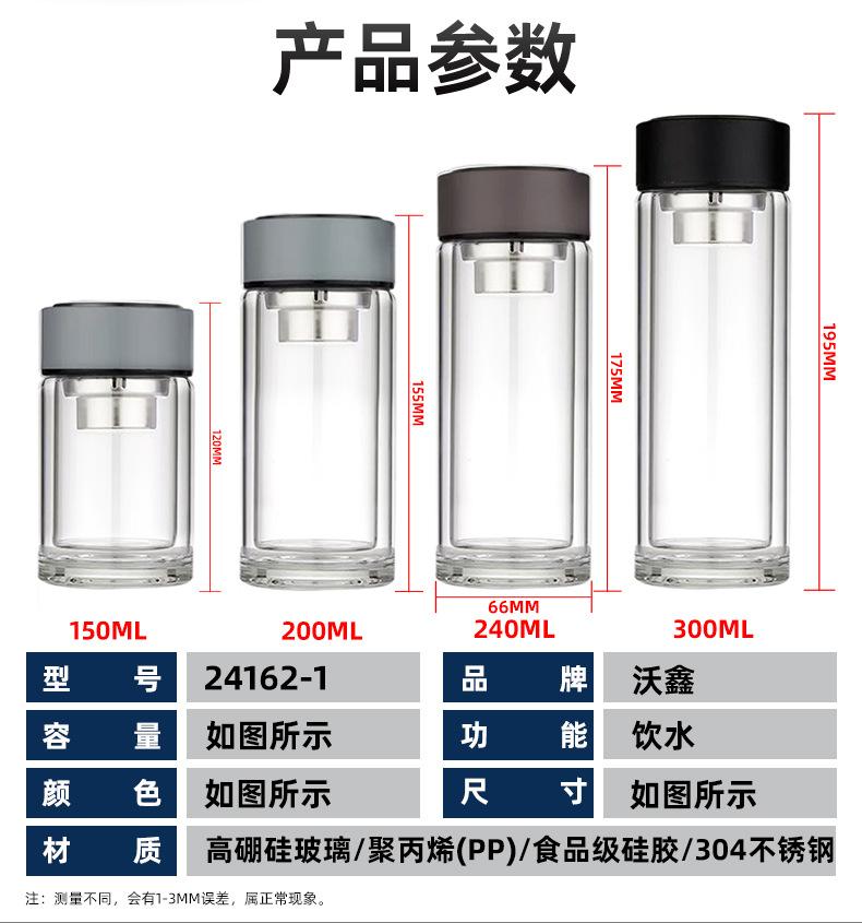 Taza de Vidrio de Doble Capa Woxin Alto Borosilicato Espesado Taza de Agua Separación de Té y Agua Taza de Té Regalo de Negocios