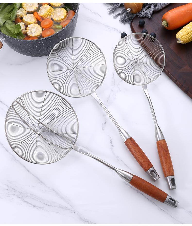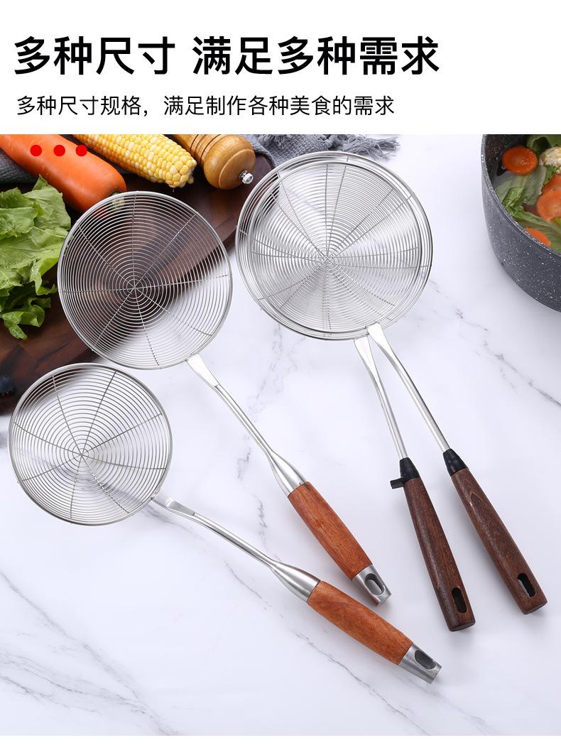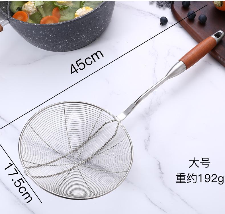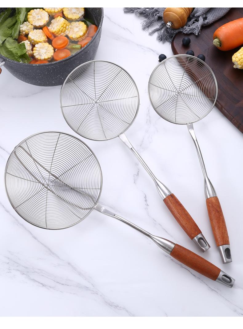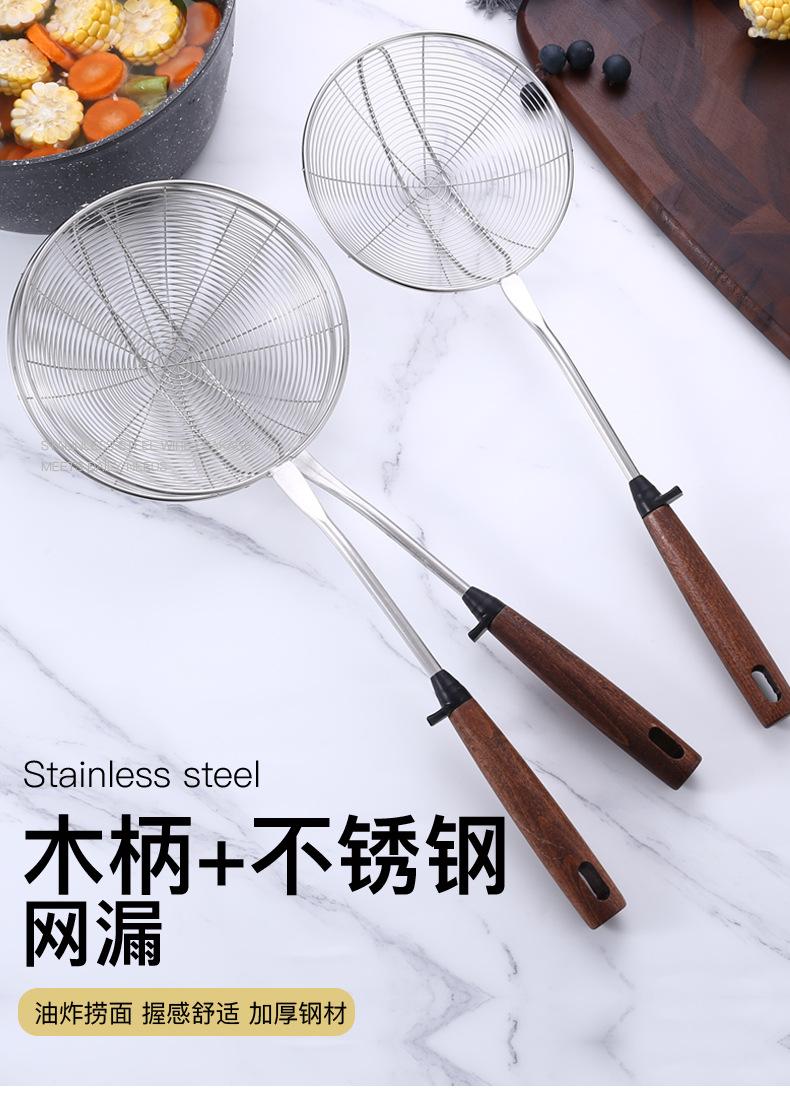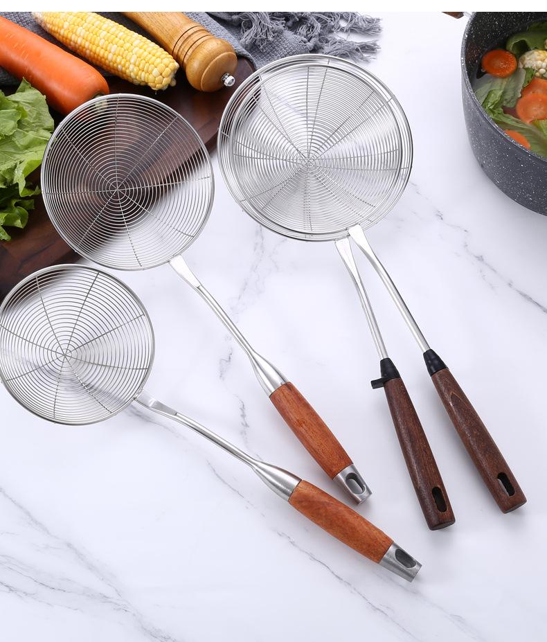 Colador de acero inoxidable de madera maciza colador grande mango largo colador para olla caliente colador para freír filtro drenaje colador grande mayoreo